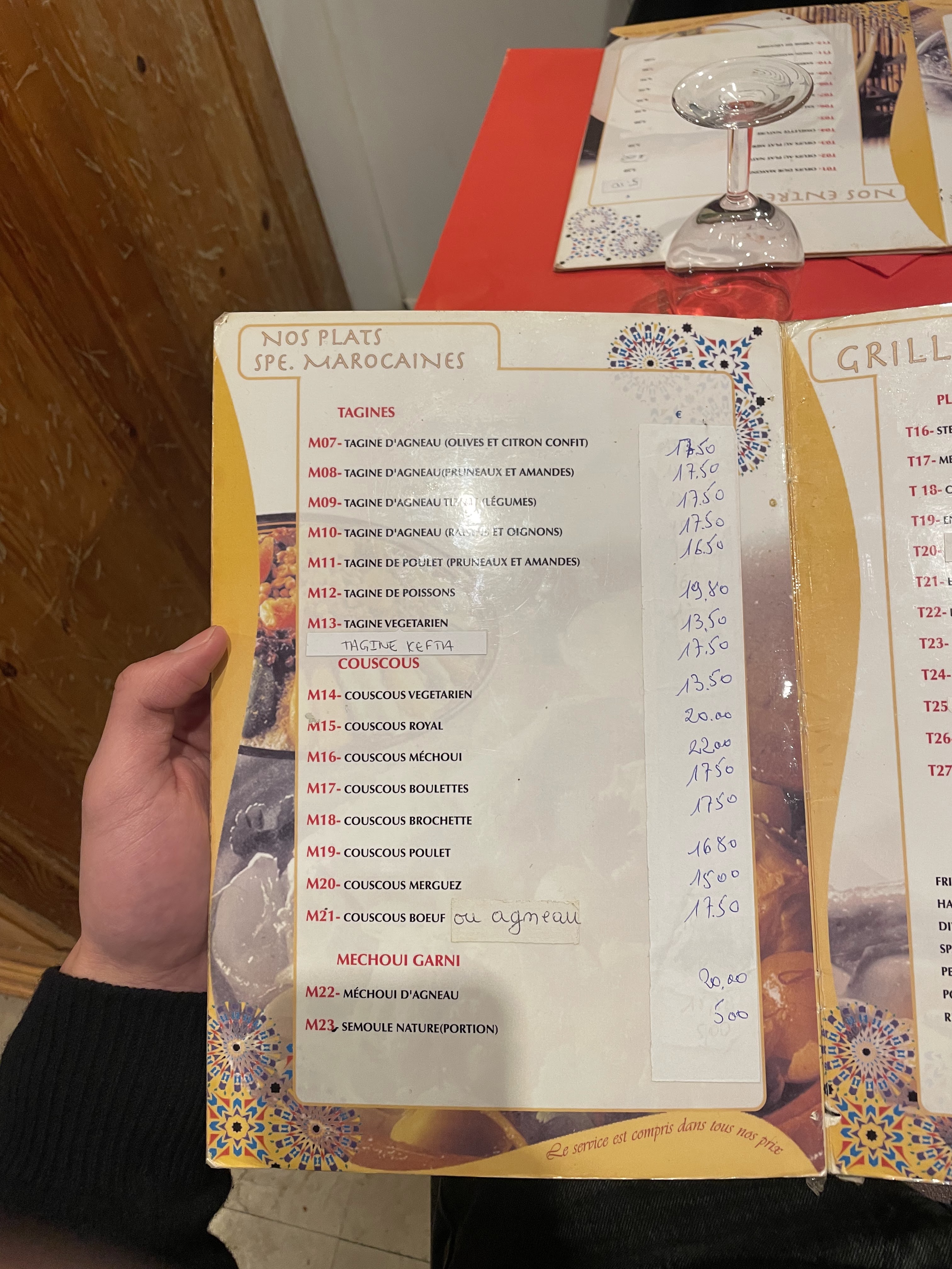 J'ai adoré leur cuisines, j'ai mangé couscous et tajine incroyablement bons. L'accueil est très chaleureux (le patron m'a raconté une histoire qui s'est déroulé dans ce restaurant qui m'a particulièrement touché).