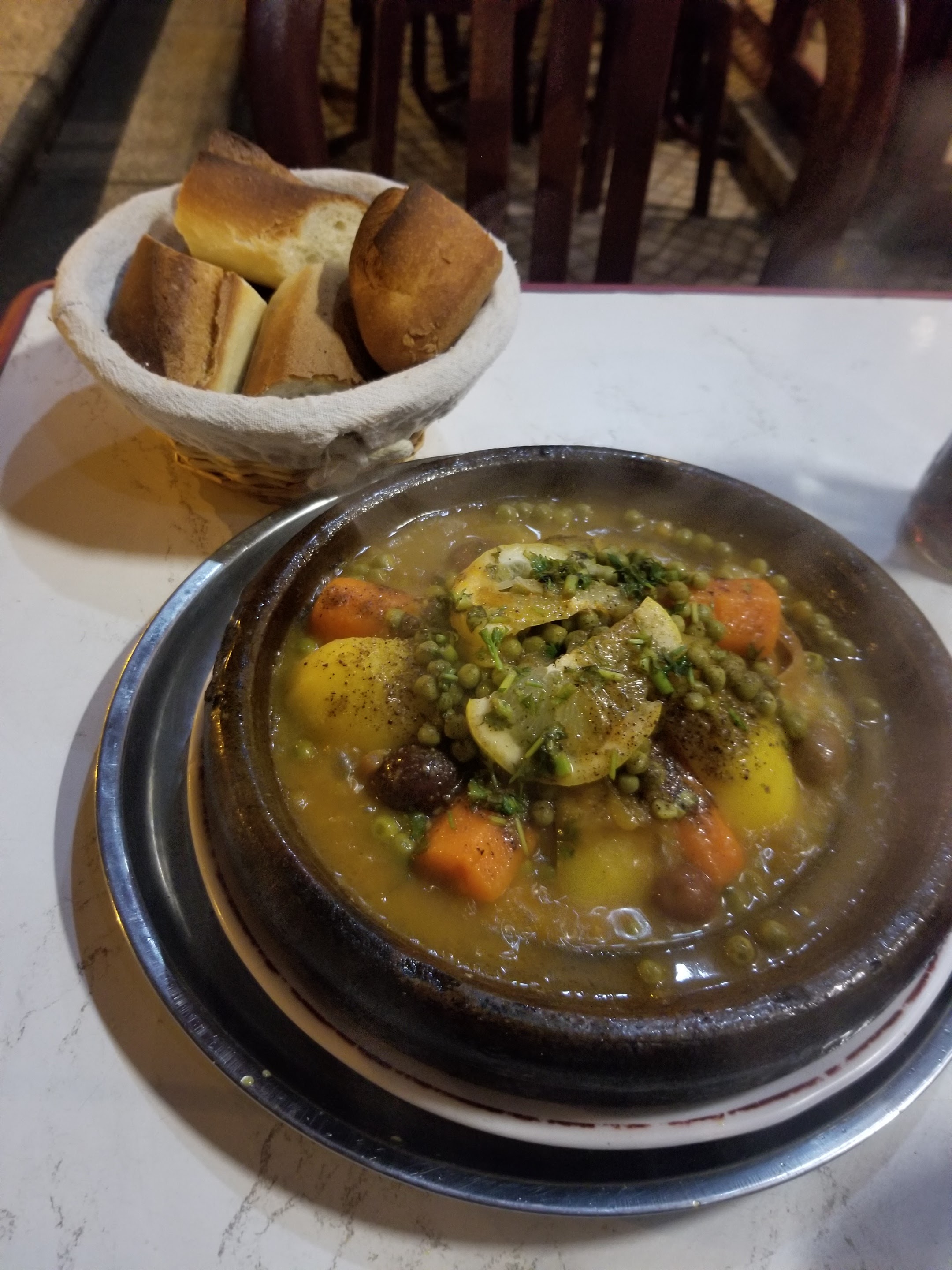 Super resto marocain tenu par des petits vieux attachants. Thé à la menthe offert à l’addition