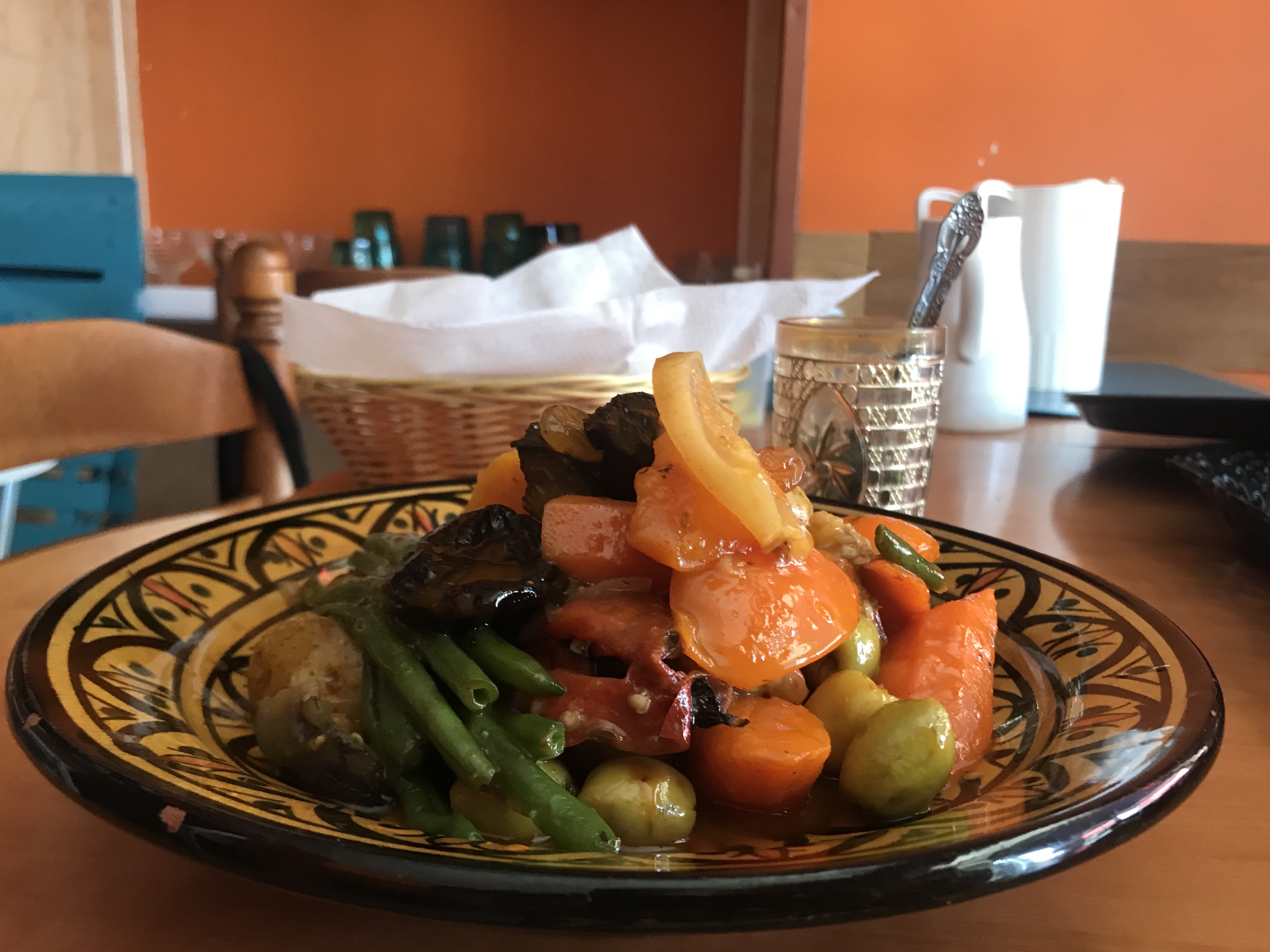 Le restaurant est assez petit et confortable. J'ai pris le tajine végétarien et c'était très bon. Je recommanderais le restaurant! Pas d'argent, pas d'anglais