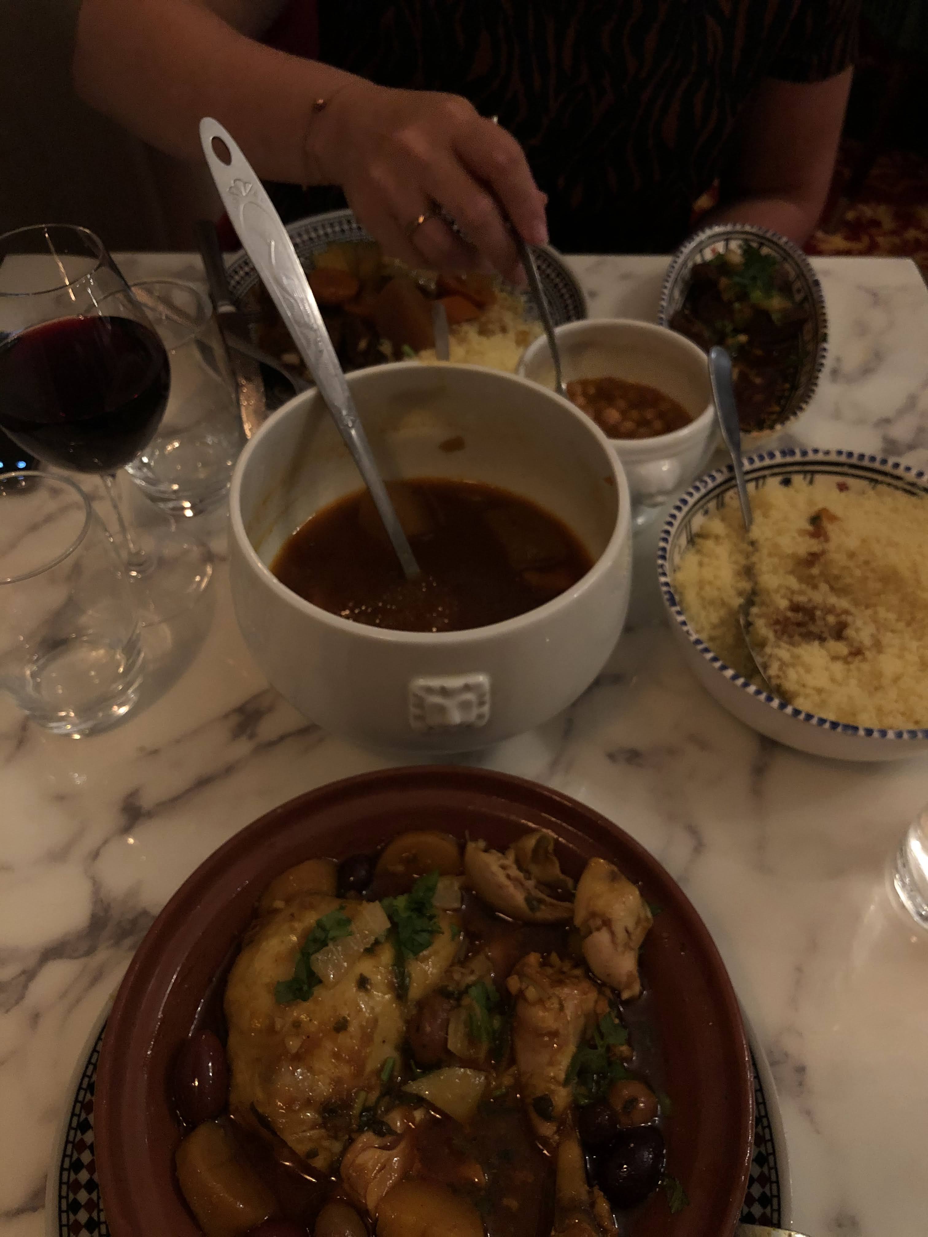 Super restaurant le couscous est au top les portion sont plus que raisonnables sans parler du petit thé offert par le patron. La danseuse et la musique nous envoie tout droit au maroc. Le service rapide et efficace permet de profiter au maximum de la soirée sans moment d’ennuis. Je suis venu avec ma famille et je reviendrai avec les amies. Restaurant a conseiller a n’importe qui souhaite profiter d’un couscous traditionnel du maroc !