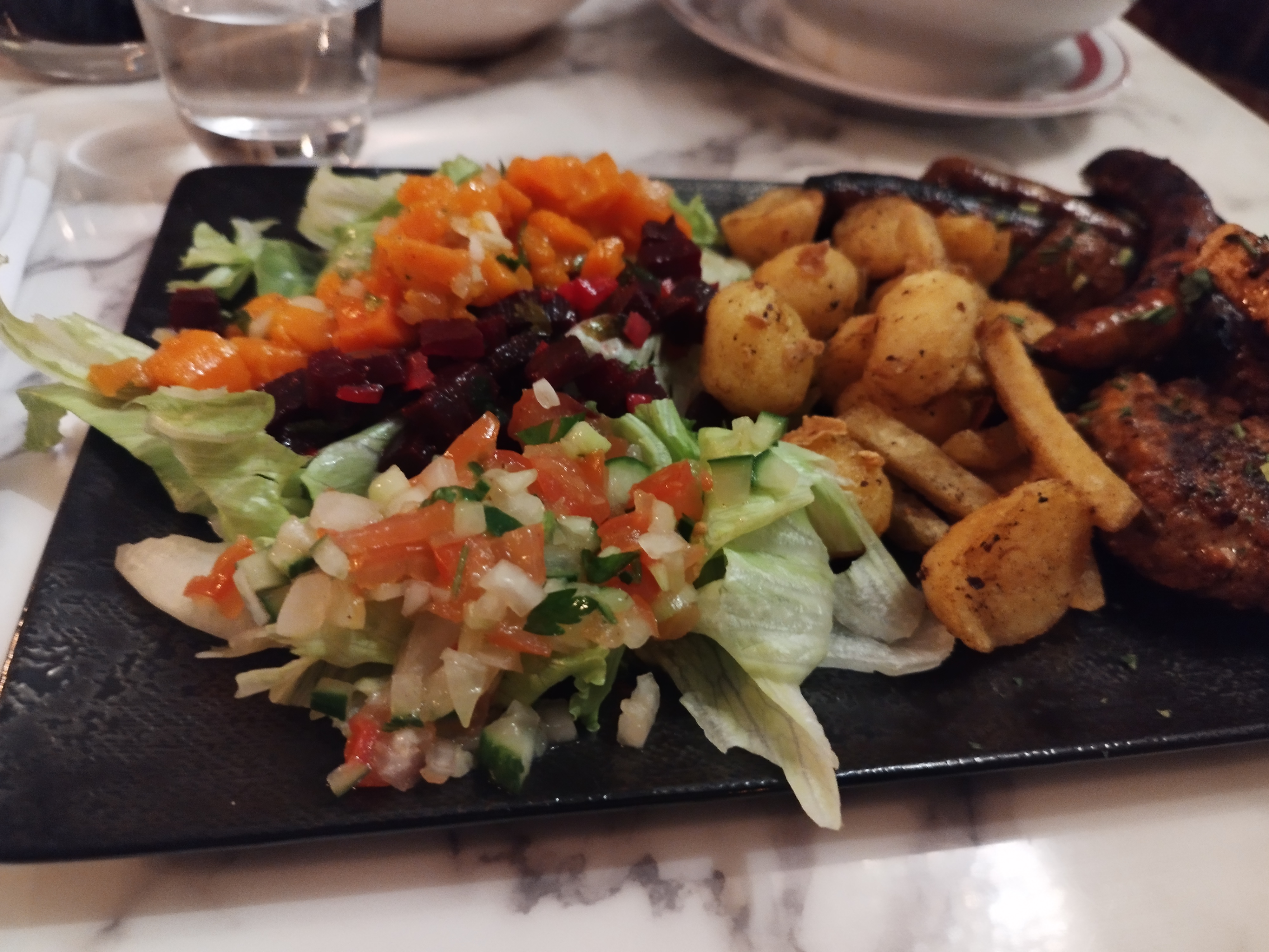 Service trop lent j'ai dû demander la carafe d'eau 3 fois avant de finalement l'obtenir et les légumes servis avec le couscous . ...il n'y en avait pas assez, bref j'espère que c'était un mauvais jour car pour une première impression ça ne me donne pas envie d'y retourner en plus c'est plus bruyant qu'un hall de gare