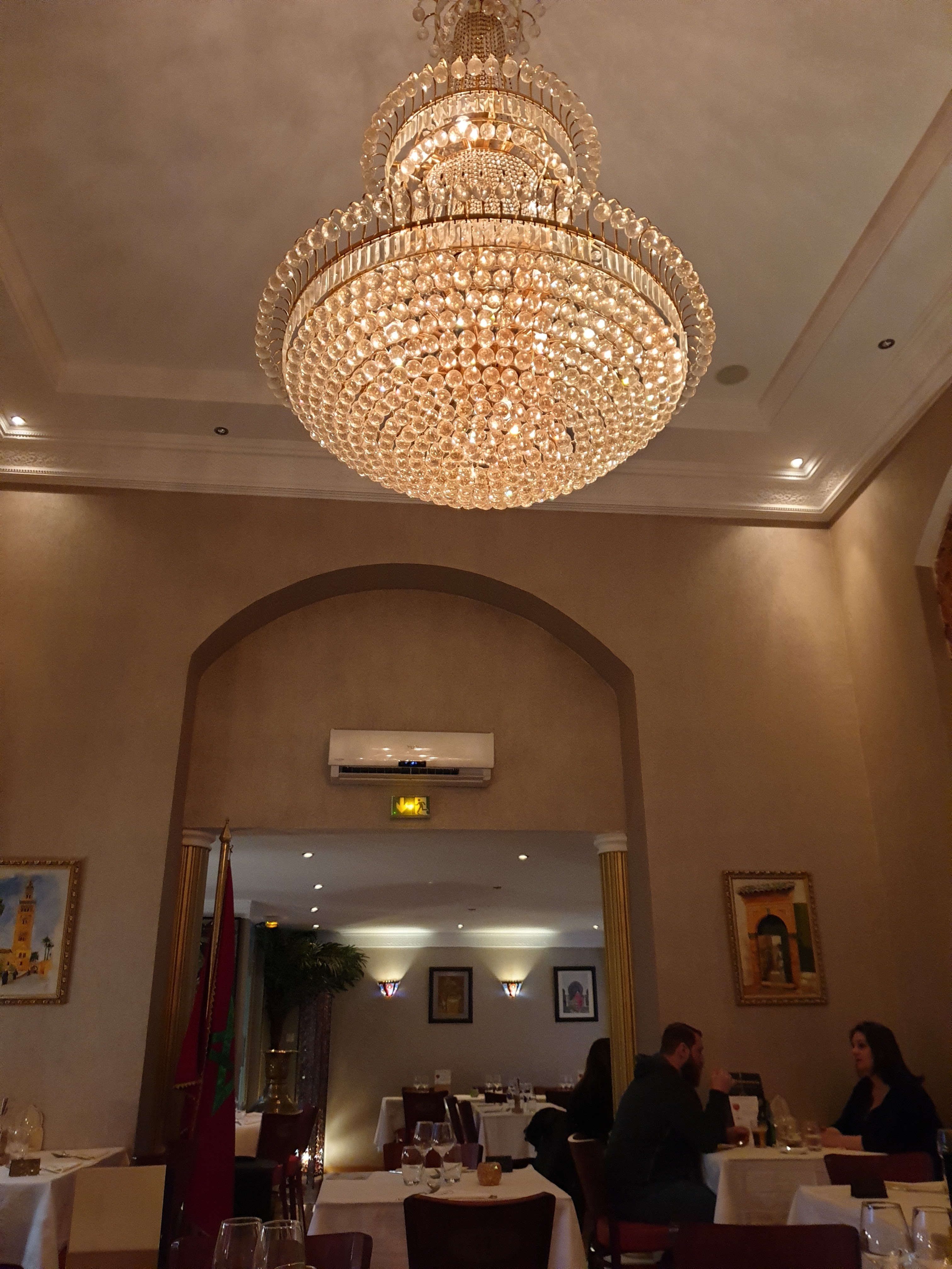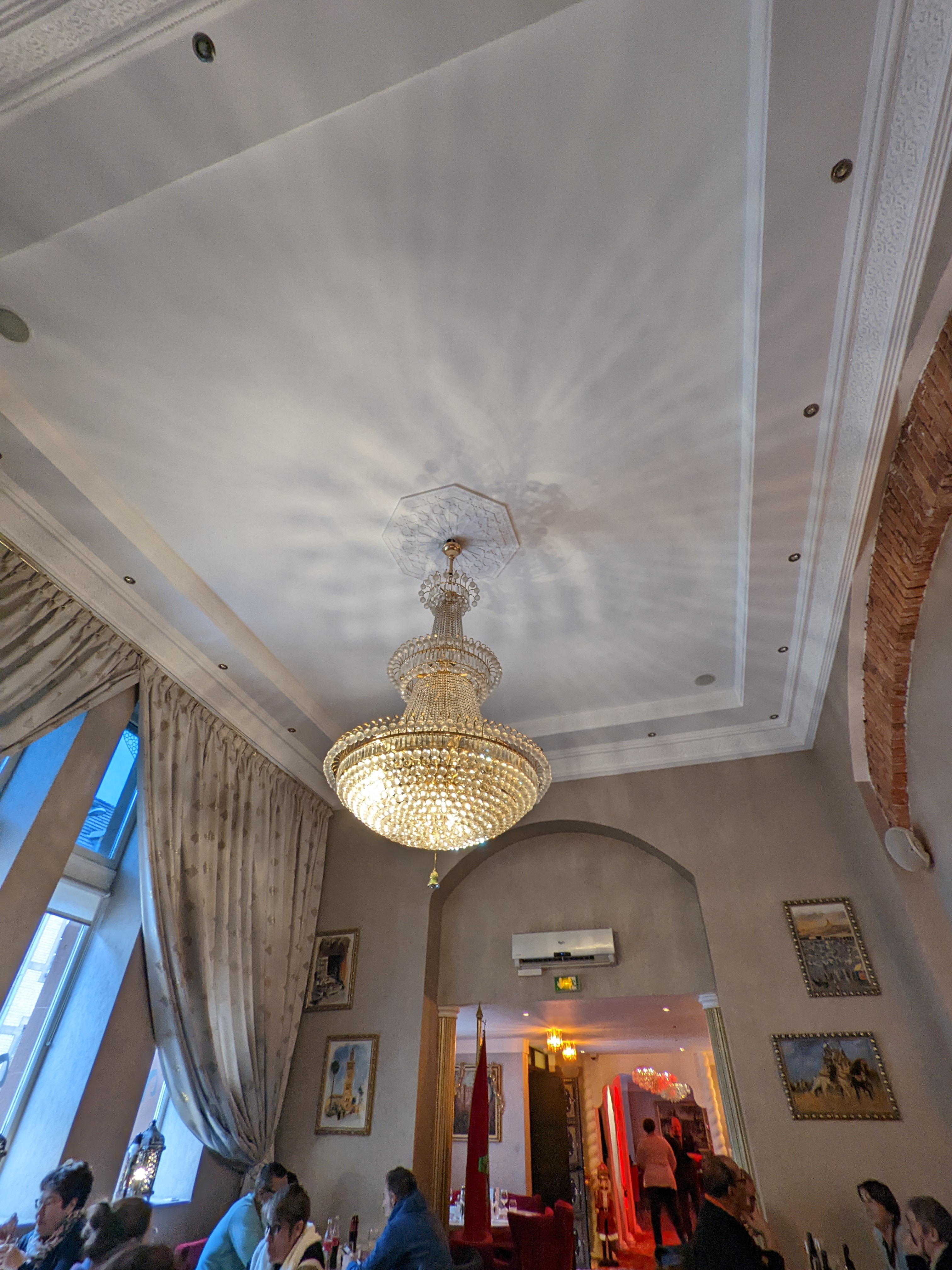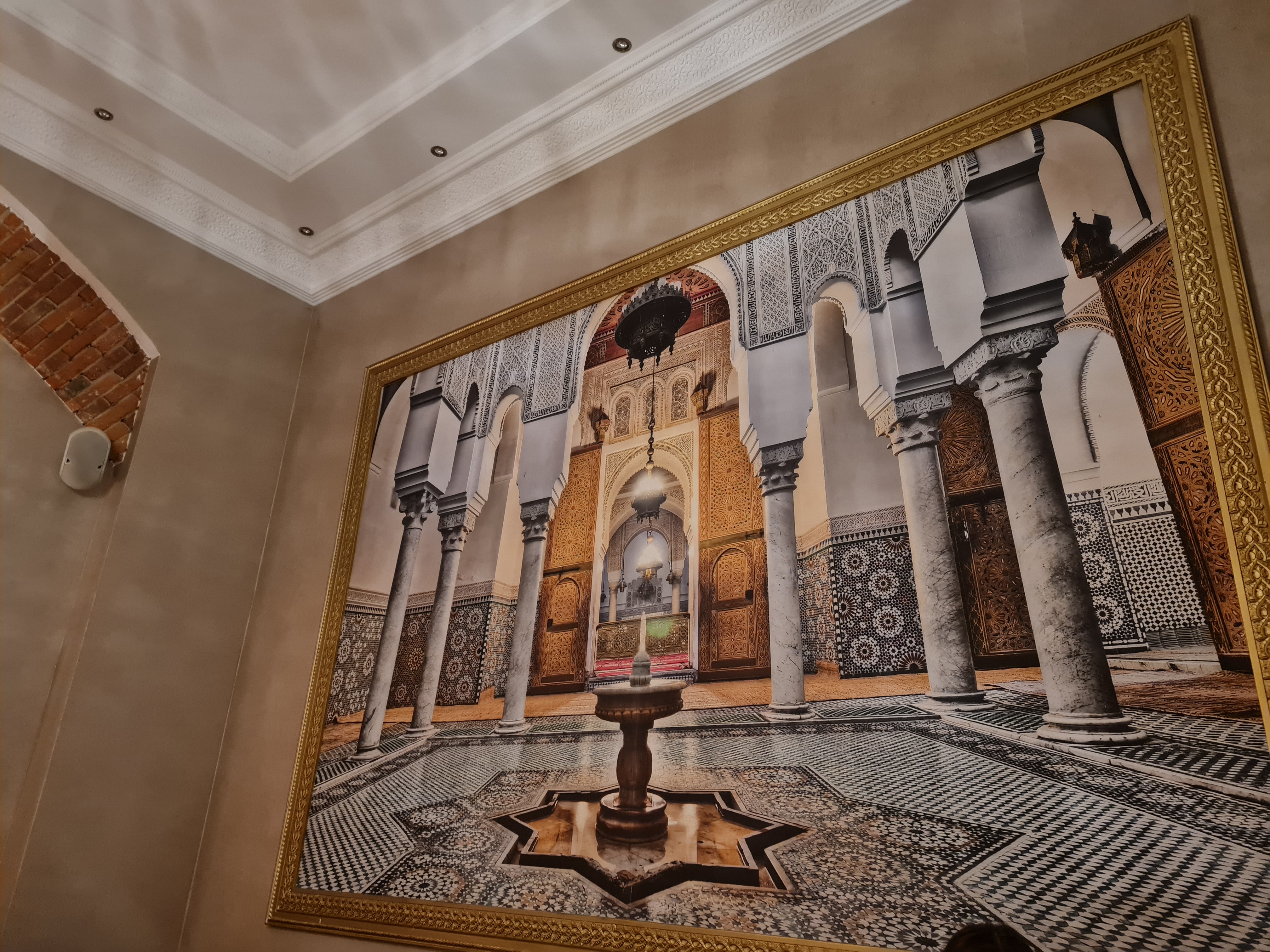 Grande salle avec une belle hauteur sous plafond. Le décor vous amène au Maroc. Attention toutefois à l'isolation qui laisse un peu à désirer près des fenêtres en hiver. Menu du jour avec Entrée et plat pour 11€. Très bon Tajine avec beaucoup de goût et servi très généreusement. Une cuisine de qualité.