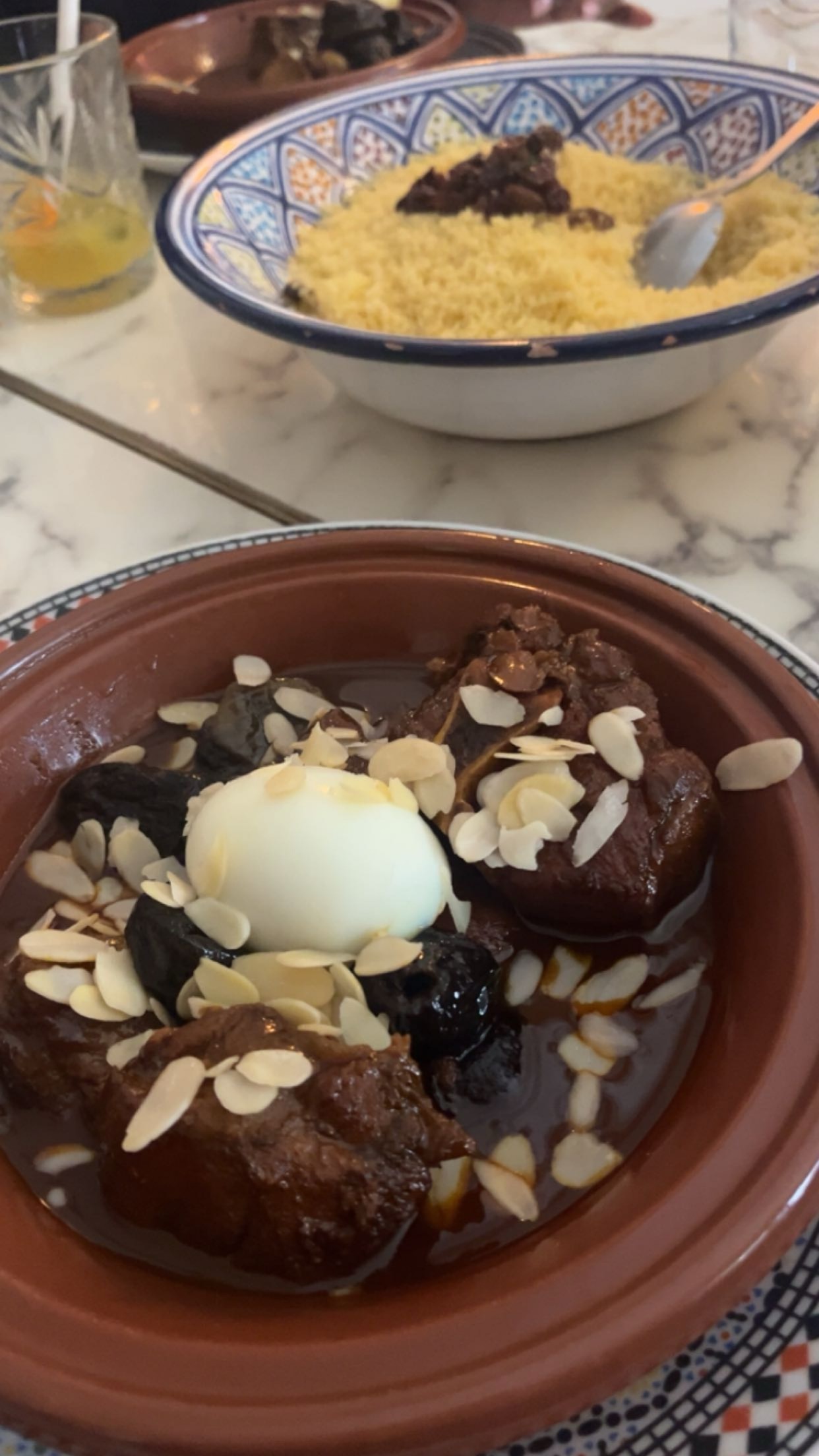 Le cadre est agréable , l’accueil est fort sympathique, les plats sont délicieux . La taille de la pastilla individuelle était par contre trop petite je trouve et les tajines ne sont pas accompagnés avec du pain par défaut ( plutôt de la semoule , ce qui est pas très logique pour un vrai tajine )