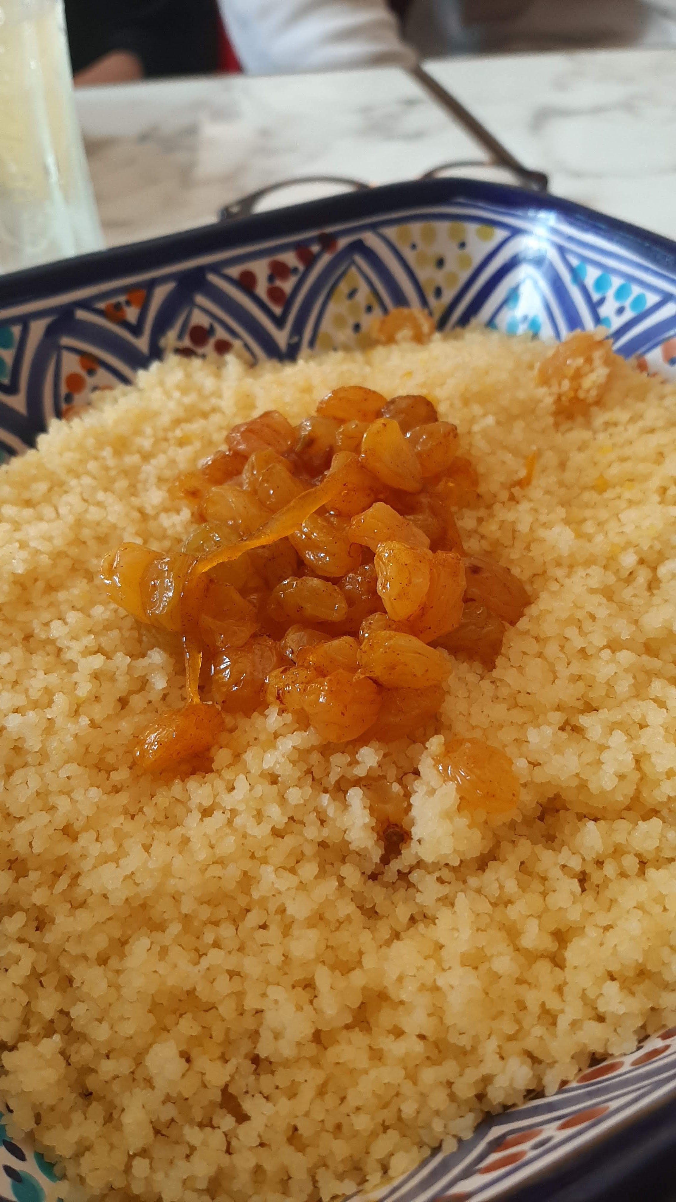 Très déçue, nous avons pris 4 couscous (dont deux royales). Les quantités étaient vraiment limite pour 4, un bol de semoule qui nous a permis de prendre même pas trois cuillères à soupe chacun (pour un couscous c’est quand même très léger ..) sinon il n’y en avait pas assez pour tout le monde. Lorsqu’on a redemandé un peu de semoule, on nous a demandé un supplément de presque 10€ … une honte ! À plus de 24€ le couscous, on ne facture pas un supplément de 10€ pour de la SEMOULE ! Quand même un peu de bon sens … on est resté sur notre faim. On ne reviendra pas ça c’est sûr & on ne recommandera pas non plus.