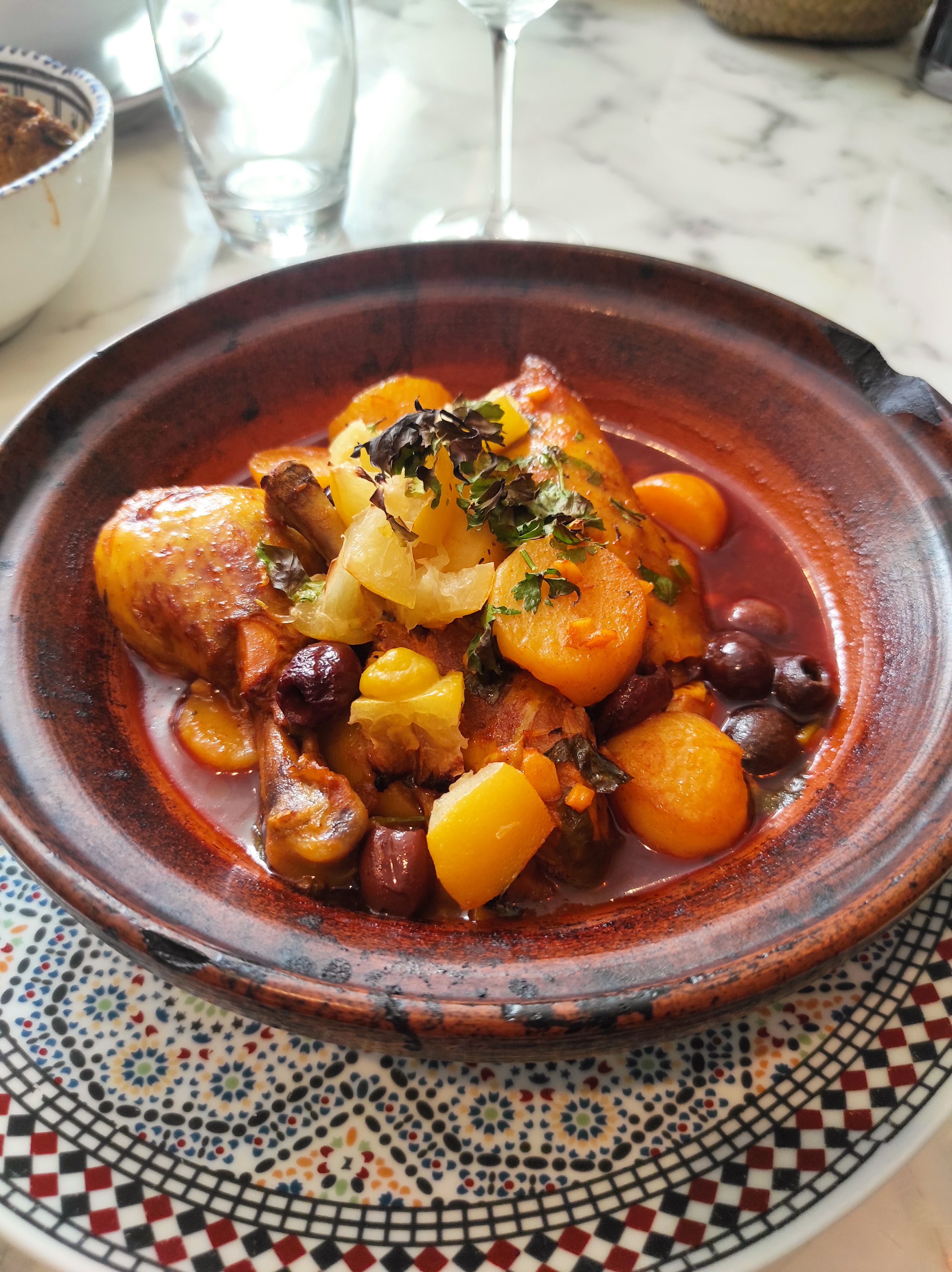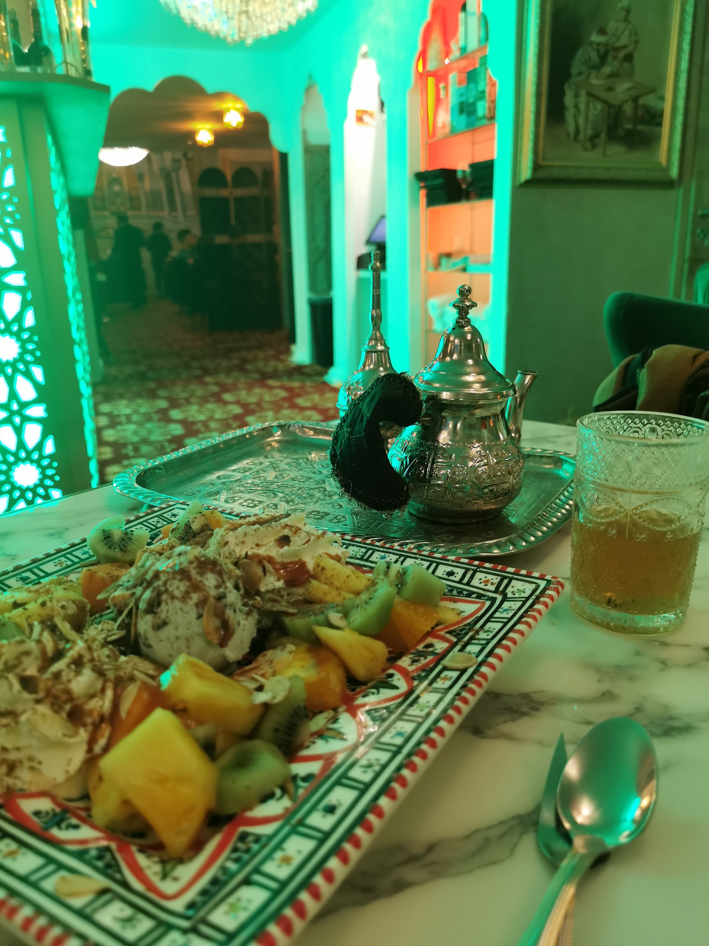 Un cadre magnifique qui nous transporte directement aux portes du Maroc, un service très convivial et solaire, notre serveuse très agréable quand aux plats un voyage de saveurs, épices et couleurs très bien équilibrés. Excellente adresse belle découverte.
