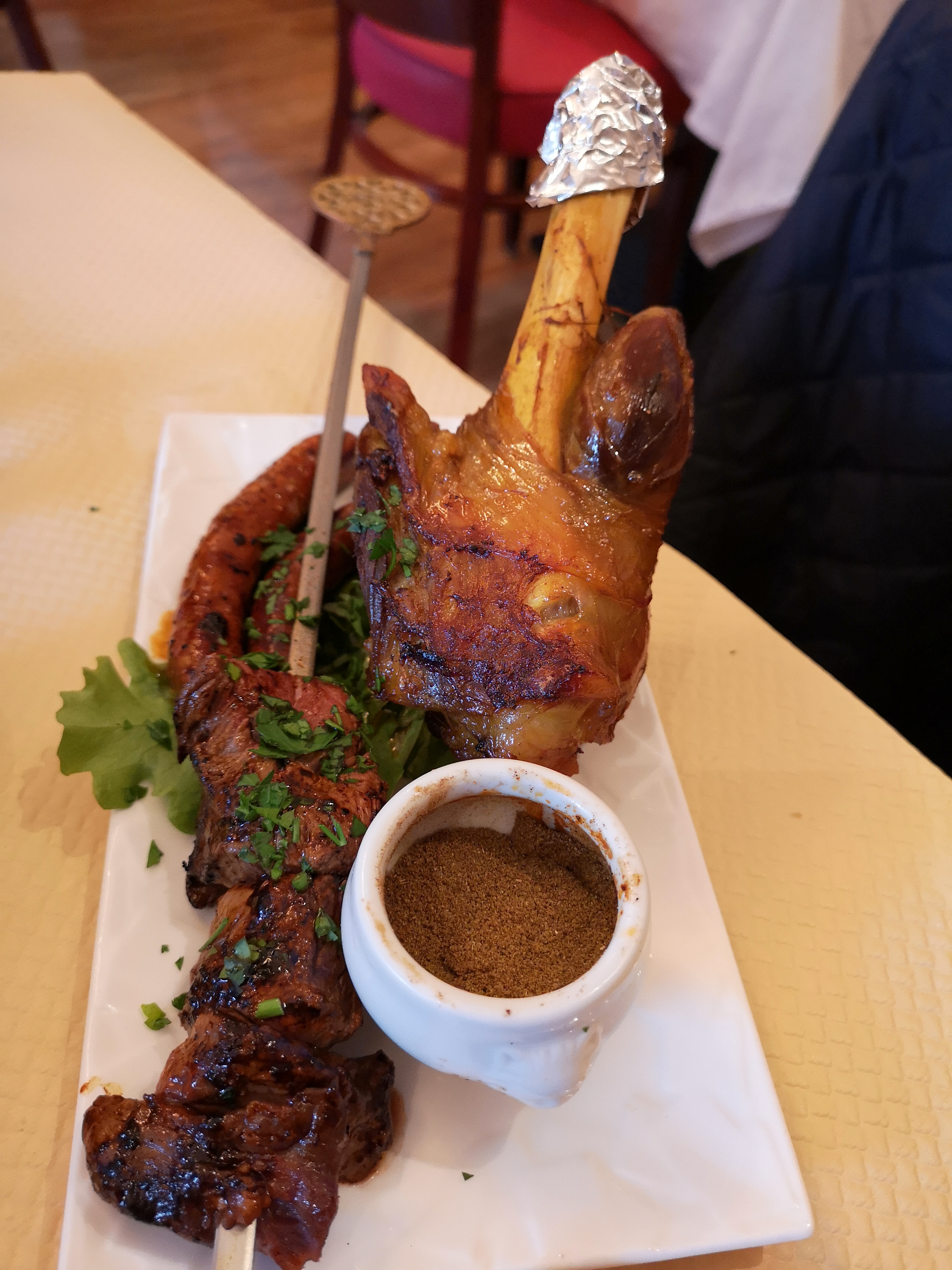 Accueil sympathique. Attention pas de parking J'ai testé l'assiette de grillades et n'ai pas aimé : 3 merguezet 4 morceaux d'agneau accompagnés de petits pois oignons et pommes de terre trop gras et le blé et la semoule sont servis froid, le tout pour 19 euros. Restaurant spacieux et service assez rapide