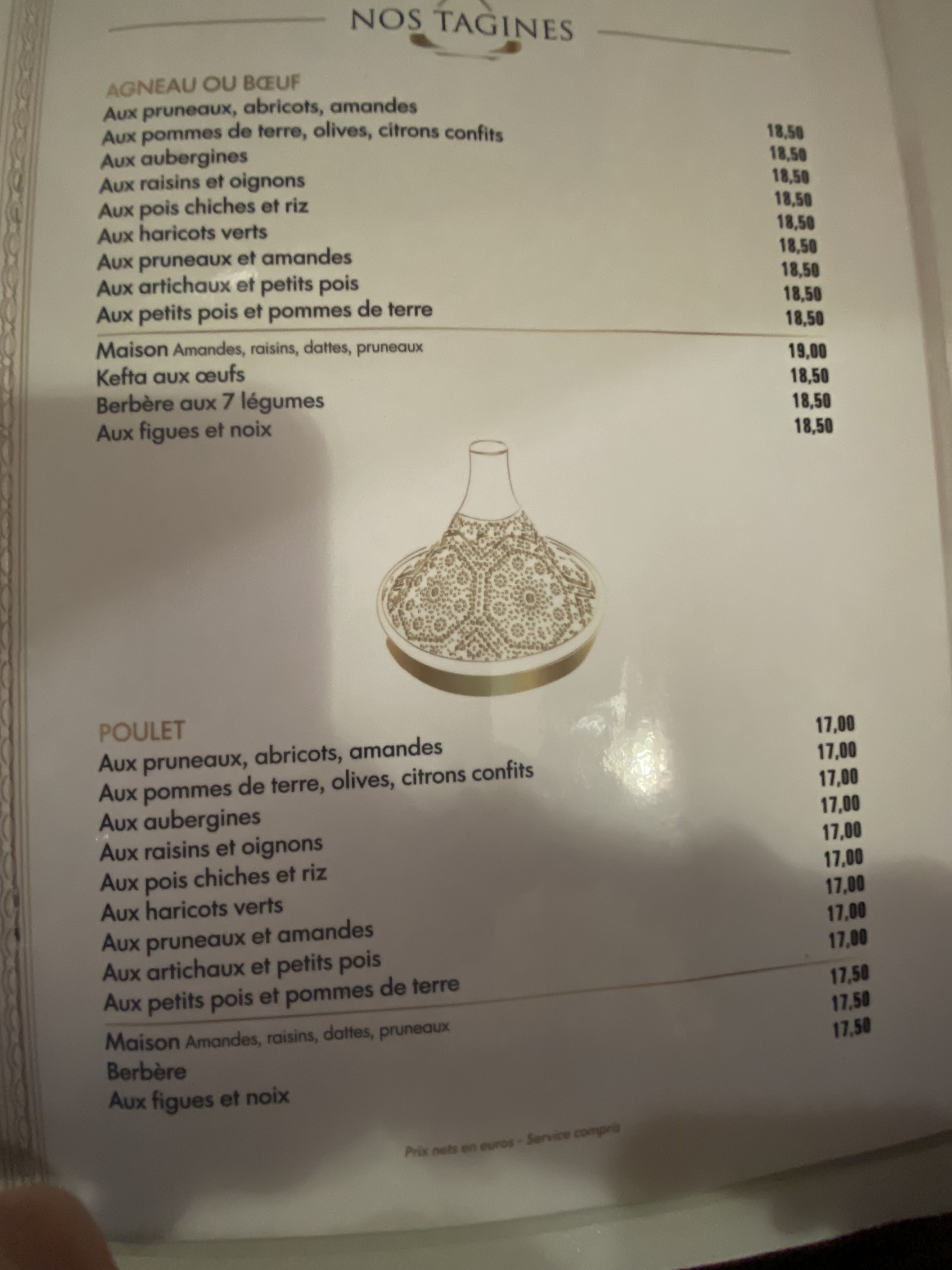 Accueil chaleureux, plats très savoureux et quantité généreuse, notamment le tajine aux pruneaux et amandes 😍 je recommande vivement ce restaurant!