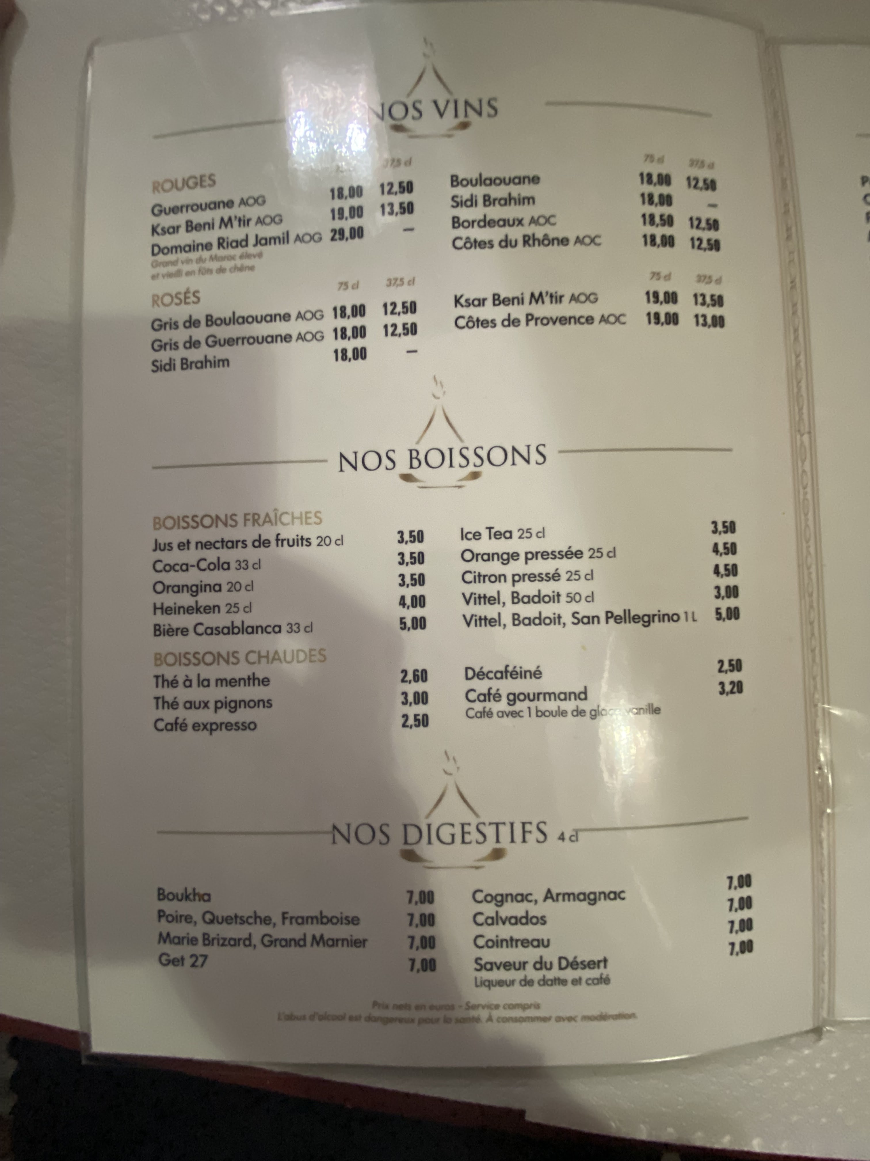 Ce lieu ne paie pas de mine. Les prix semblent cher de prime abord, mais une fois que les plats arrivent sur la table, grosse surprise. Les plats sont tres généreux et très bons. J'ai pris plein de photos pour que vous puissiez en juger par vous même. Par contre, les desserts sont industriels et les glaces inintéressantes. Le personnel est sympathique, souriant et à l écoute. Je recommande ce restaurant pour un moment culinaire marocain.