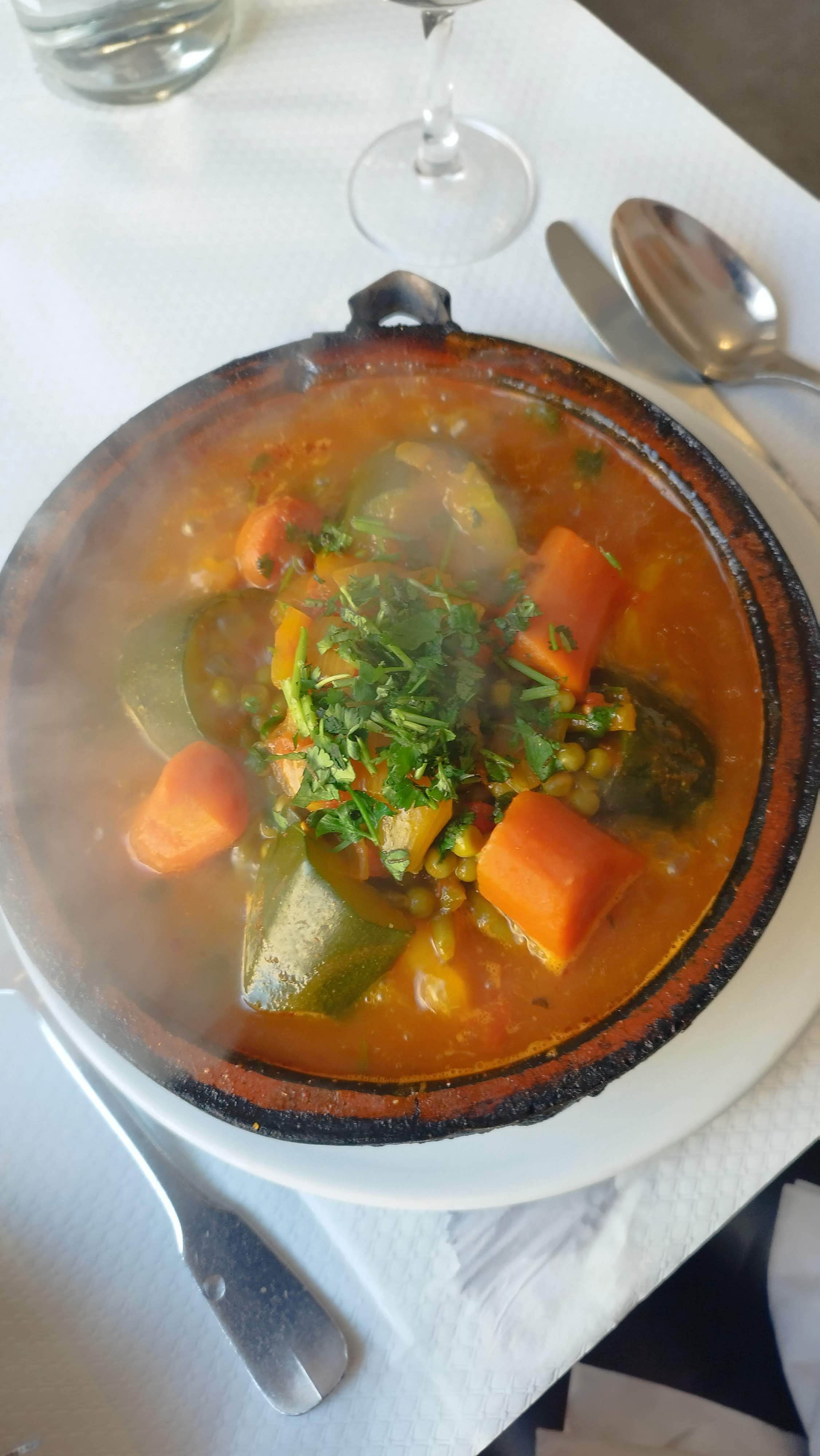 Excellent restaurant...bien cuisiné, un goût hors pair, un service parfait...je recommande chaudement ! Ici un tajine raisons oignons et un couscous berbère 7 légumes.