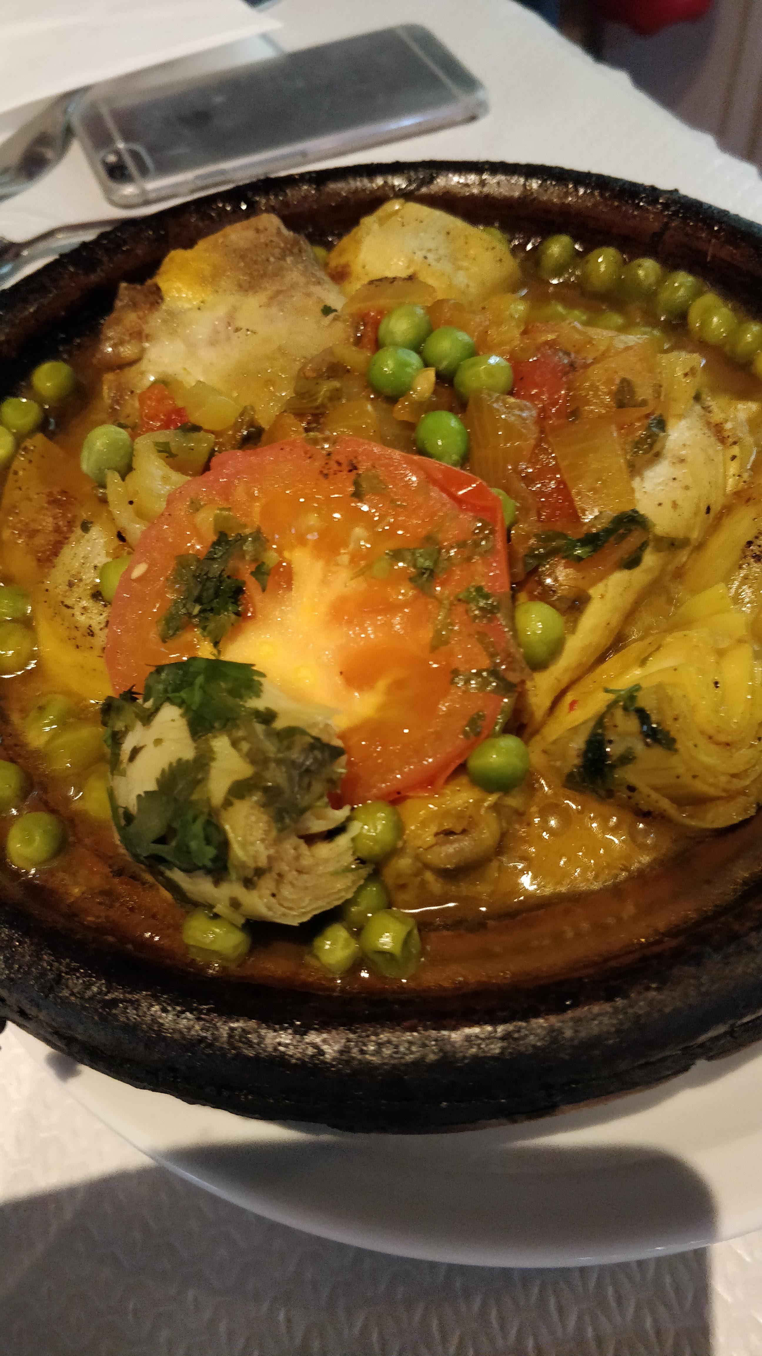 Avec mon mari nous avions eu le plaisir de partager un couscous méchoui.Excellent.Et ce soir j'ai décidé de goûter la tajine pomme de terre citron confit olives Un délice.Tous est excellent au Maroc de Quincy Voisins