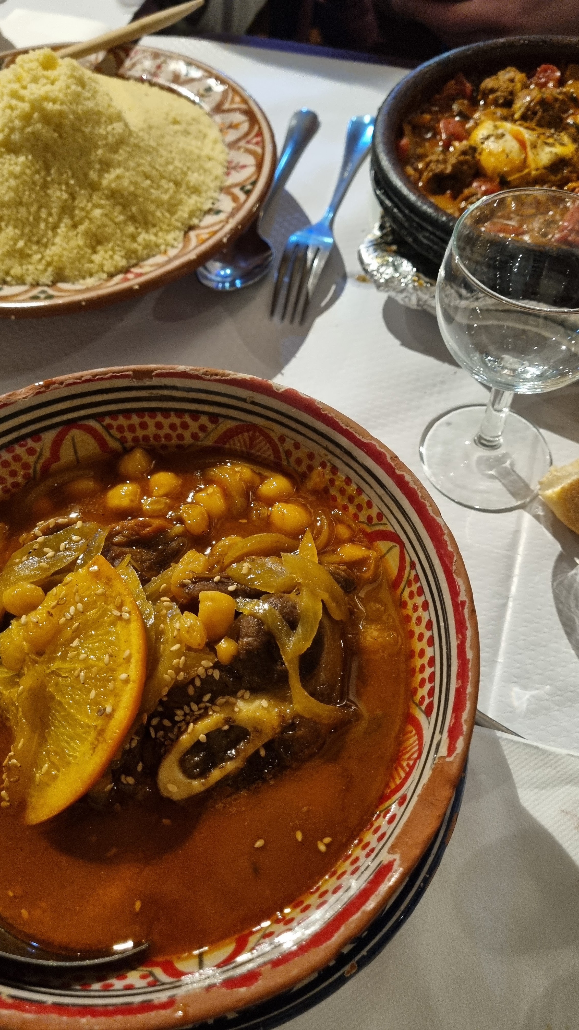 Un restaurant un peu conventionnel, du personnel très avenant , la soirée s'annonce bien. La pastilla est à recommander ❤️ le couscous fassi aussi ❤️ mais le couscous classique aurait mérité d'être moins dilué on sentait bien les épices mais trop de bouillon 😢. Les portions sont généreuses et il faut bien évaluer son appétit si on veut du dessert 🥴 Rapport qualité prix favorable