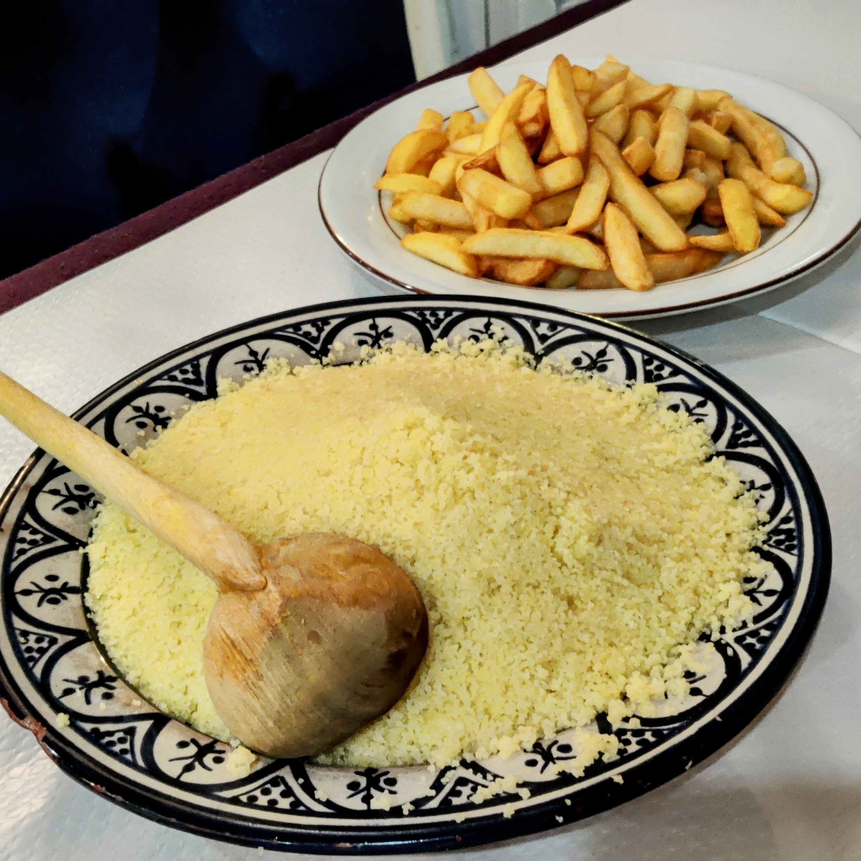Couscous : Semoule passable sans caractère Bouillon correct, un peu trop salé Viande sans plus Peut mieux faire