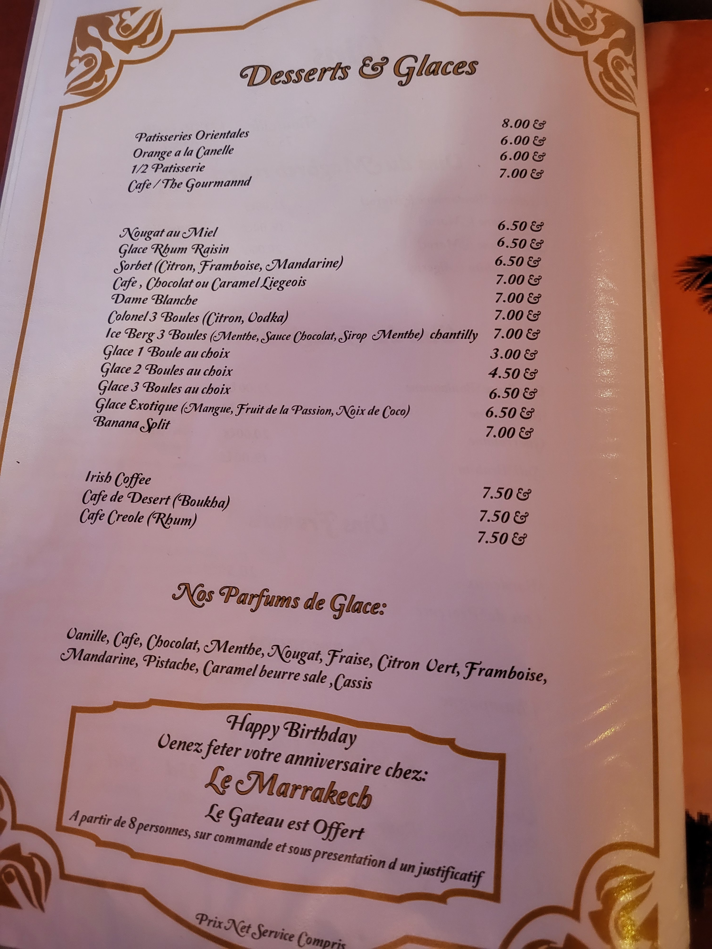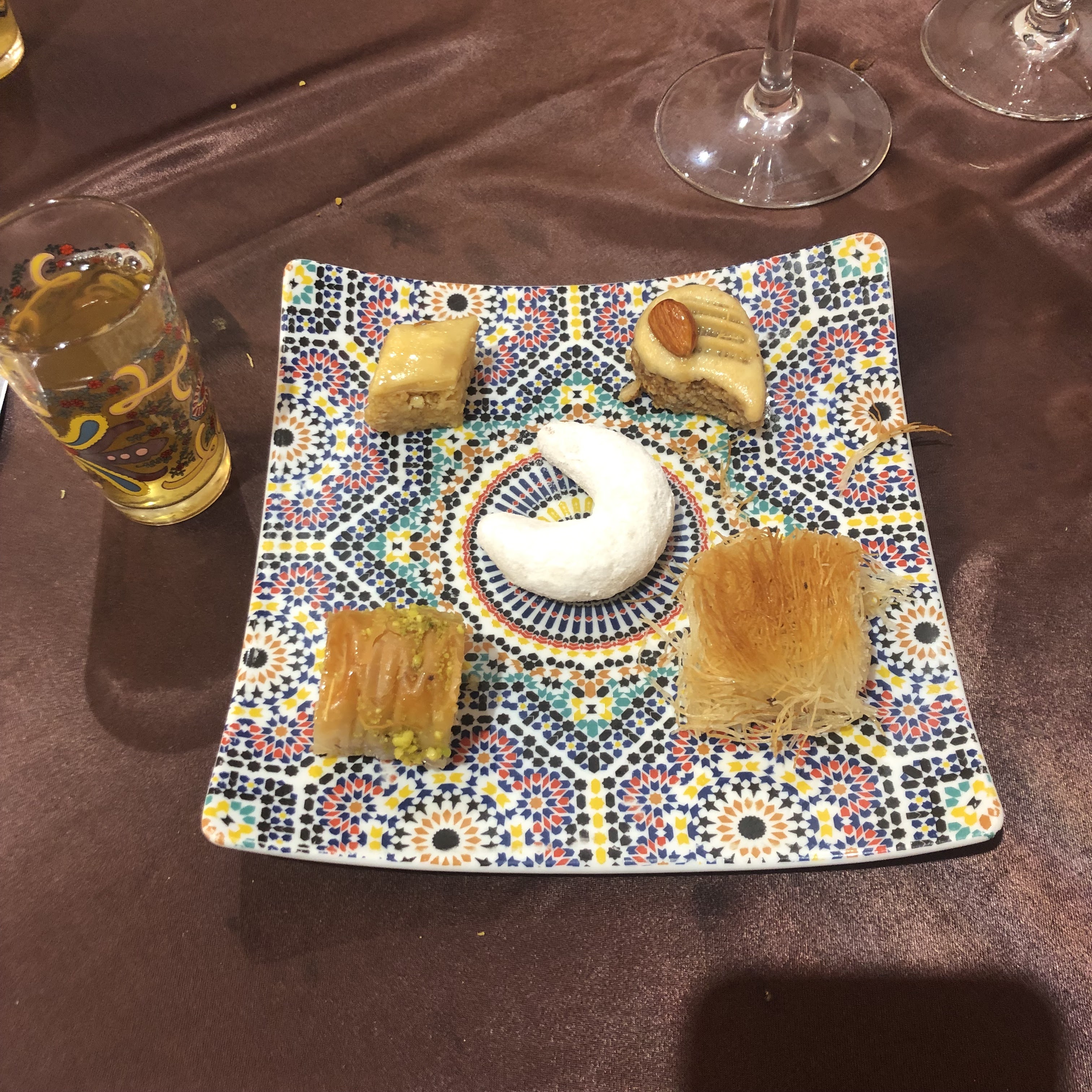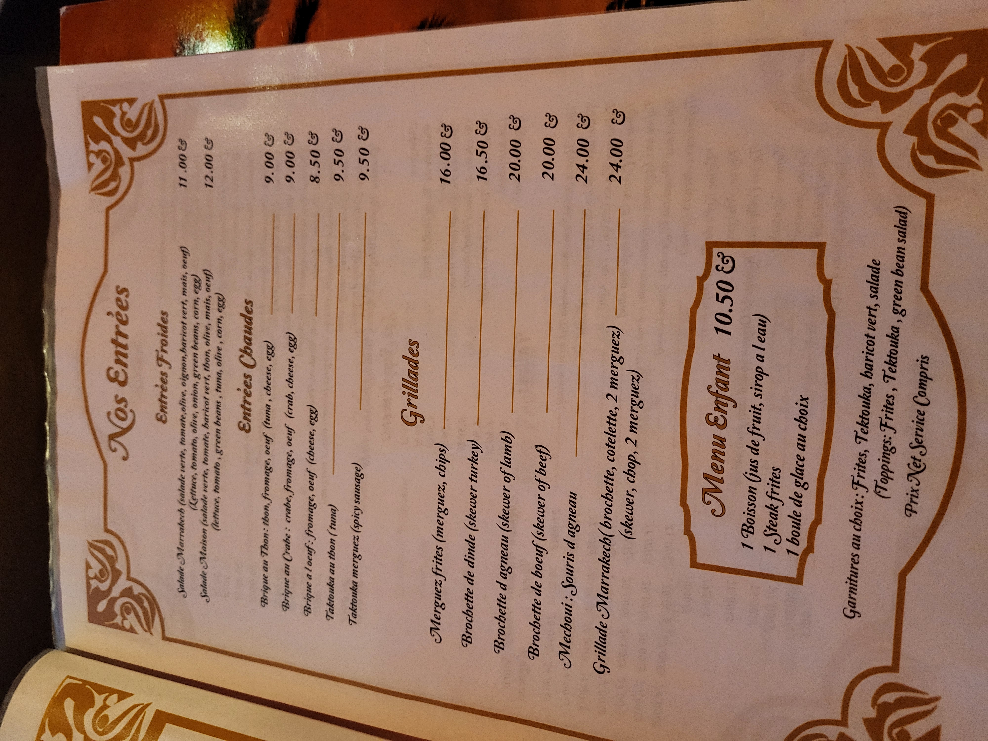 Un voyage à Marrakech Le personnel est serviable et agréable Les plats commandés étaient excellent Les pâtisseries et le thé sont incroyable Juste le prix du thé un peu cher pour une petite théière à 4 11€ 20 A part ça très bon rapport qualité prix