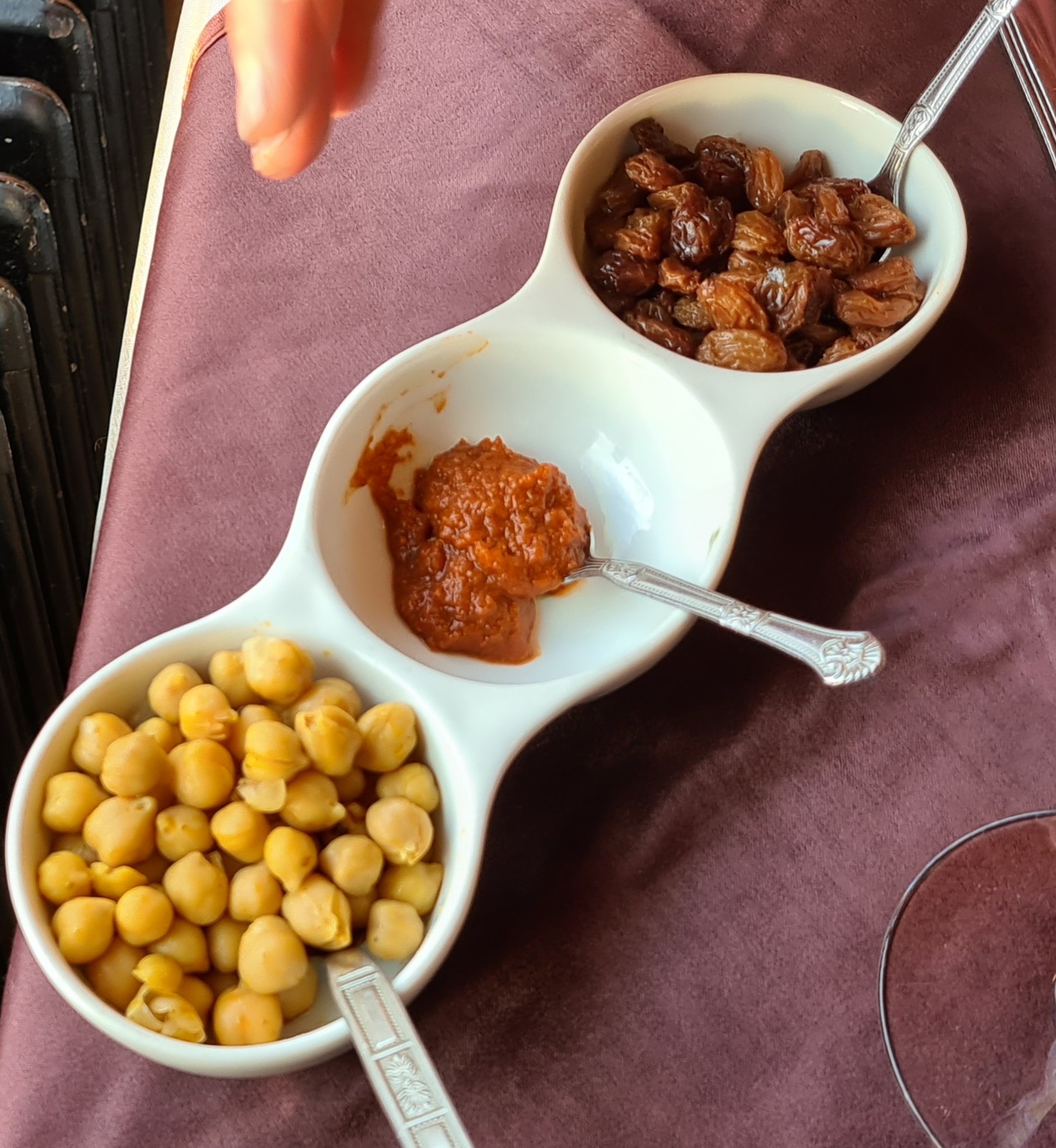 Je voulais manger un tajine seulement on m'a dit qu'il y avait du couscous jamais vu du tajine avec du couscous j'ai donc pris une brochette au poulet pas de garniture pas de tomates j'ai donc pris en accompagnement un tchoutchouka qui m'a semblé plus du jus de la sauce bref vraiment déçu demander du pain 4 petites rondelles d'une baguette pour 5 personnes très restreint très chère en fonction de ce qu'on reçoit dans l'assiette