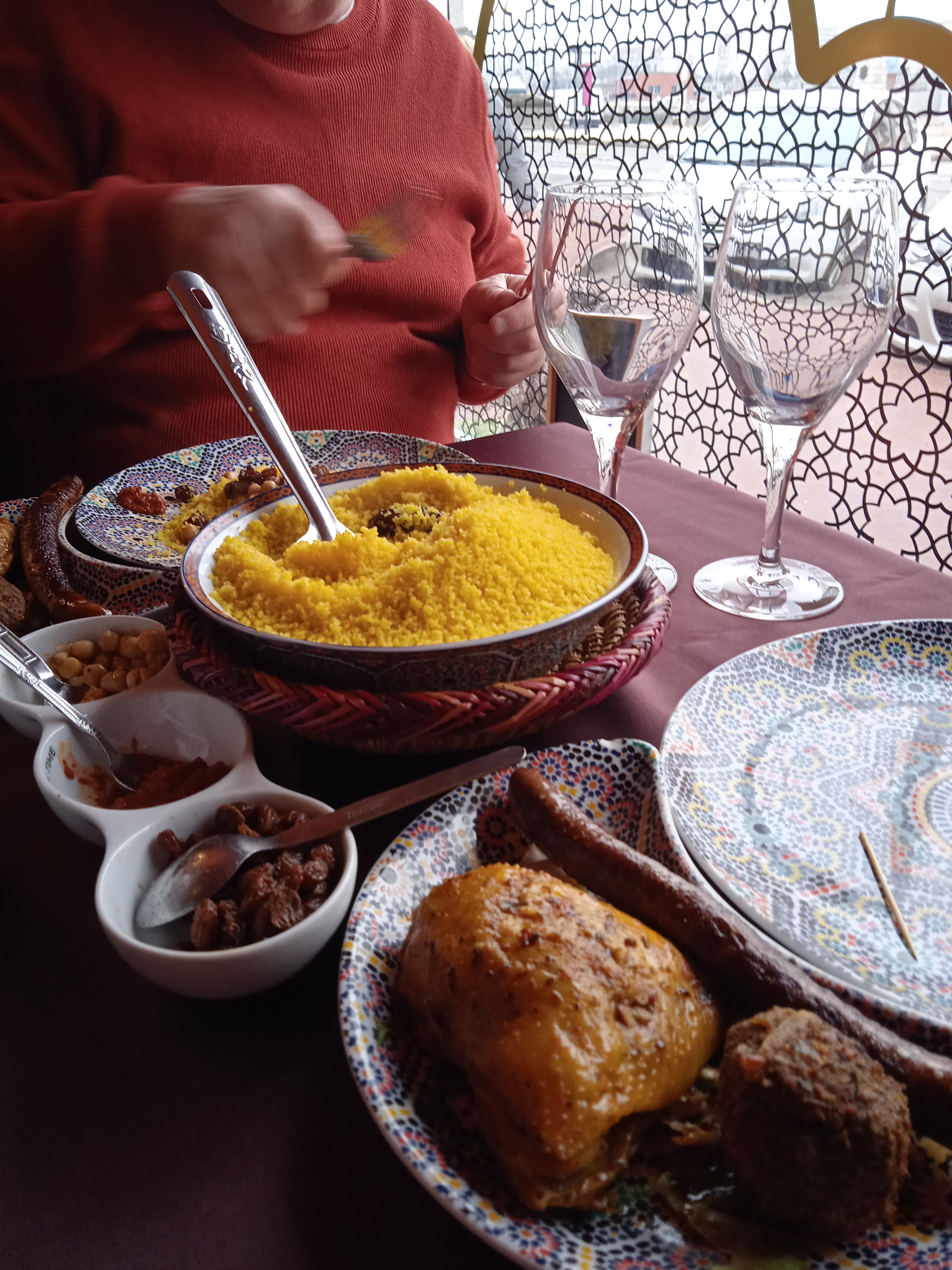 Le couscous royal est fin c'est un délice. Les pâtisseries ne sont pas faites maison mais c'est un régal quand même. Accueil très agréable. Je vous conseille top !