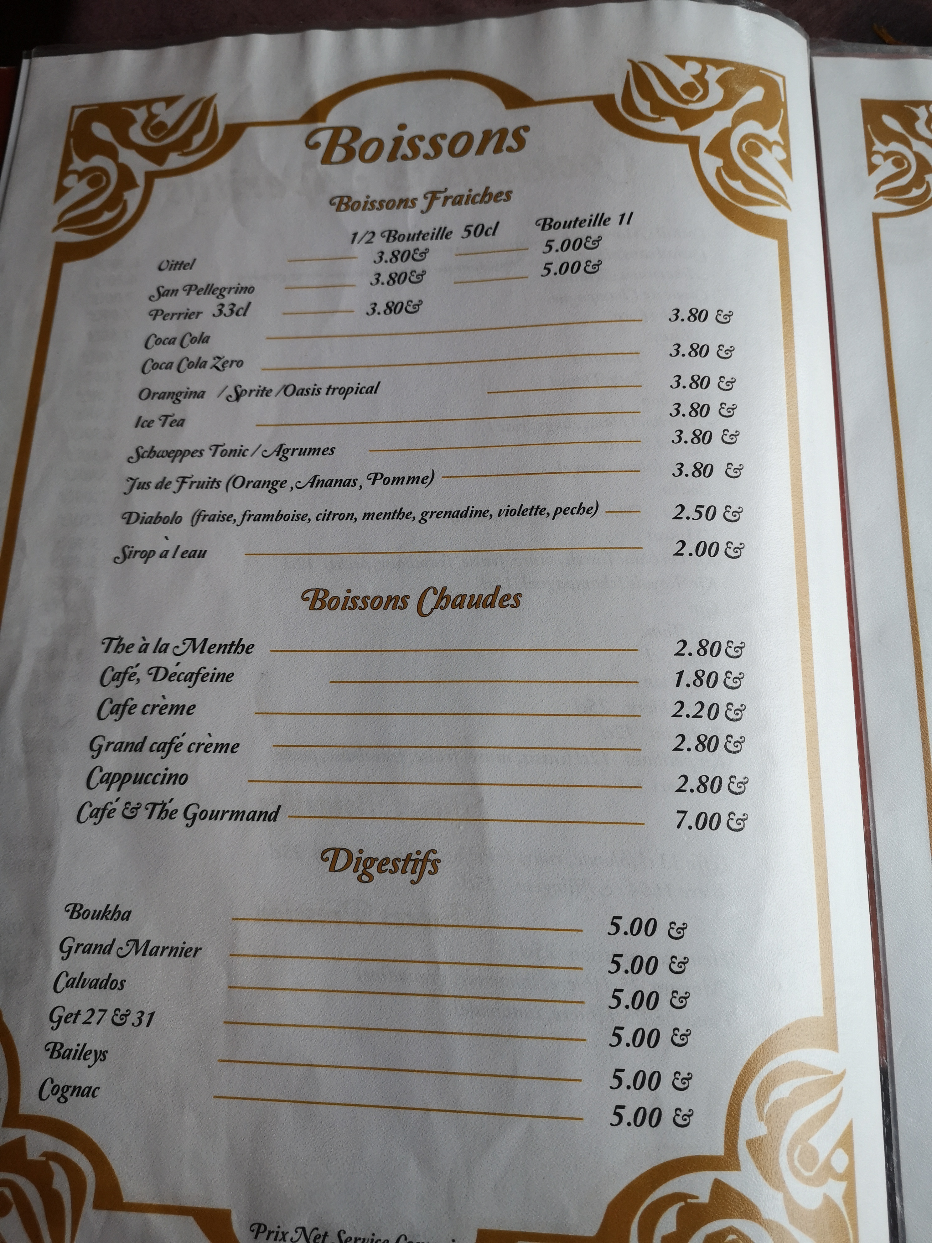 Très très bon resto très copieux prix raisonnable sauf pour le vin qui est un peu cher mais bon c'est raisonnable