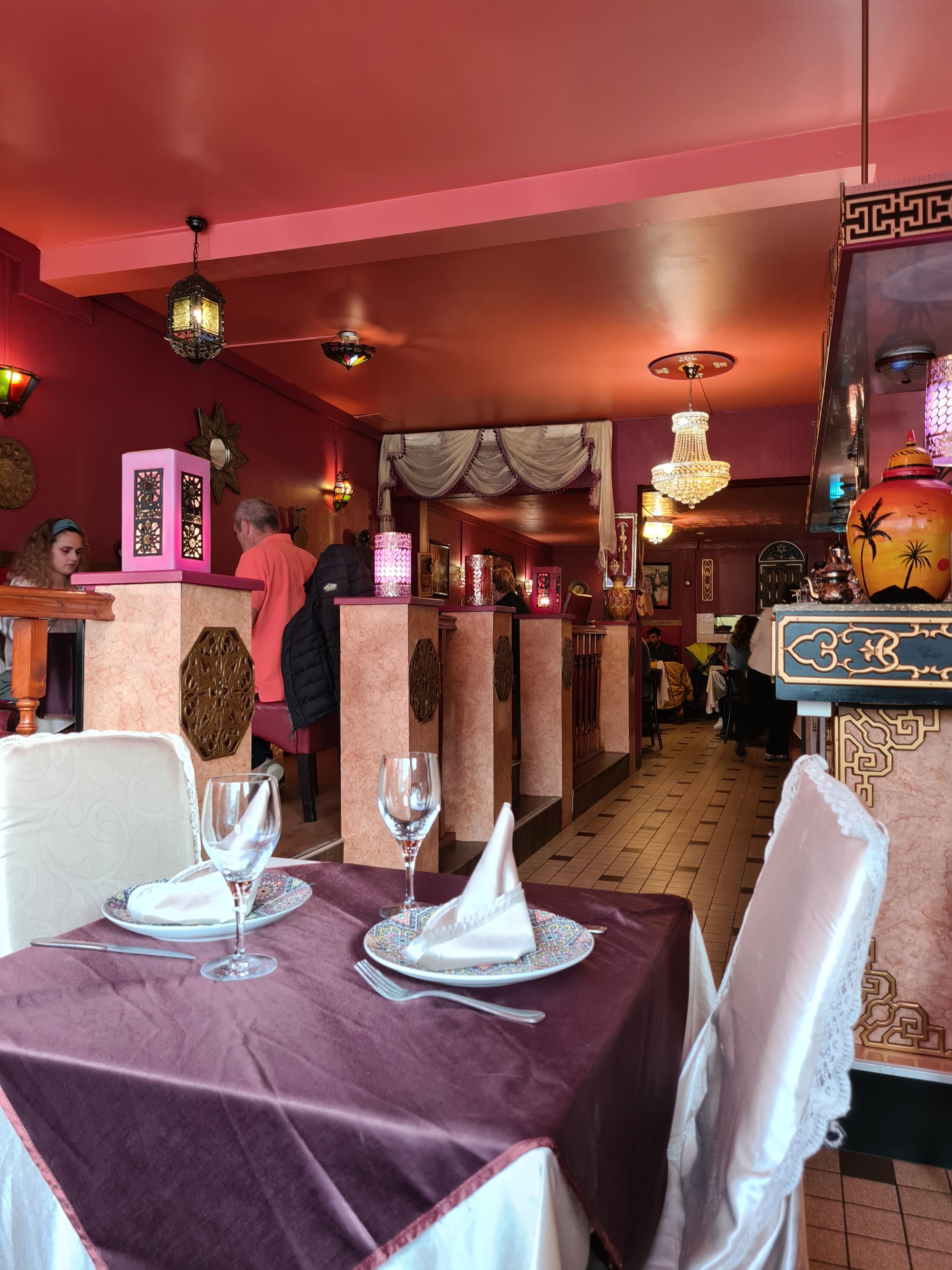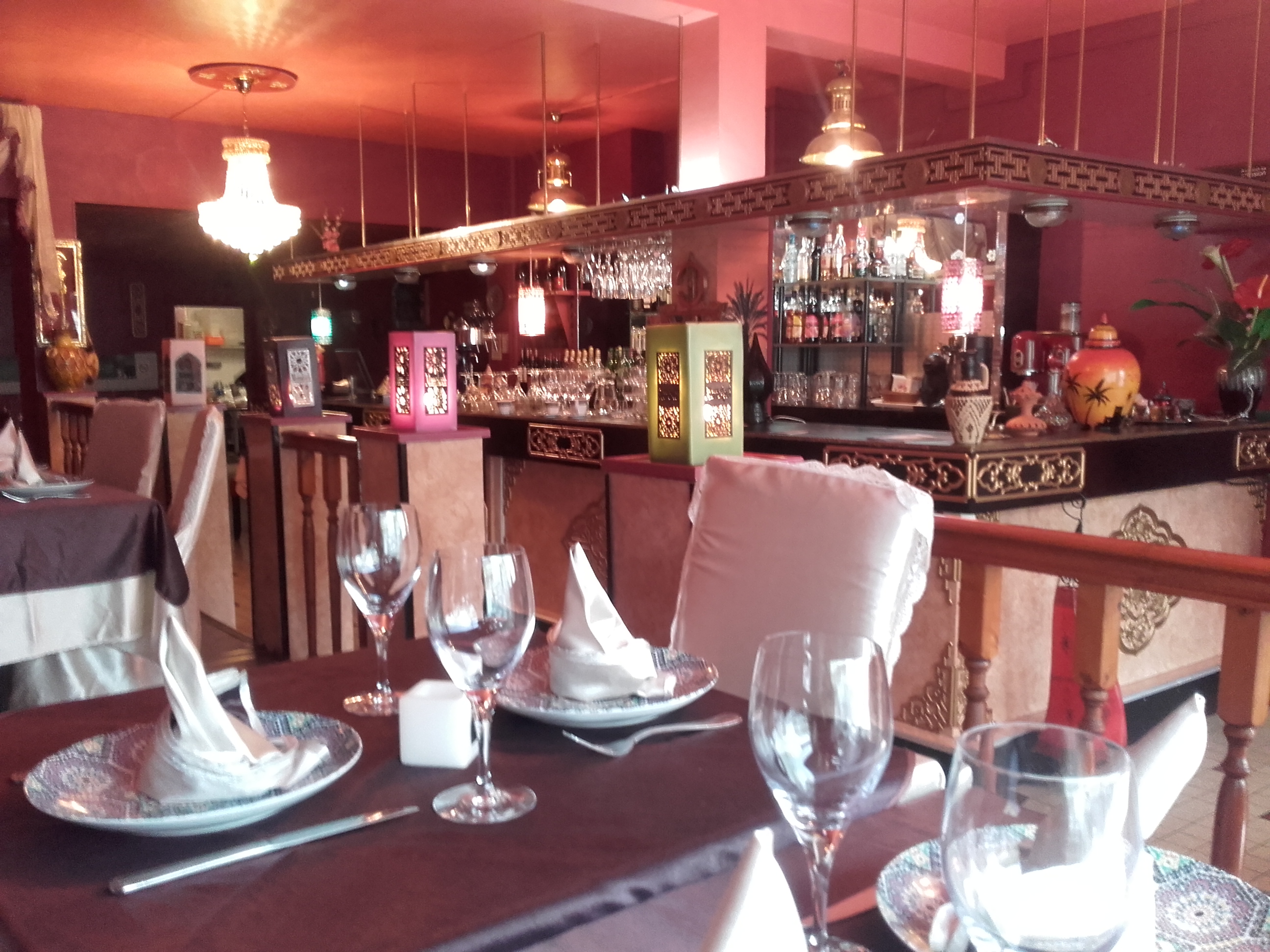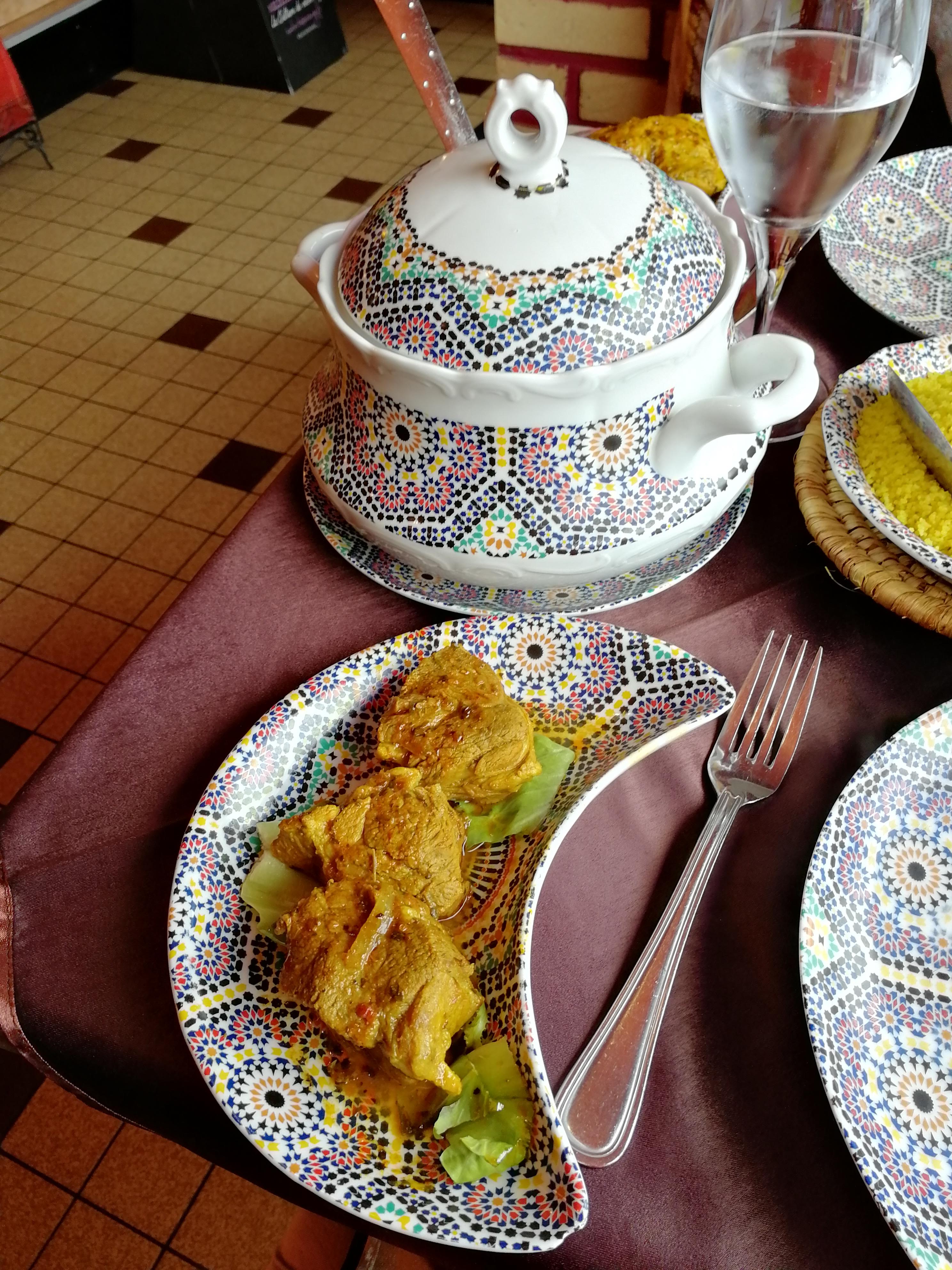 Restaurant situé au bas d un immeuble triste de Calais. Accueil froid, très loin de la chaleur Marocaine. C'est vrai le couscous est bon mais ce n est pas le meilleur que j'ai mangé. Pour ceux qui connaissent, nous sommes loin d'un couscous traditionnel, ( 3 morceaux de carottes et deux de courgettes se baladent dans le bouillon. )Prix un peu élevé.( une bouteille de vin et deux couscous 66 euros) Cadre rococo et triste. J'ai bien mangé sans plus , je n y retournerai pas, moi qui connait Marrakech comme ma poche, ce restaurant ne m a pas fait voyager. Ou est le sourire Marocain et la chaleur du Maroc? Je ne conseille pas.