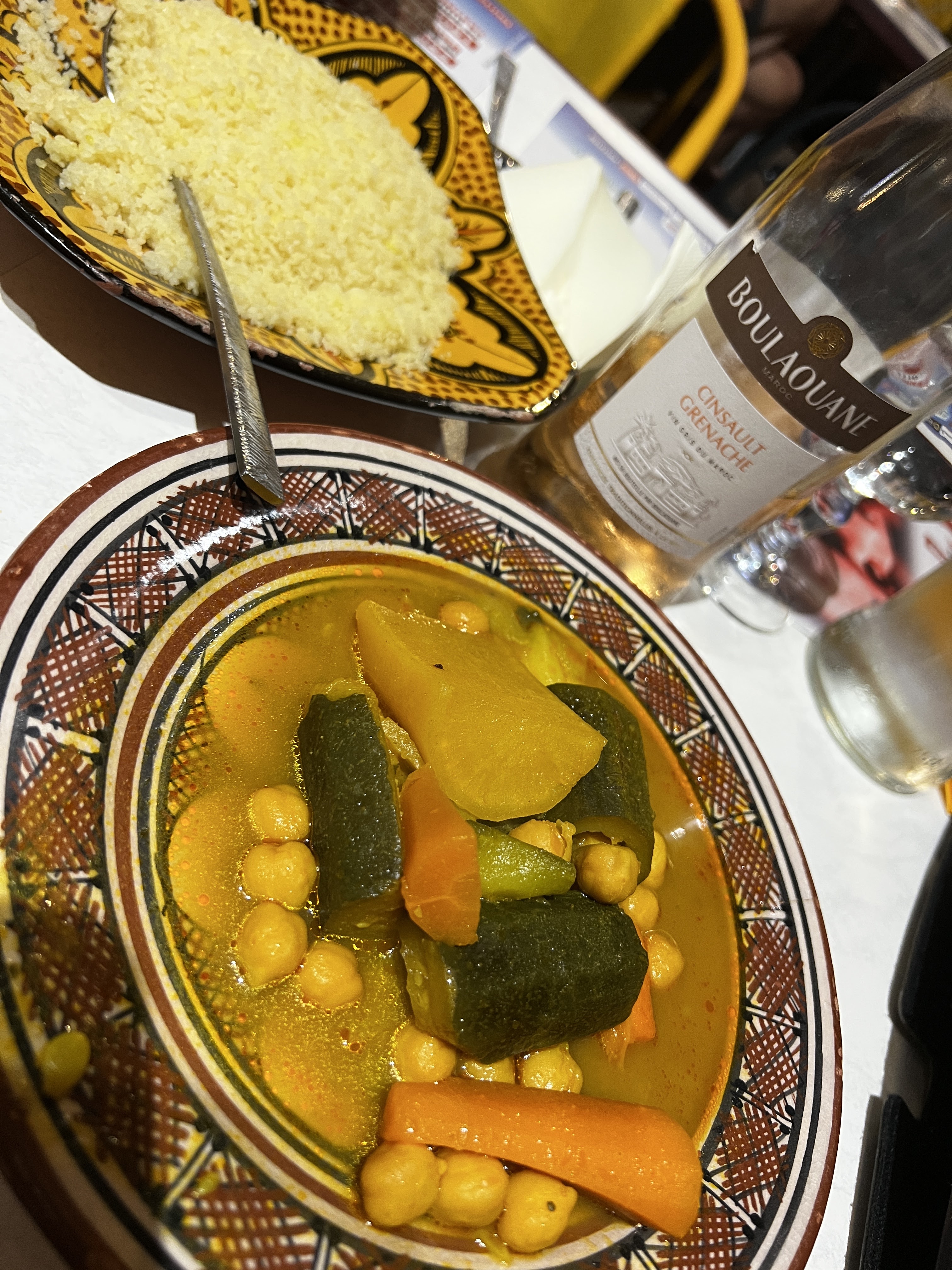 Si vous êtes au beau milieu de la France, en pleine crise scientifique et que vous souhaitez vivre un saut spatio-temporel au Maroc, il ne vous reste plus qu'à manger dans cet endroit. Un excellent accueil, familier et chaleureux. Le vin marocain Guerrouane 2018 est bon mais sans notes excellentes. En excellence cependant, on s'élève avec le couscous agneau pour s'élever parmi les dieux avec le tajine au fruit sec. Un équilibre de saveurs et d'odeurs qui permettent de comprendre que l'immatériel existe. Merci.