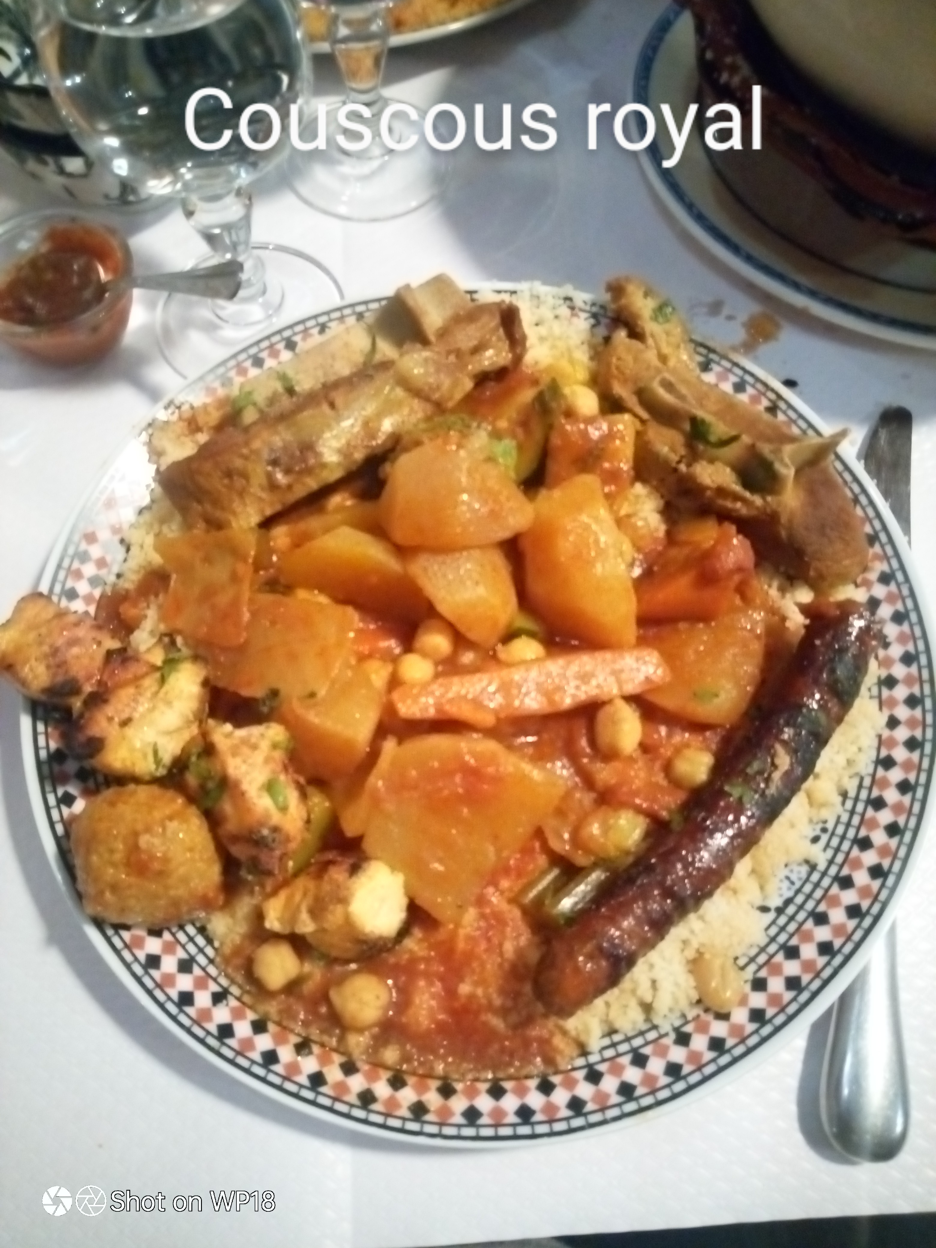 Le Couscous royal était bon. Les quantités de viandes un peu limitées mais nous avons peu avoir de la semoule et des légumes en plus. Digestif offert.