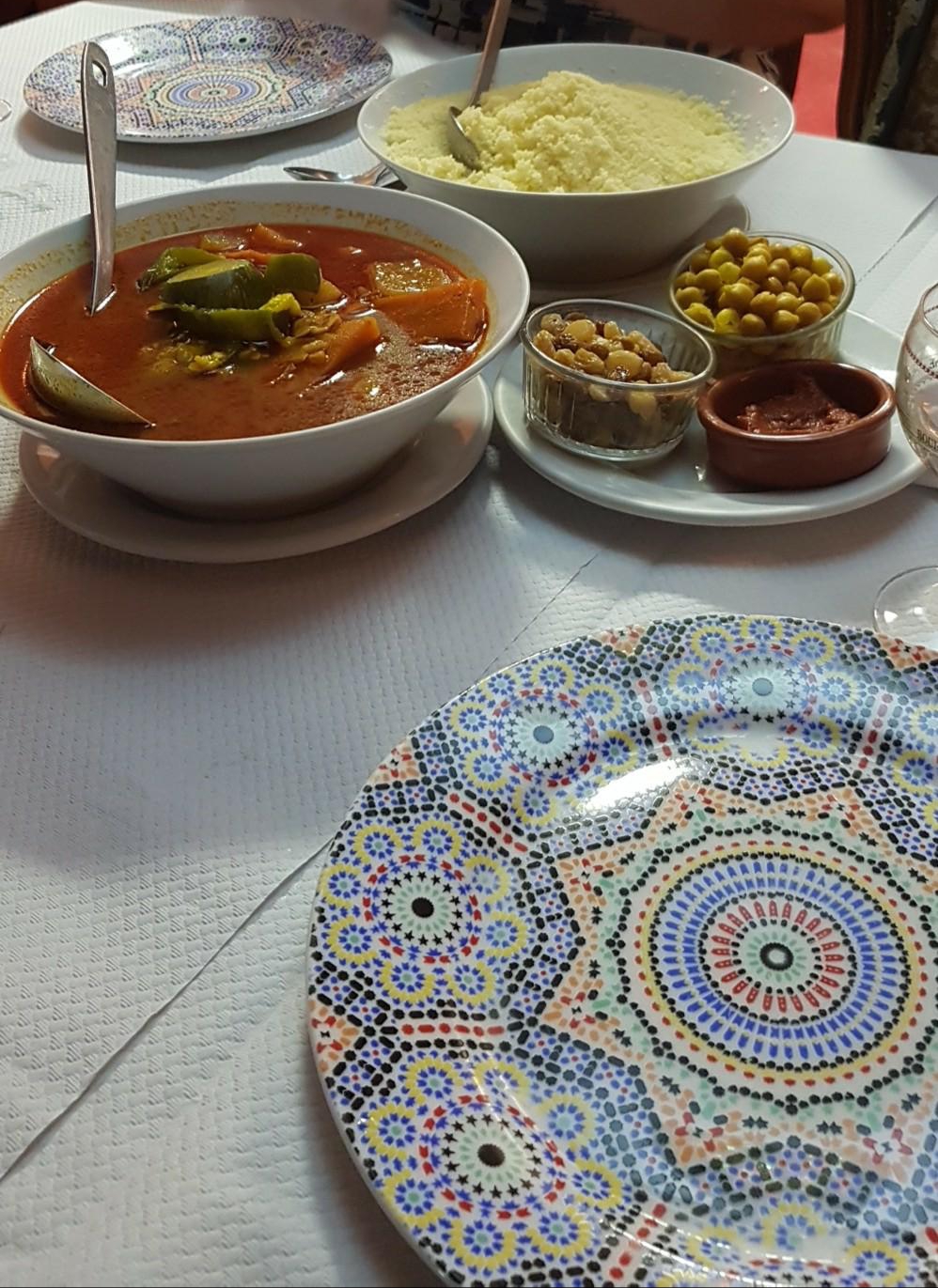 Ma première expérience dans un restaurant maghrébin, je me suis laissé tenter par le couscous avec le plus d'ingrédients pour une bonne mixité dans l'assiette. Les quantités sont très bien. Tout est servi dans une assiette séparée afin de se servir comme bon nous semble. Si vous êtes un grand mangeur, vous pouvez même demander quelques ingrédients supplémentaires. Les prix sont corrects 👍💰 Le point négatif que je donnerai est le suivant : Je suis venu un midi, en semaine, il n'y avait pas grand monde dans le restaurant, juste une table de 3-4 personnes. Le silence règne dans la salle... Il manque un petit quelque chose, une petite musique orientale ou autre... Avec un volume ajusté en fonction du bruit.