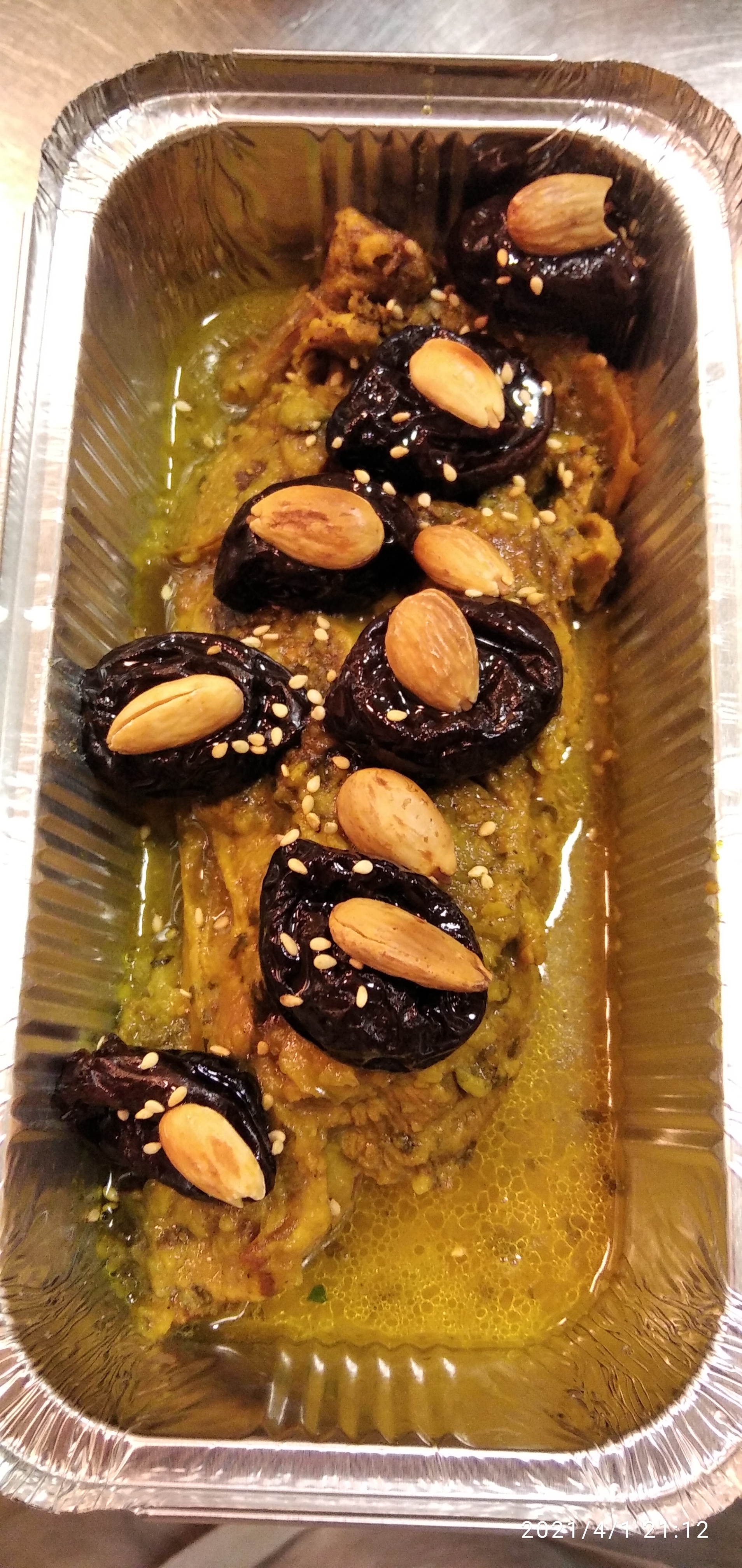 Tagine pas assez copieux..... 2 morceaux de poulet , quelques amendes , 3 pruneaux et 3 abricots. Pas de légumes