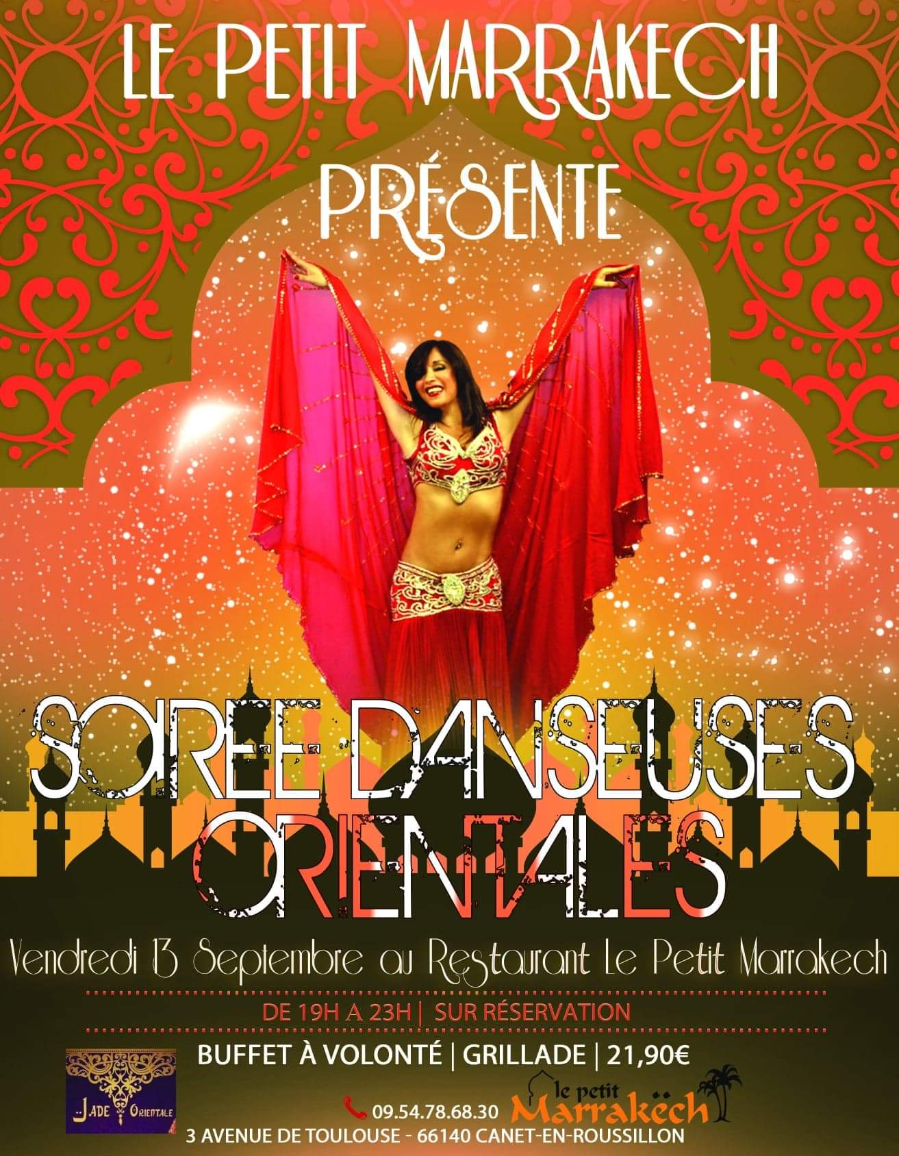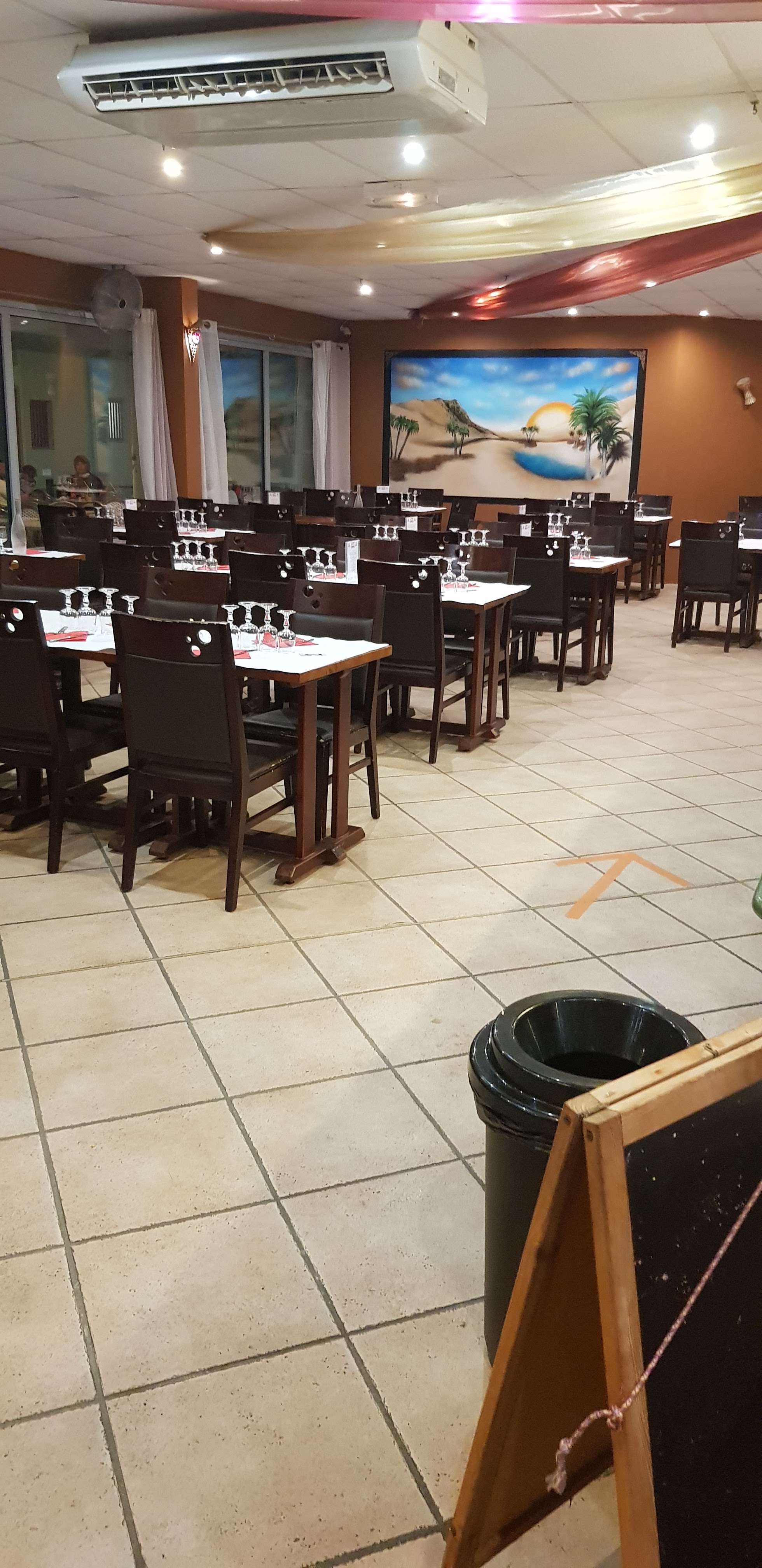 Une déception : restaurant sans aucun charme, rien d’oriental à part 2 appliques murales. Très bon accueil de la part des propriétaires. Le buffet est minuscule et très peu garni en entrées et plats… quant à celui des desserts, c’était une vraie catastrophe : 3 sortes de pâtisseries orientales sèches et sans cette saveur que l’on en attend, le reste des desserts : des fruits, de la compote individuelle de supermarché ! Rapport qualité /prix vraiment très décevant.