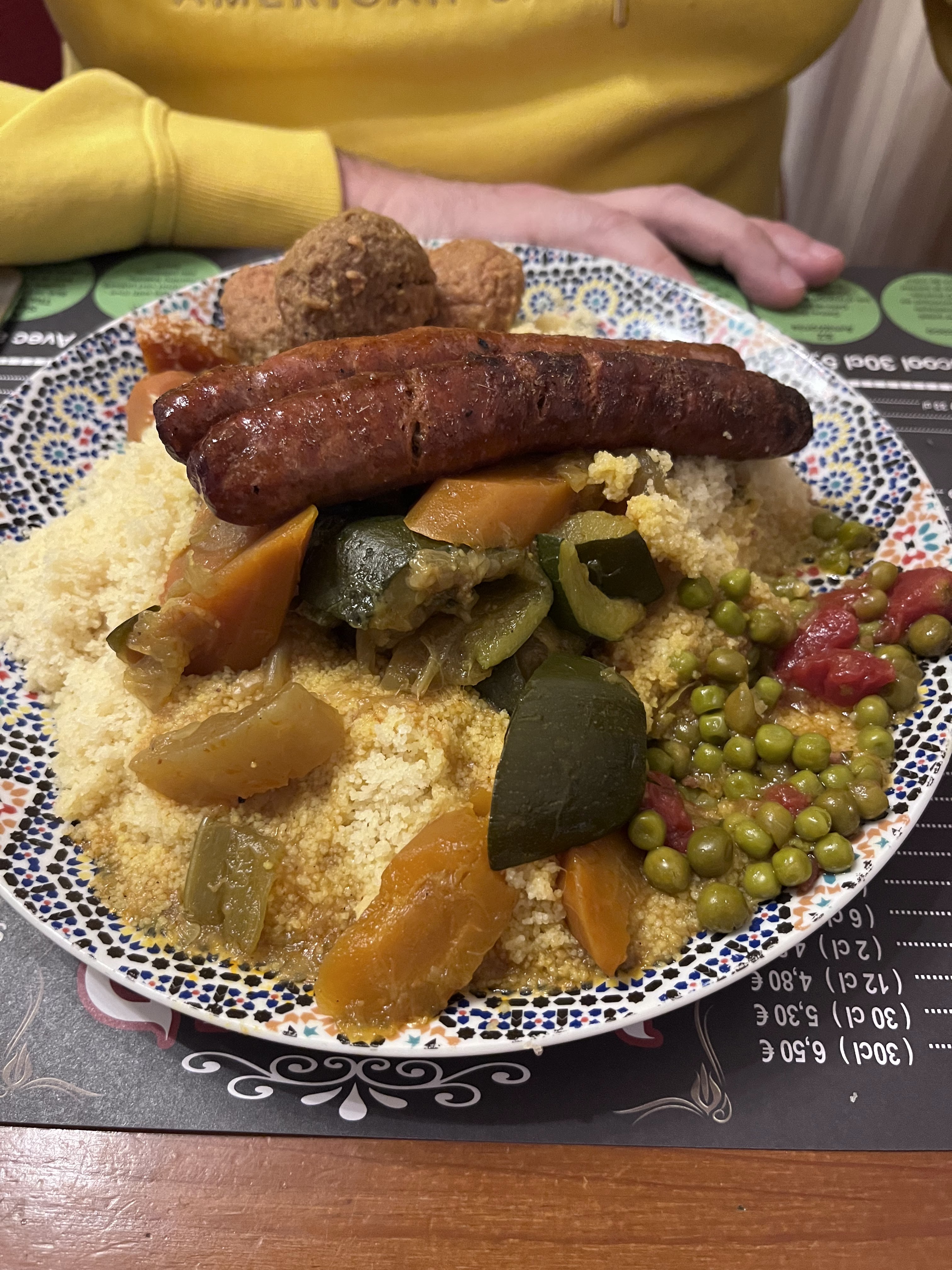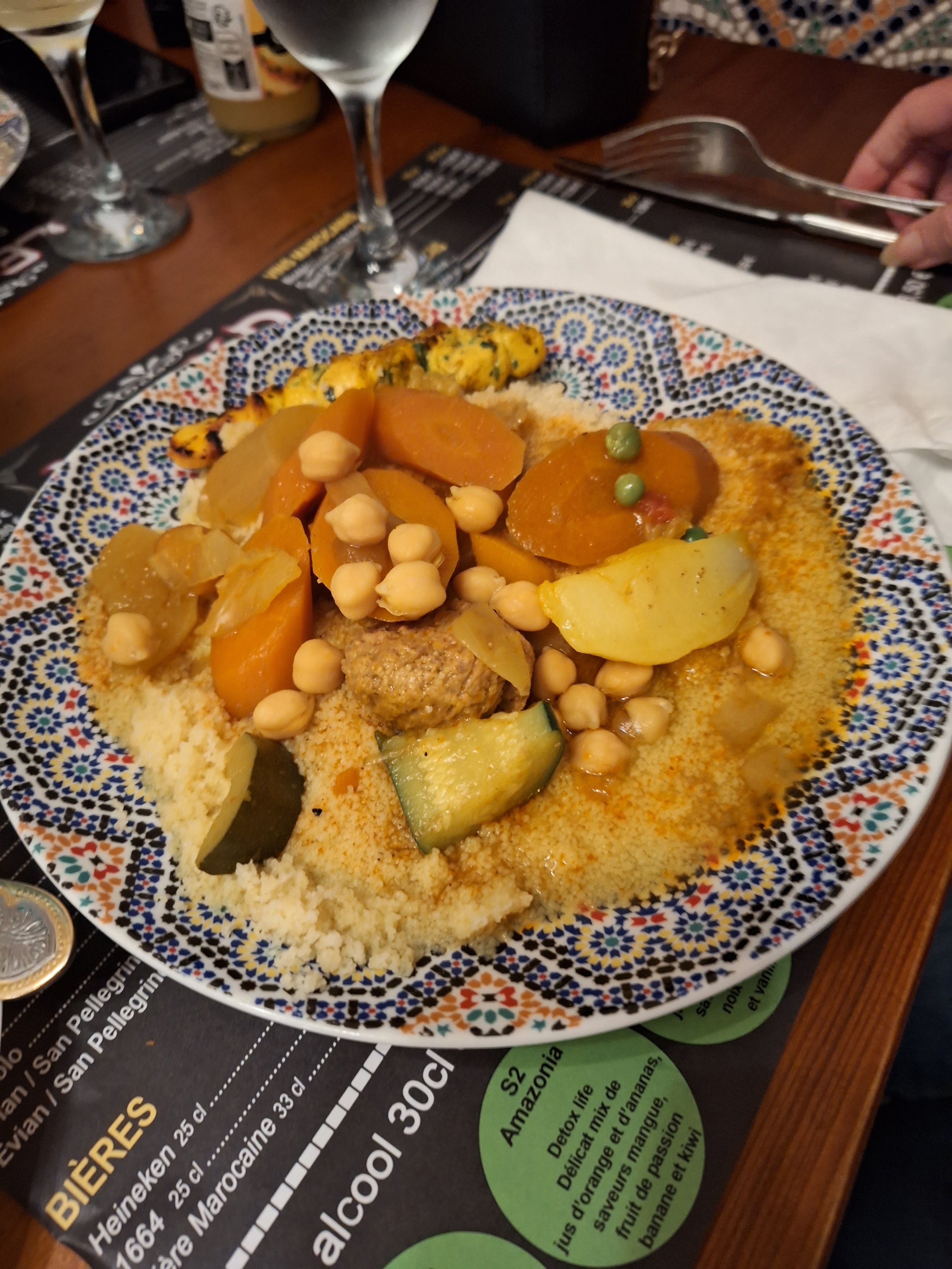 Déçue des plats car manque de goût et le couscous trop gras et le tajine aux pruneaux n'avait vraiment pas le goût d'un tajine aux pruneaux.