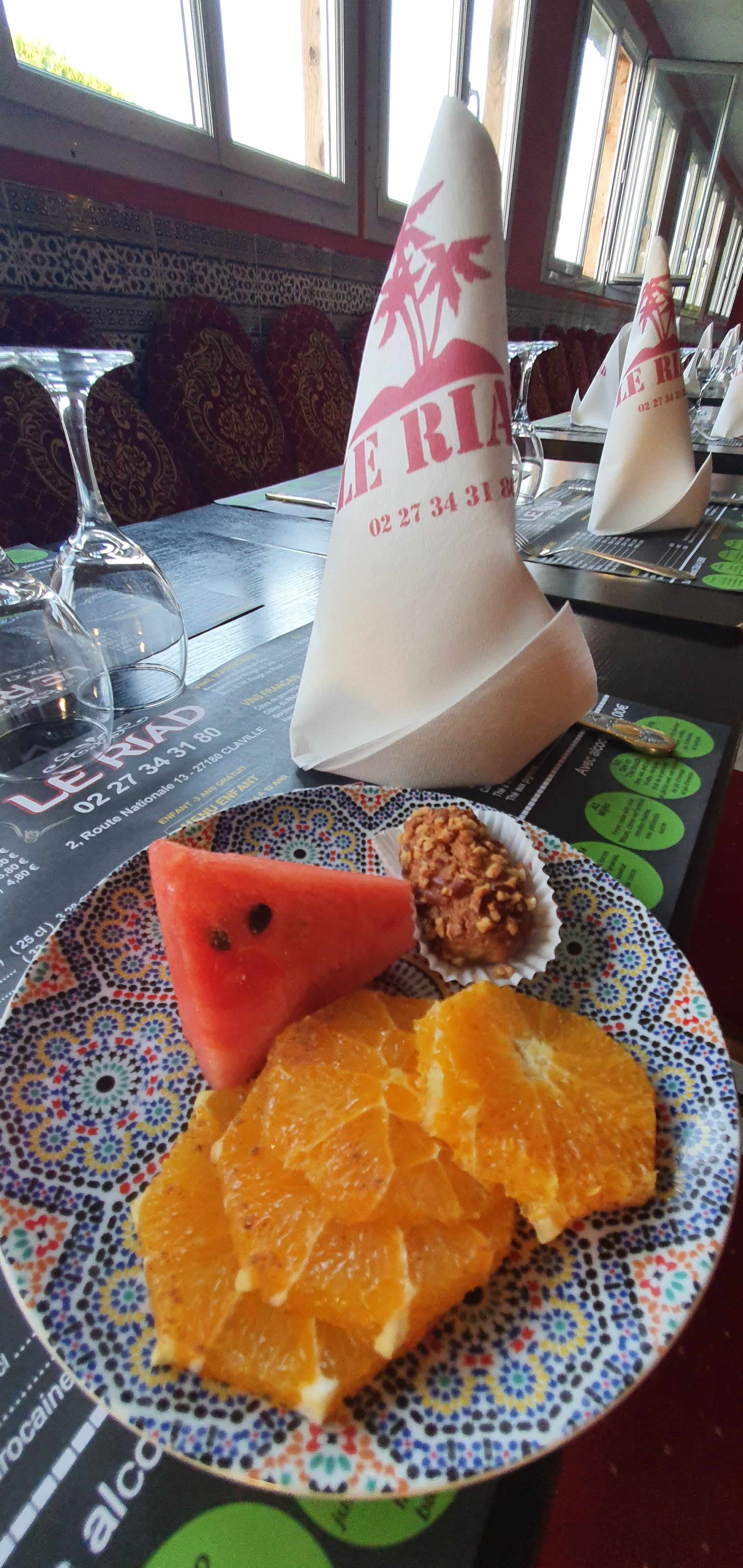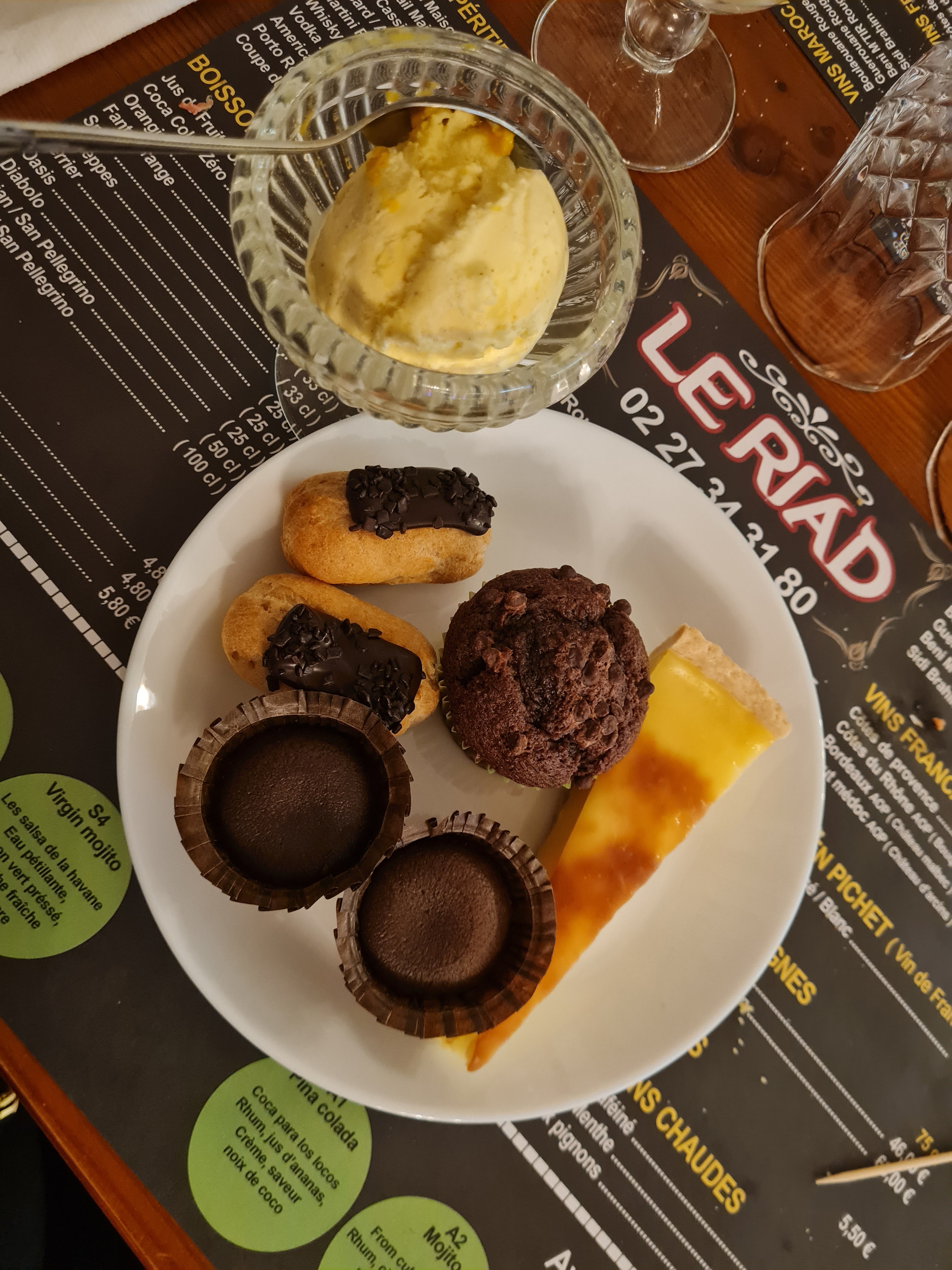 Vu l'heure à laquelle vous êtes arrivée nous n'allions pas rallumer les fourneaux... Vous avez 8 entrées différentes ! Quesquil vous faut ? En dessert vous avez des pâtisseries orientales et la salade d'orange à la marocaine 😆 le reste des desserts sont diversifiés entre fruits et autres... Nos plats sont pleins de saveur mais pas au goût de vos papilles Nos clients habitués sont très content même les nouveaux 😉 Bonne continuation 😊