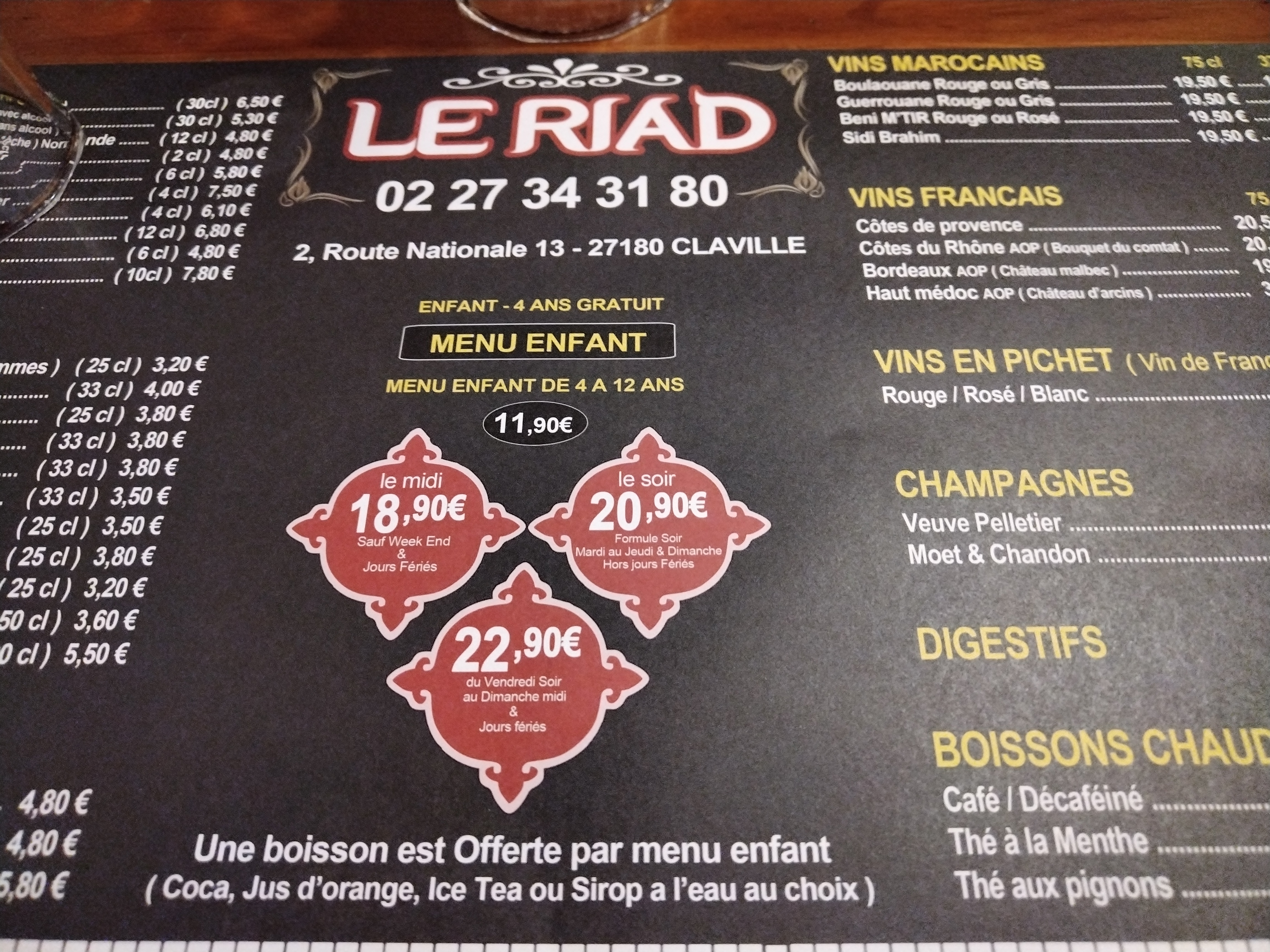Voici toutes les informations sur le Restaurant marocain Le Riad qui ce trouve au 2 RN 13, 27180 Claville (27). Sur cette fiche vous trouverez les photos, l'adresse, les horaires d'ouverture, le numero de téléphone et les avis clients.Vous pouvez églement rédiger un avis si vous le souhaitez en bas de page.