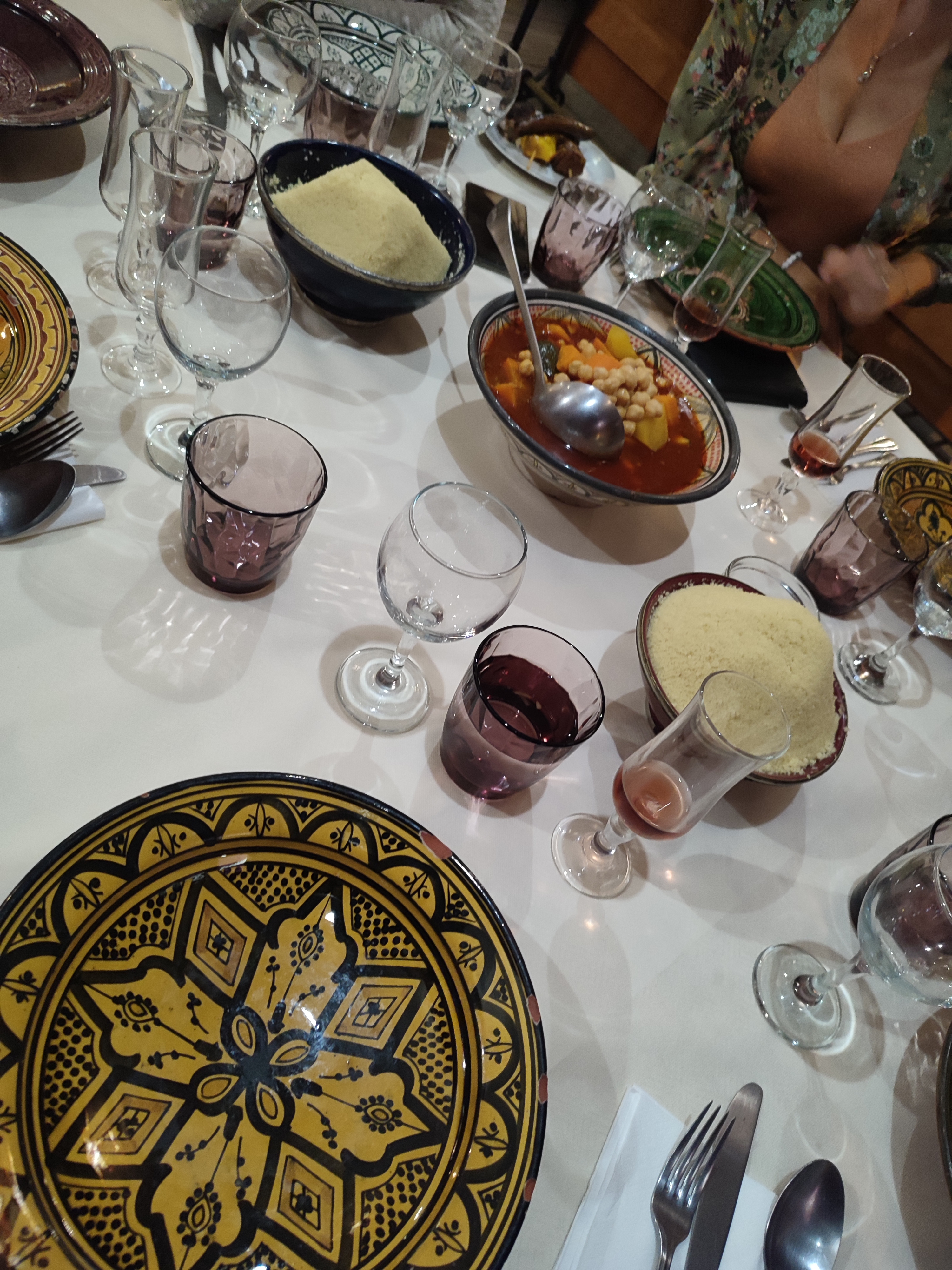 Nous n'avons pas retrouvé les saveurs de VRAIS plats marocains. Tres très Grosse déception. Les patisseries sont achetés ailleurs et nous avons eu droit à 1 petit petit petit gâteau et 1 autre a se partager a 2, alors qu Il était noté assiettes de pâtisseries .