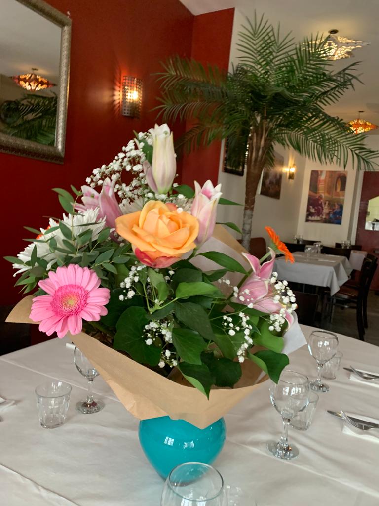 Repas avec trois amies en déplacement professionnel. Un vrai moment de plaisir. Nous avons voyagé au Maroc. La patronne est au petit soin pour ses clients. La viande de ma tajine était fondante les légumes cuits à la perfection et pour terminer des petits gâteaux maison. Merci encore à toute l’équipe du Riadh pour ce moment gastronomique. J’attends avec impatience ma prochaine visite pour découvrir les autres plats de votre carte.