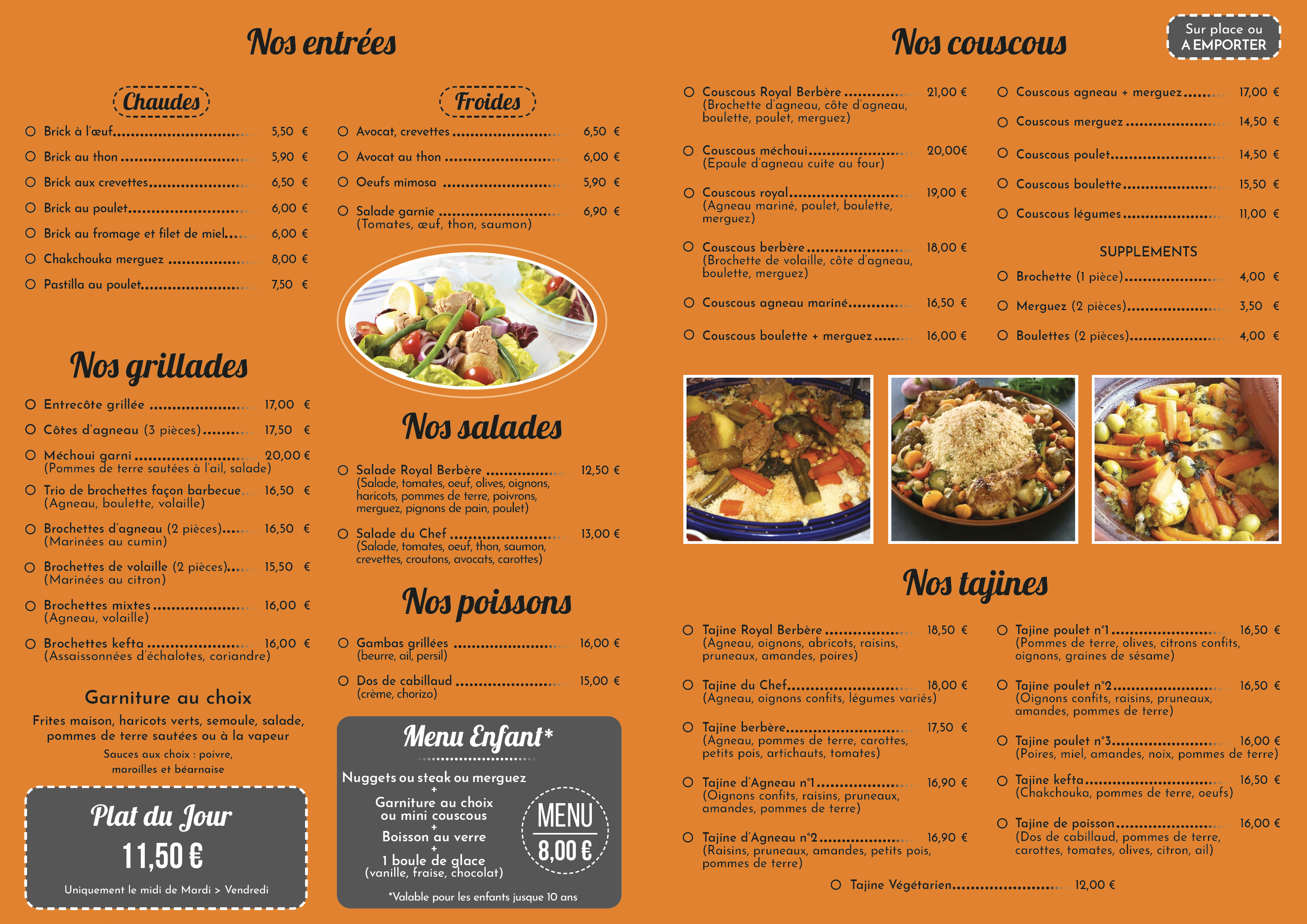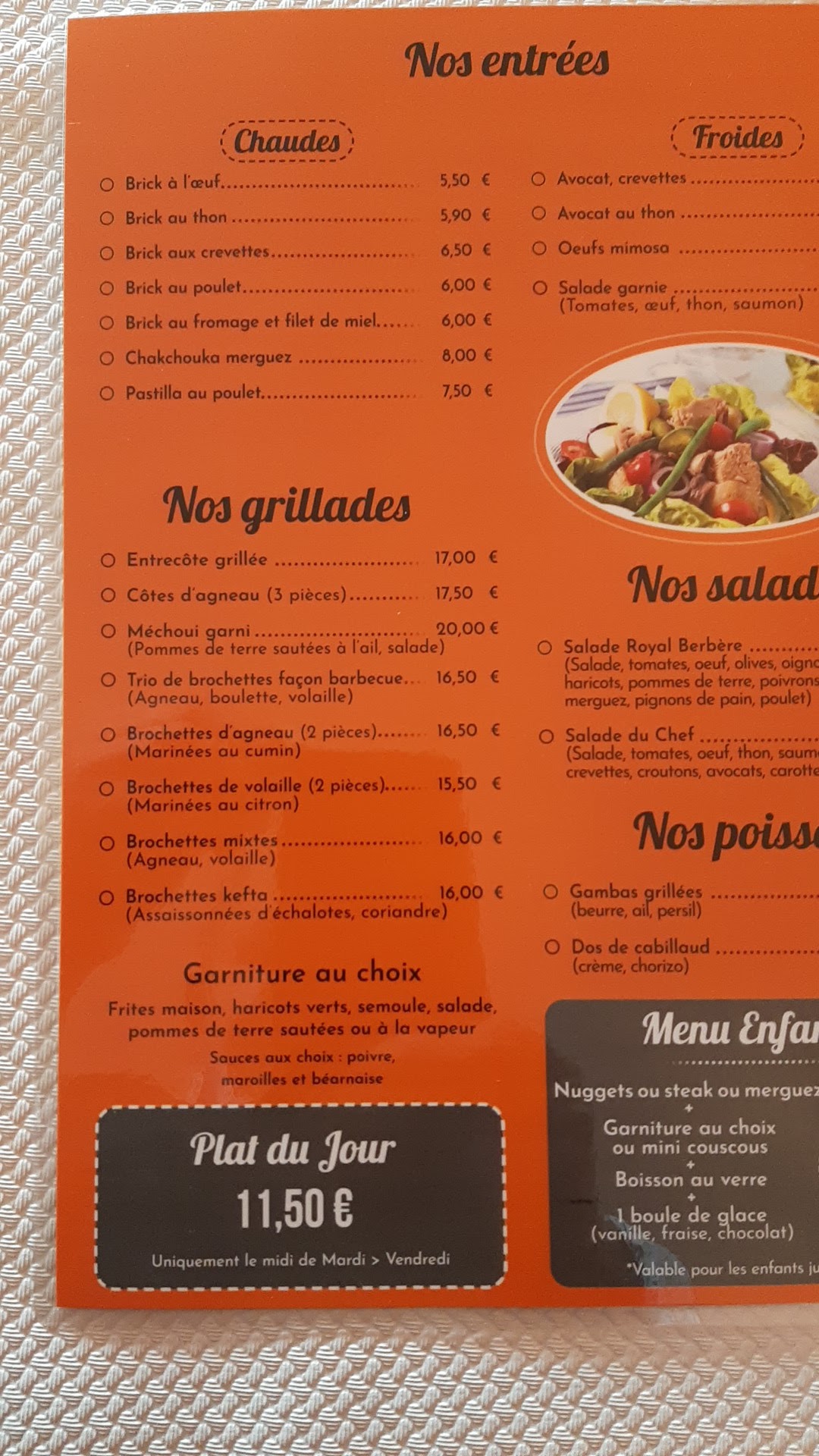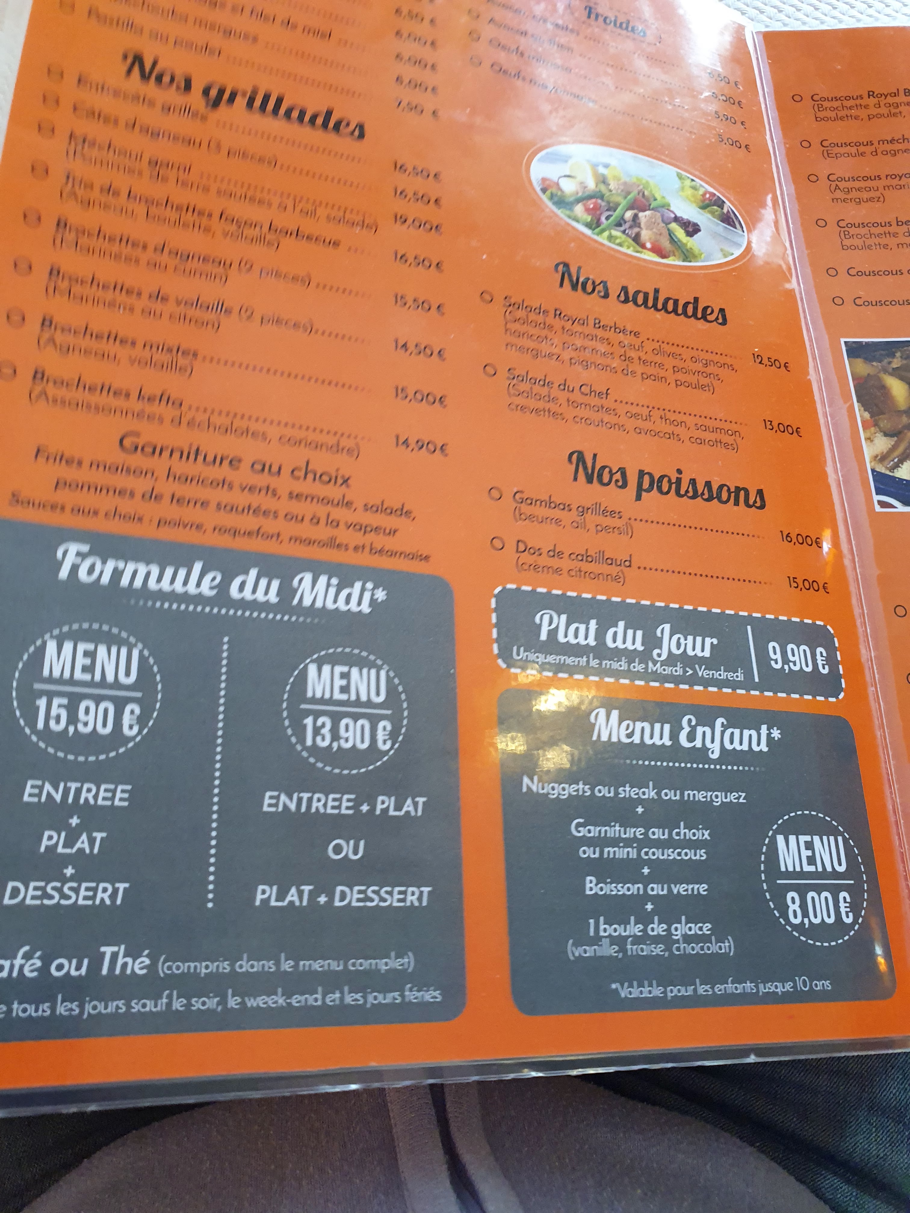 Je cherchais autre chose qu'un hamburger et des frites ou une pizza. Des portions de grande taille très savoureuses, des aliments frais et capables de me procurer un tajine végétarien. Mon mari a vraiment apprécié son berbère, composé de merguez, d'agneau, de poulet et de bœuf. Très bon rapport qualité/prix.