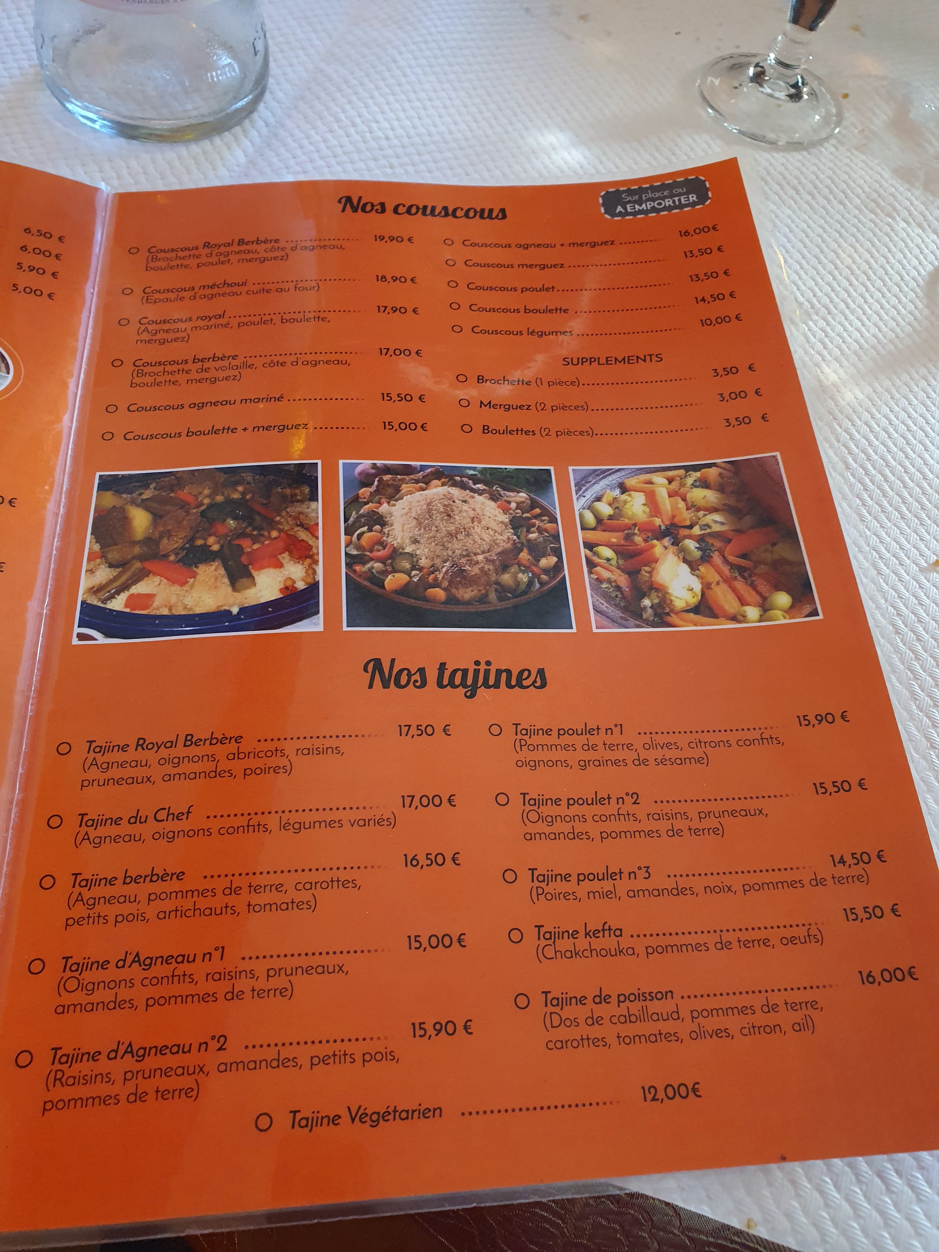 Tout est parfait, très bien accueilli et très aimable patron et cuisinier, nous nous sommes régalé avec les tajines et le dessert. Très bon rapport qualité prix. Nous recommandons vivement cet établissement. Valérie et Pascal.