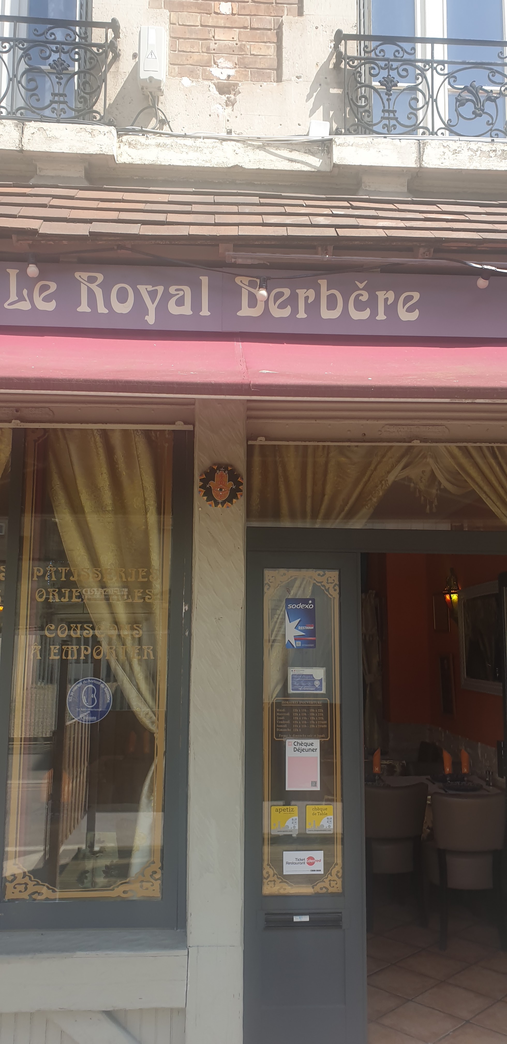 Voici toutes les informations sur le Restaurant marocain Le Royal Berbére qui ce trouve au 22 Rue du Pot d'Étain, 02200 Soissons (02). Sur cette fiche vous trouverez les photos, l'adresse, les horaires d'ouverture, le numero de téléphone et les avis clients.Vous pouvez églement rédiger un avis si vous le souhaitez en bas de page.