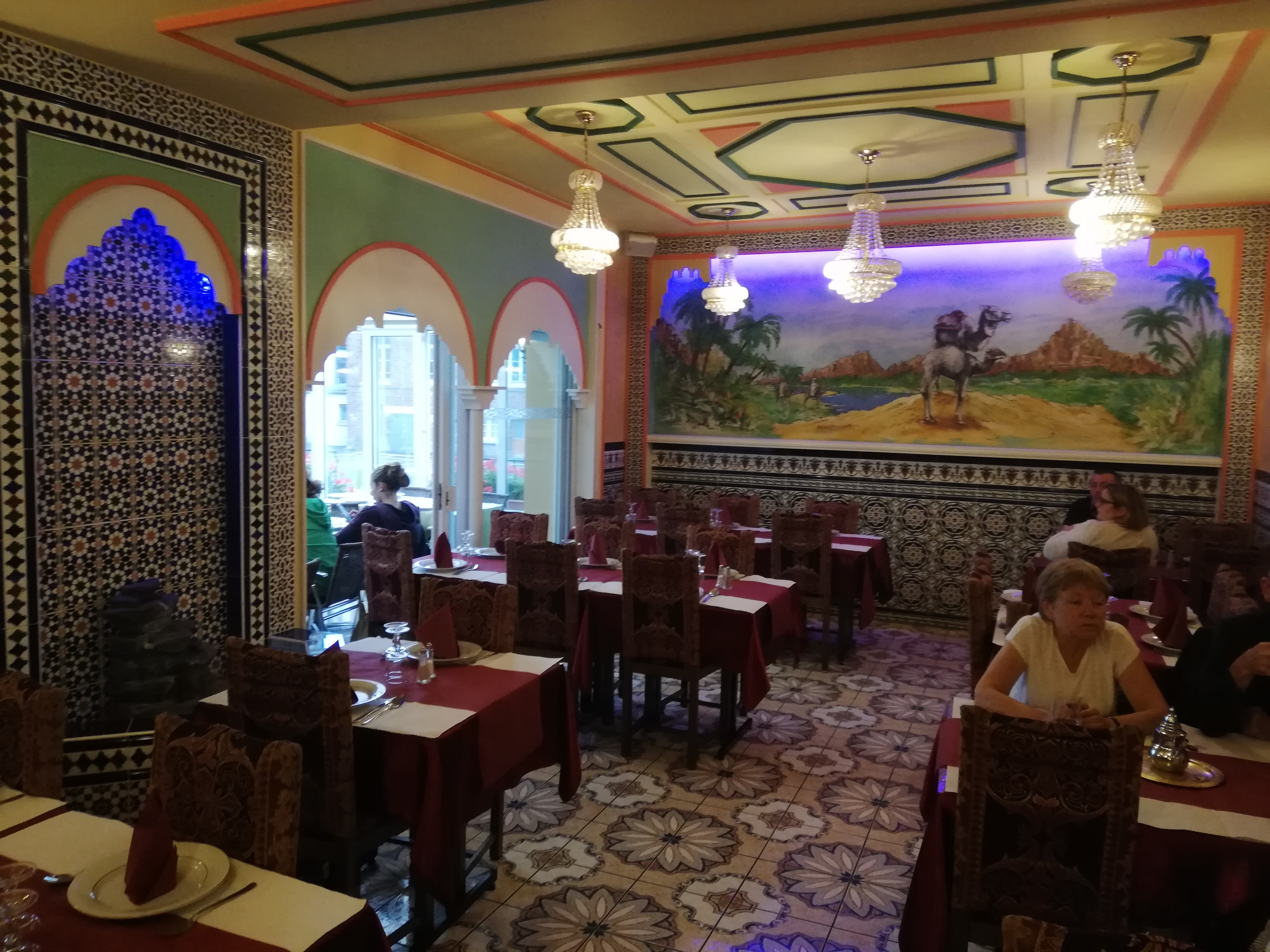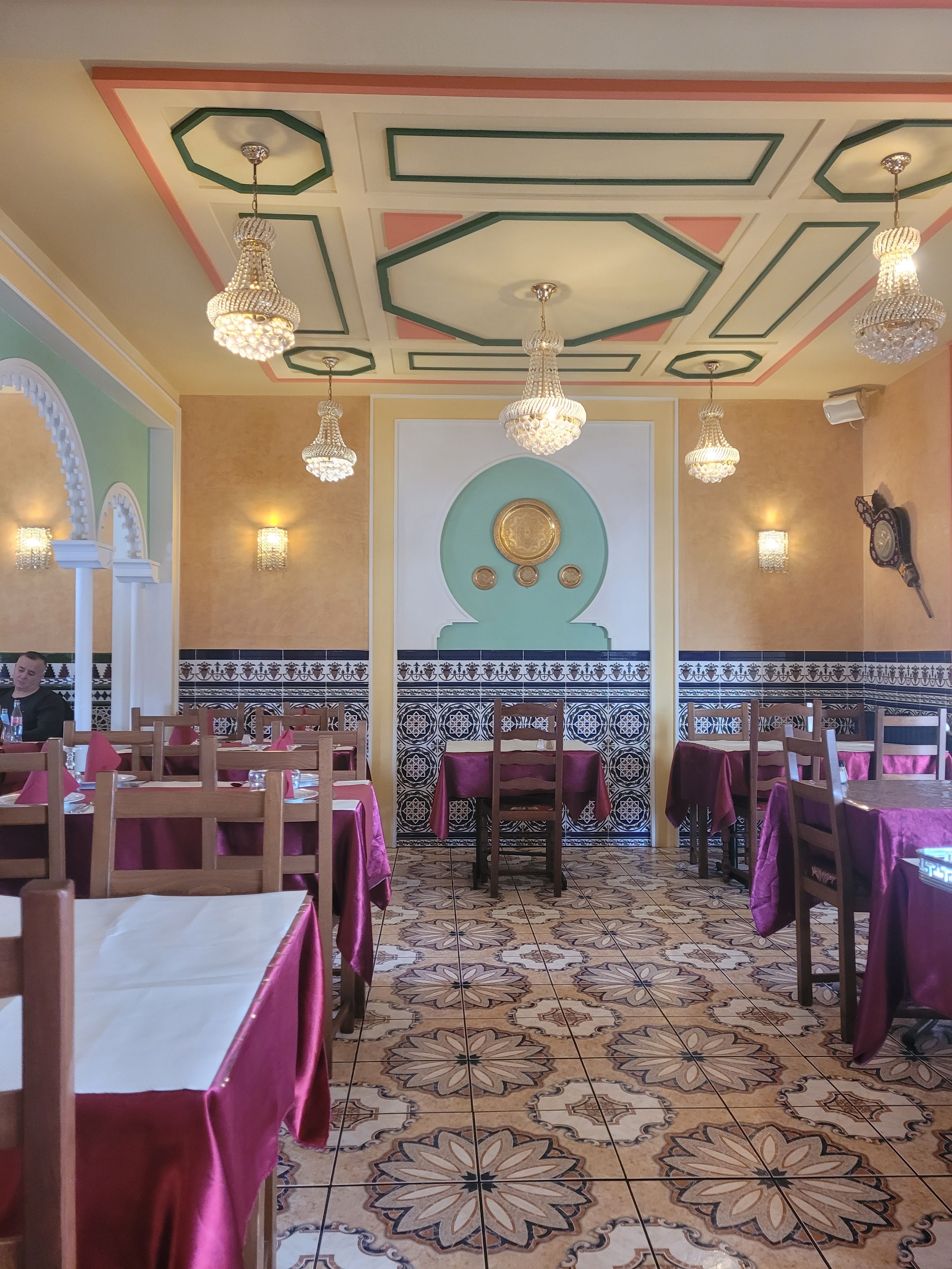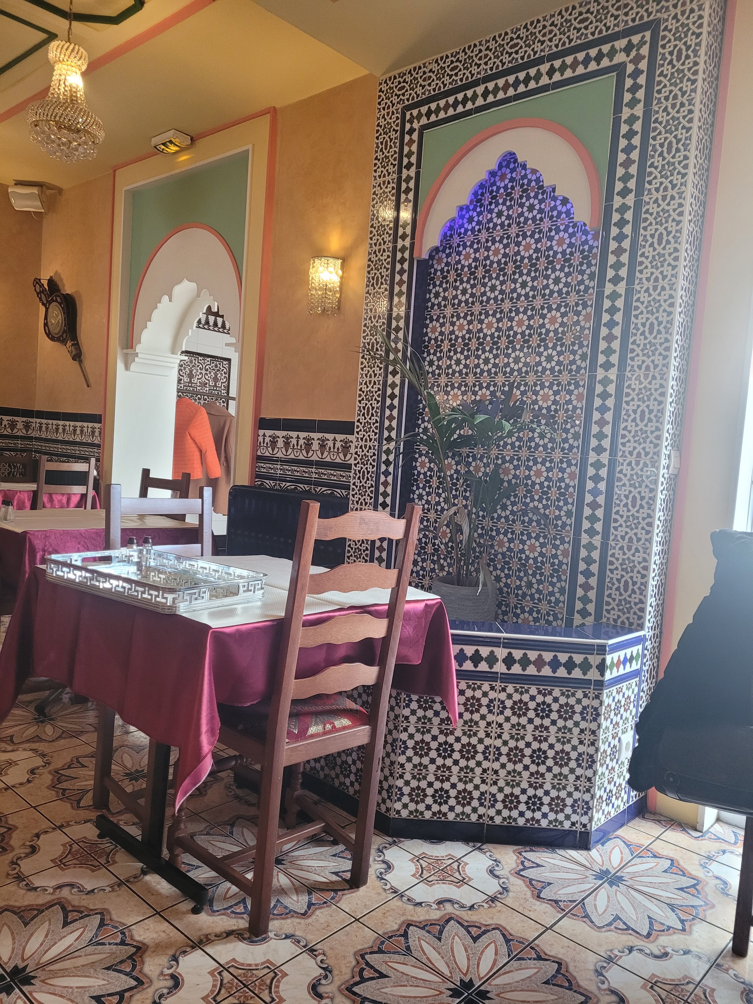 Dîner en amoureux, entre amis ou en famille vous vous sentirez à l'aise et bien accueilli. Le déco est typique et les lieux très propres. La cuisine est un délice, les tajines et couscous sont succulents et je vous conseille l'assiette de pâtisseries orientales, un trio de saveurs et d'arômes, hummm! J'oubliais, vous pouvez manger dans la véranda pleine de lumière !