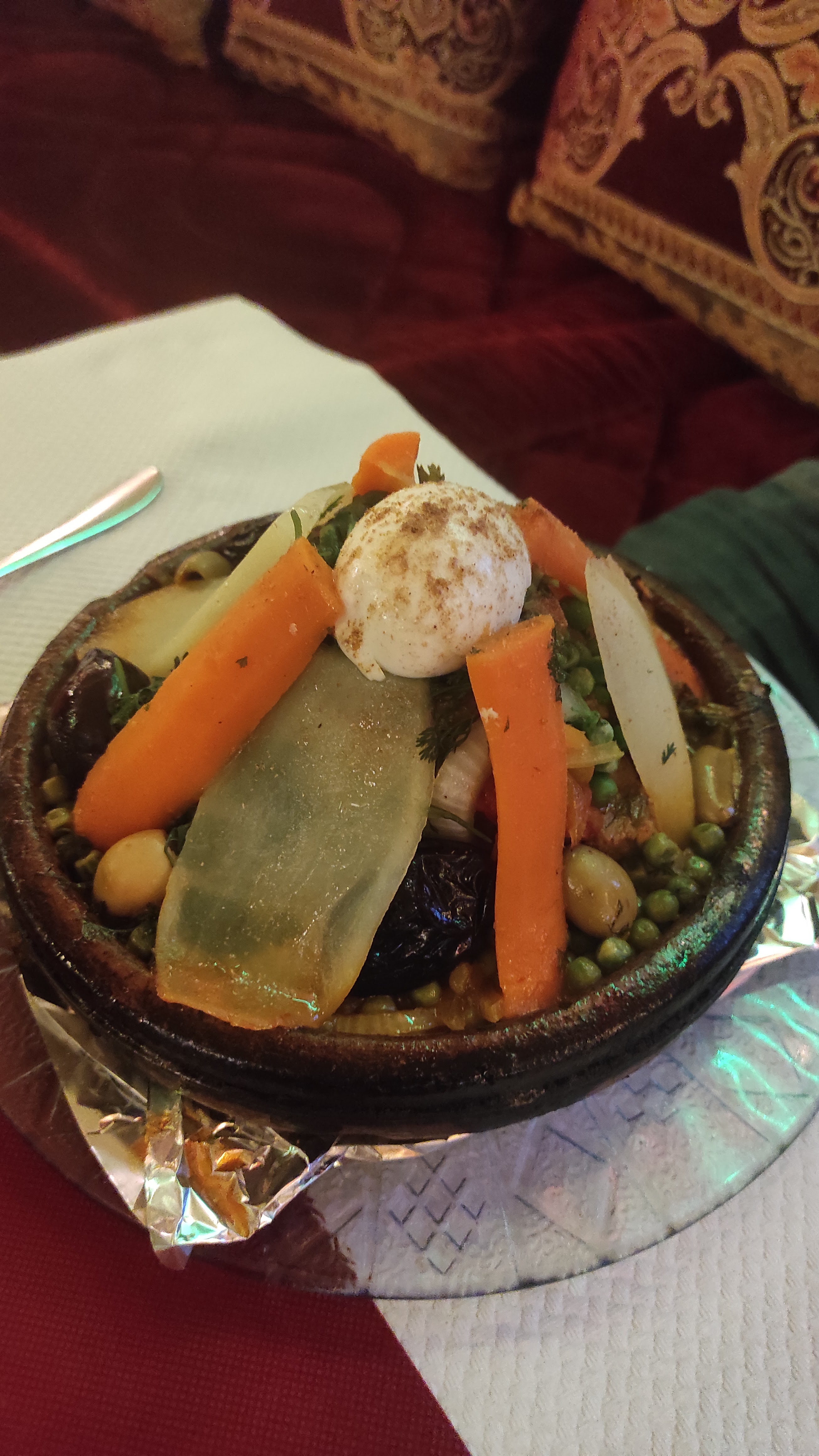 Je me souviens être allez manger ds ce restaurant, ma femme avait commander un tagine de fruit de mer et moi de légume. Nous n'avons jamais manger quelques chose d'aussi dégueulasse. Mon tagine de légume c'était juste des légumes cuit dans de l'eau sans aucune saveur, mais qd je dit juste des légumes cuit dans de l'eau c’était vraiment ca (un simple potage de légume quoi...et sans gout) Et ma Femme n'a absolument rien manger de son plat. Ont c'est même demandé s'ils l'ont pas fait exprès pour pas que l'ont revienne tellement c'était du foutage de gueule...en repartant nous avons remarqué beaucoup de saleté au bar comptoir, bref....Adieu pour votre réponse : Au lieu de fouiller dans les archives avis des clients, remettez vous en question et demandez vous : pourquoi ce ou ces clients sont insatisfaits car je remarque aussi qu'a chaque fois qu'un client vous met une mauvaise note vos réponses sont complétement inappropriées et nul.. en faite , elles sont à la hauteur de votre cuisine et restaurant, c'est a dire au ras du sol...bonne continuation