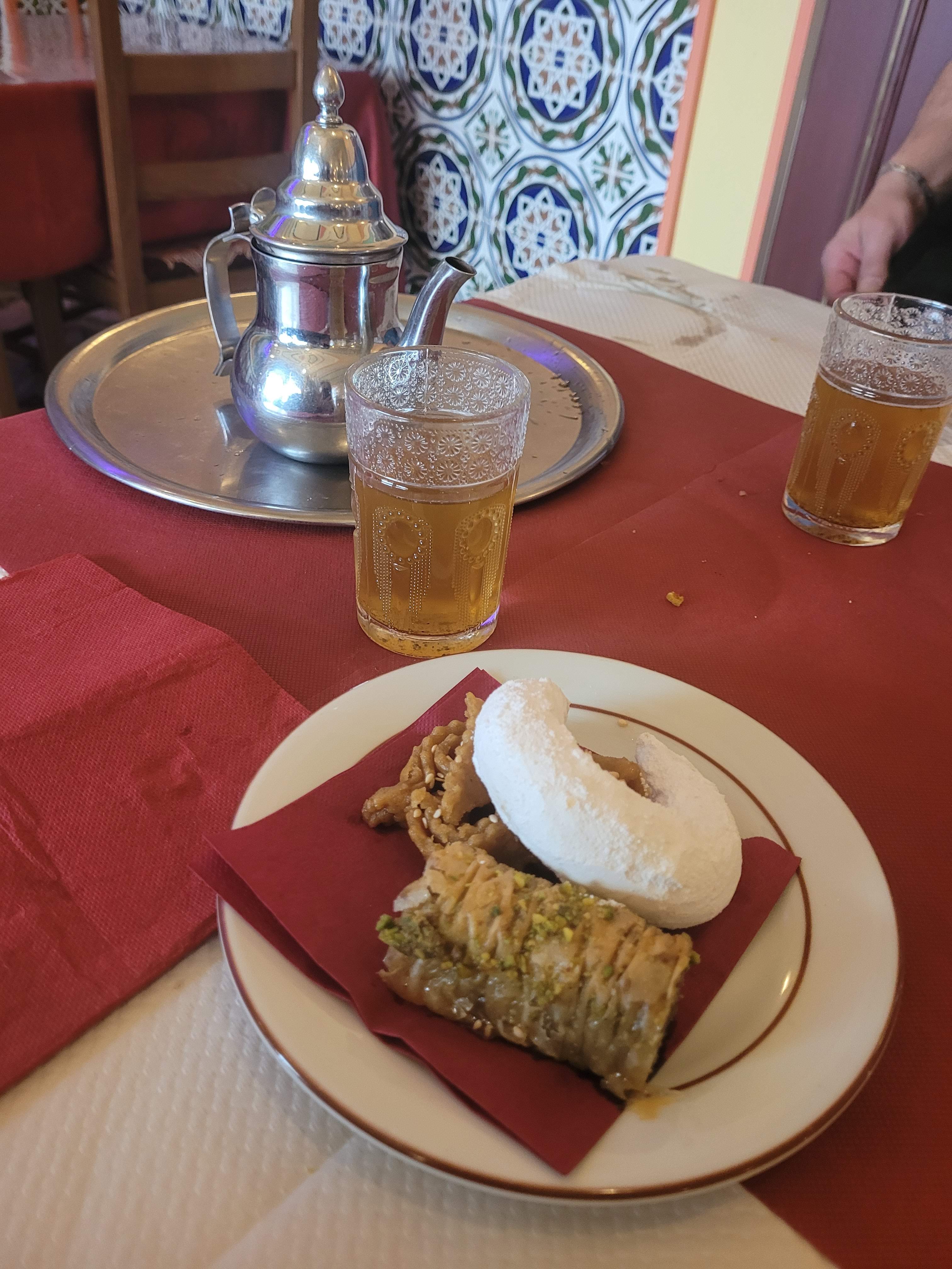 Un couscous excellent à un prix raisonnable. Des desserts orientaux sublimes et un thé à la menthe divin. Je ne peux que recommander cette belle adresse !!