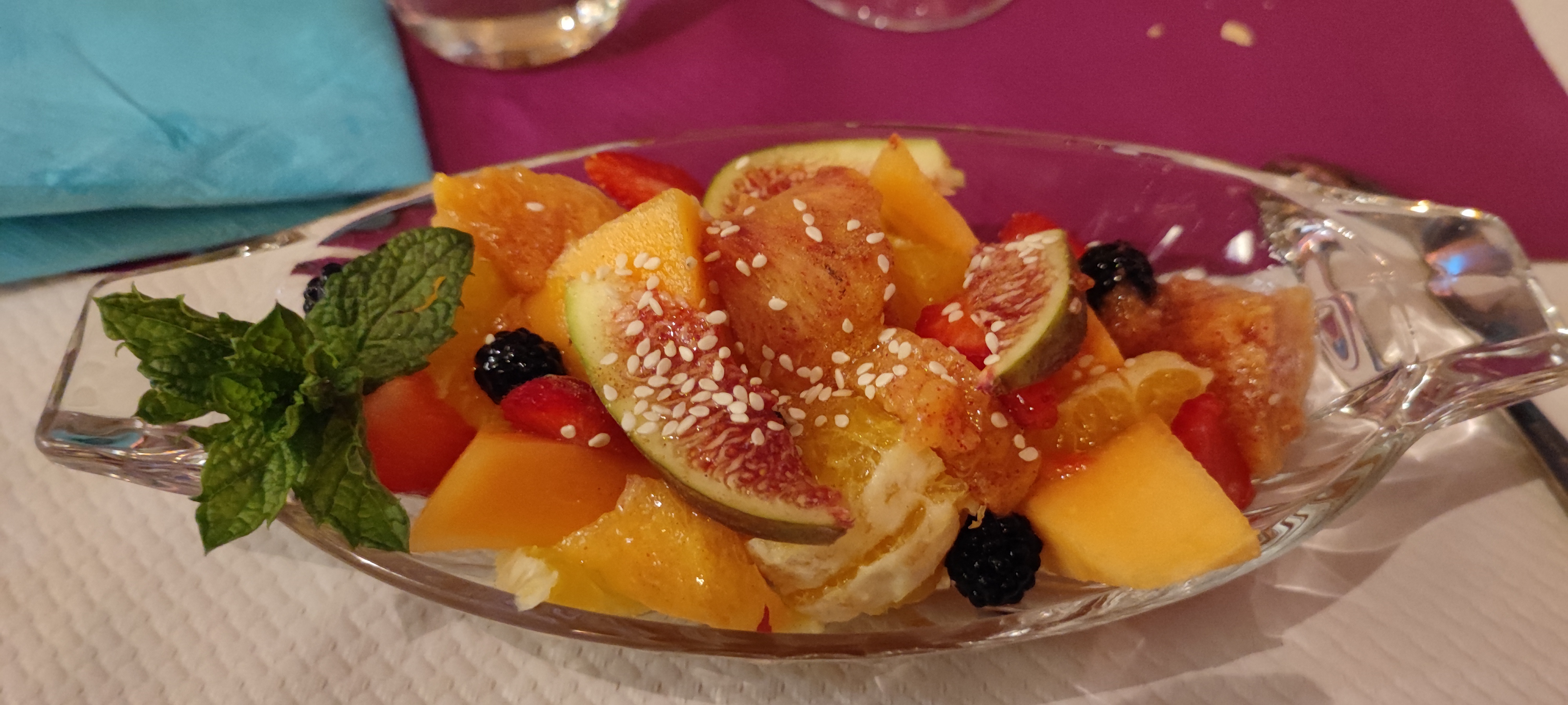 Le meilleur menu surprise que j'ai jamais mangé. Le tajine était extraordinaire, même la salade de fruit était bien travaillée.