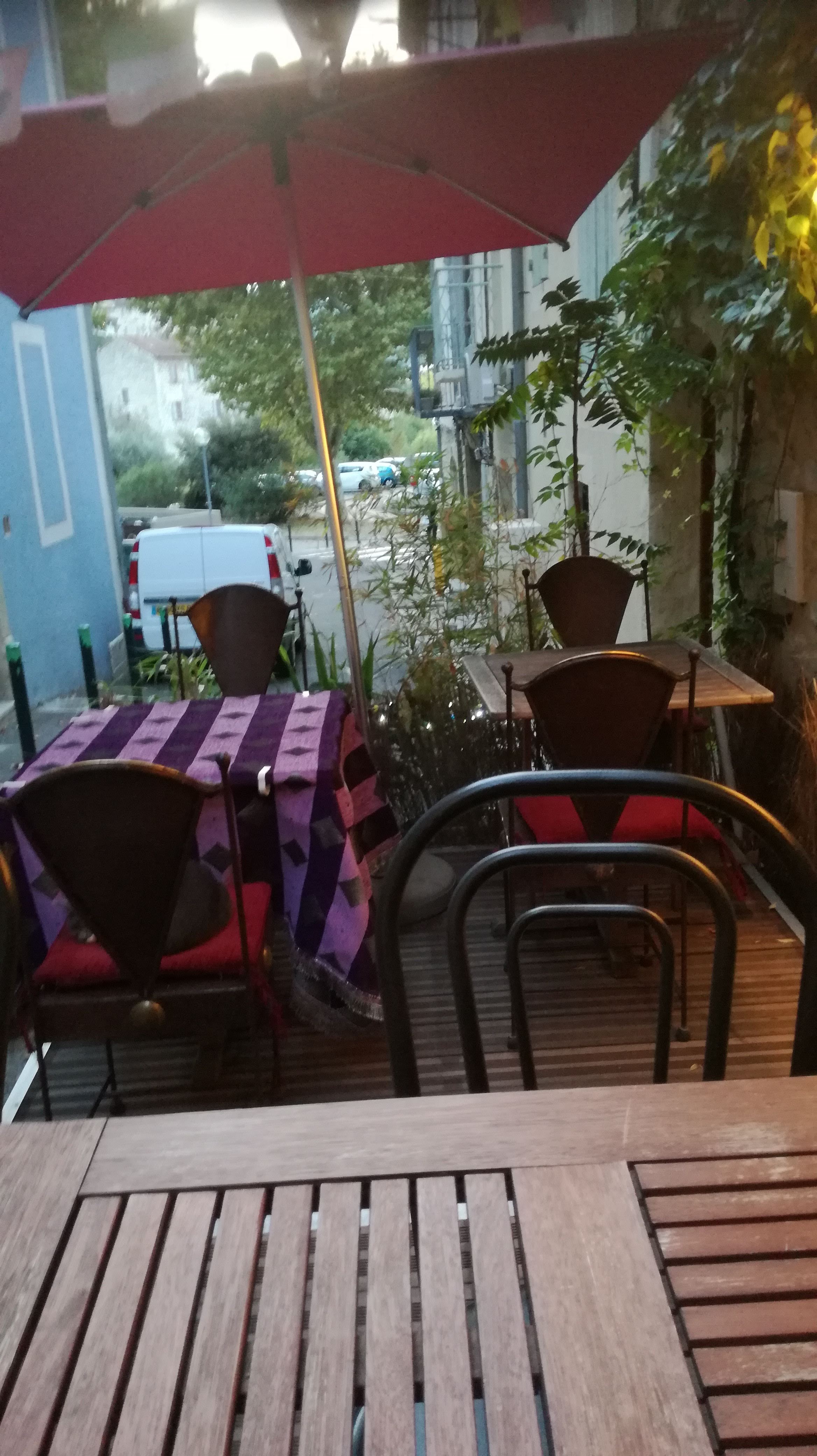 Bel accueil sous une terrasse ombragée... c'était très agréable malgré la chaleur. Un tajine excellent plein de saveurs. Des mises en bouche sont servis pour vous aider à patienter, une petite attention rare et appréciable. Je n'ai pas goûté les desserts mais le thé à la menthe était bon. A refaire lors d'un prochain séjour à Vaison.