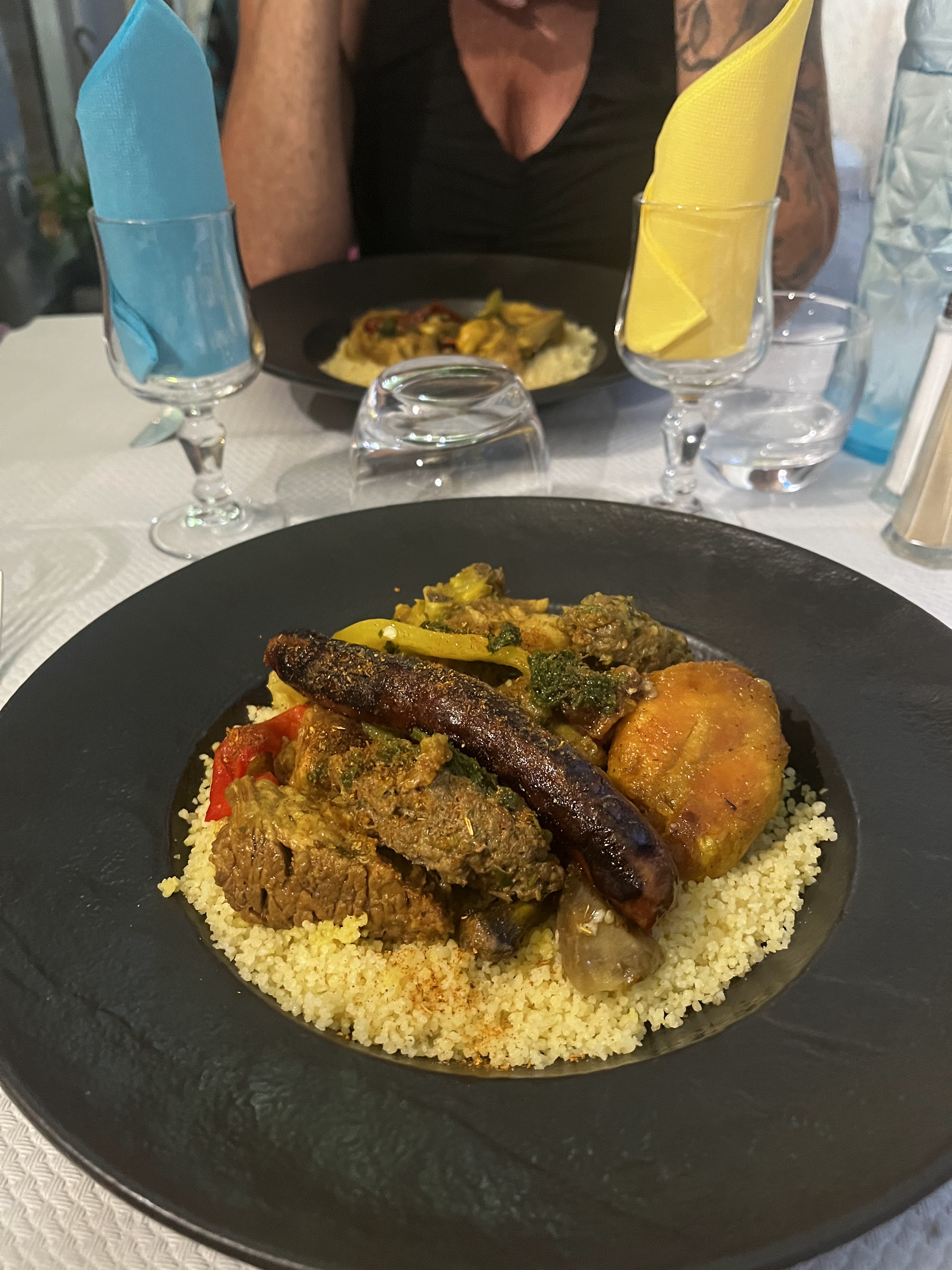 On a mangé le plat du jour à 16eur: Couscous et Tajine. C'était excellent 👌.