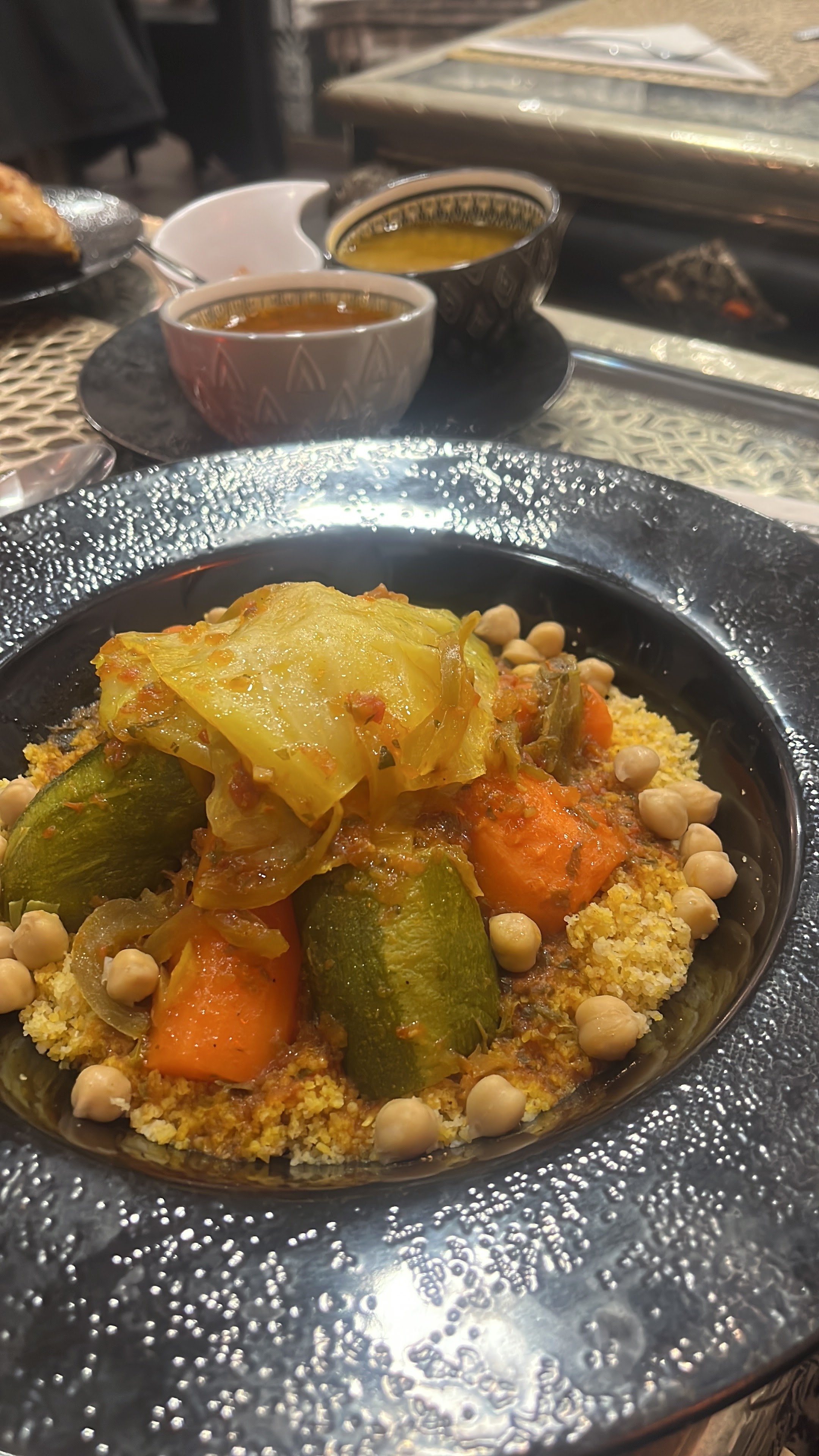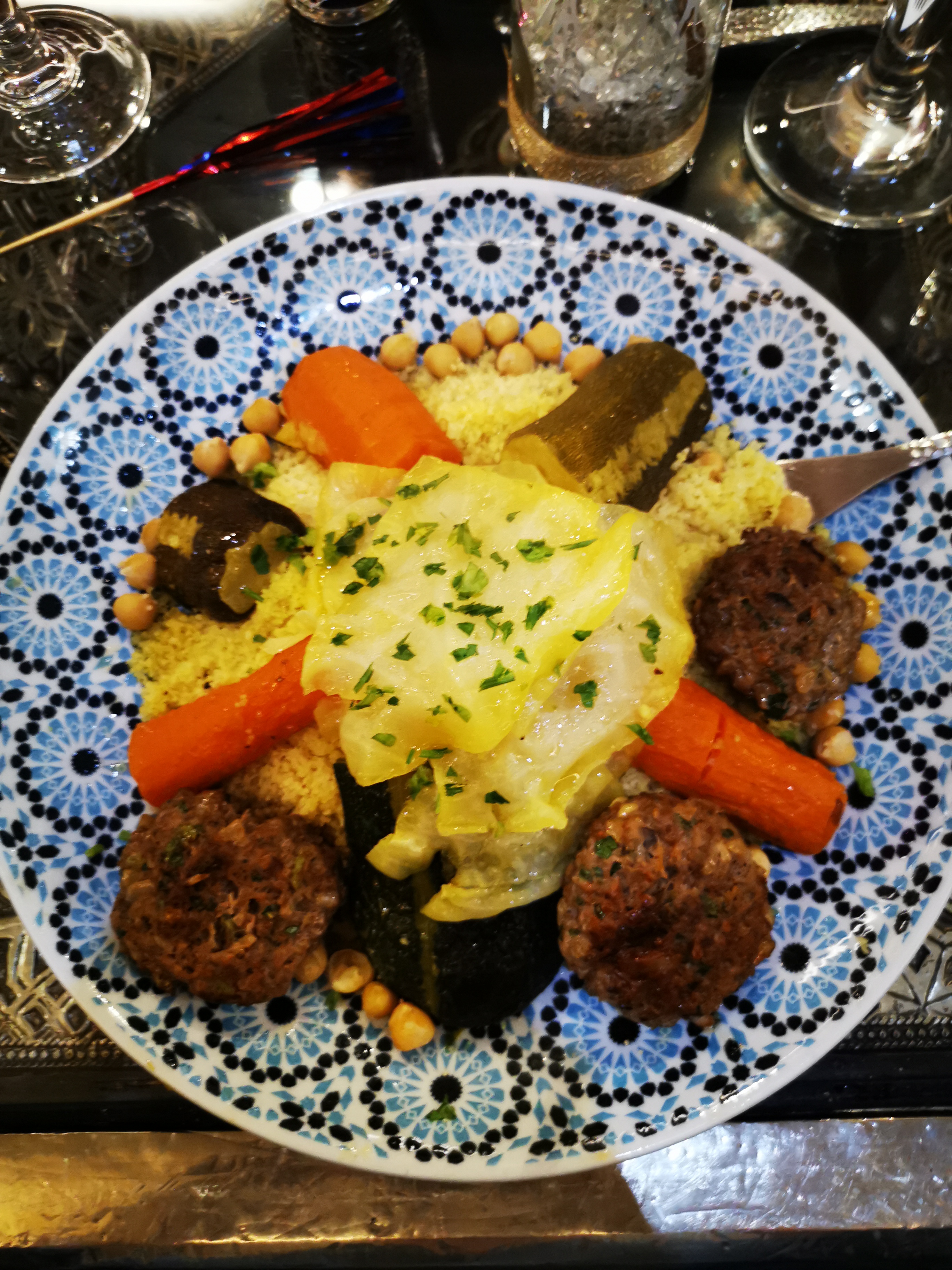 Excellents plats couscous boulettes maison.. miam miam et tajine vegane cœurs palmiers citron confit et délicieux thé menthe un peu cher.. sinon reste parfait