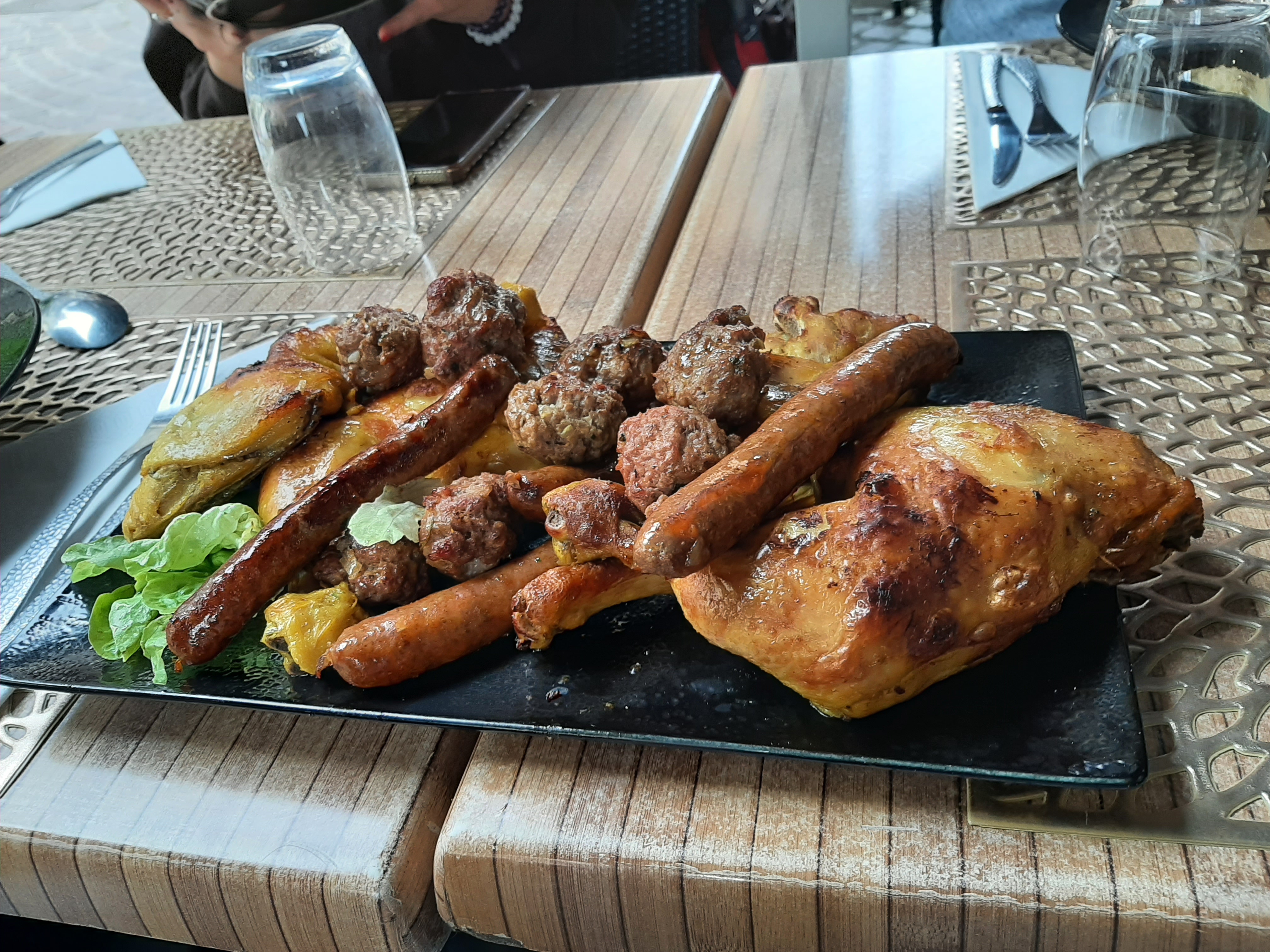 Degueulasse , c’était pas bon mon père est malade , les prix son excessif , il n’y a même pas de légume , rien ! 4 petits pois chiche et de la semoul on dirait des cailloux bref ce truc pour 55 euro ( pour 2 personne ) je ne recommande pas