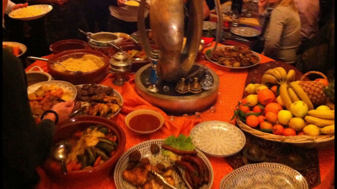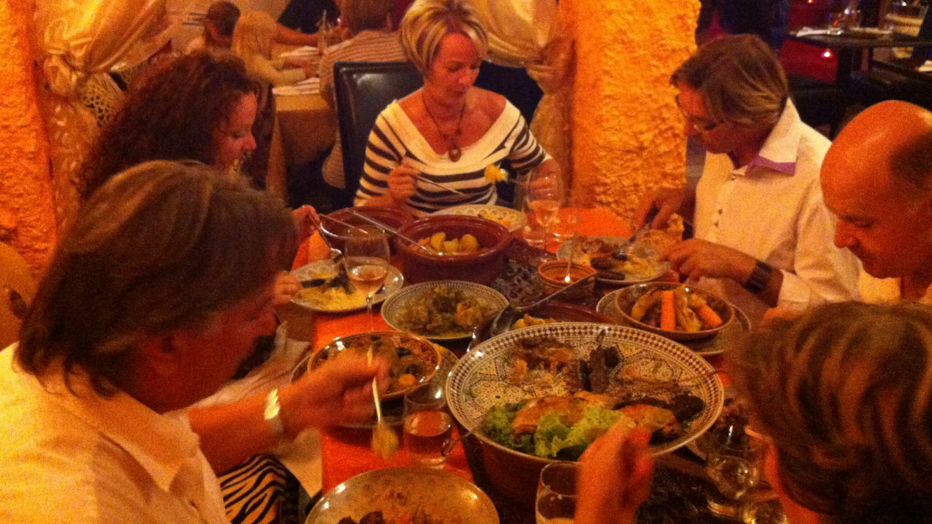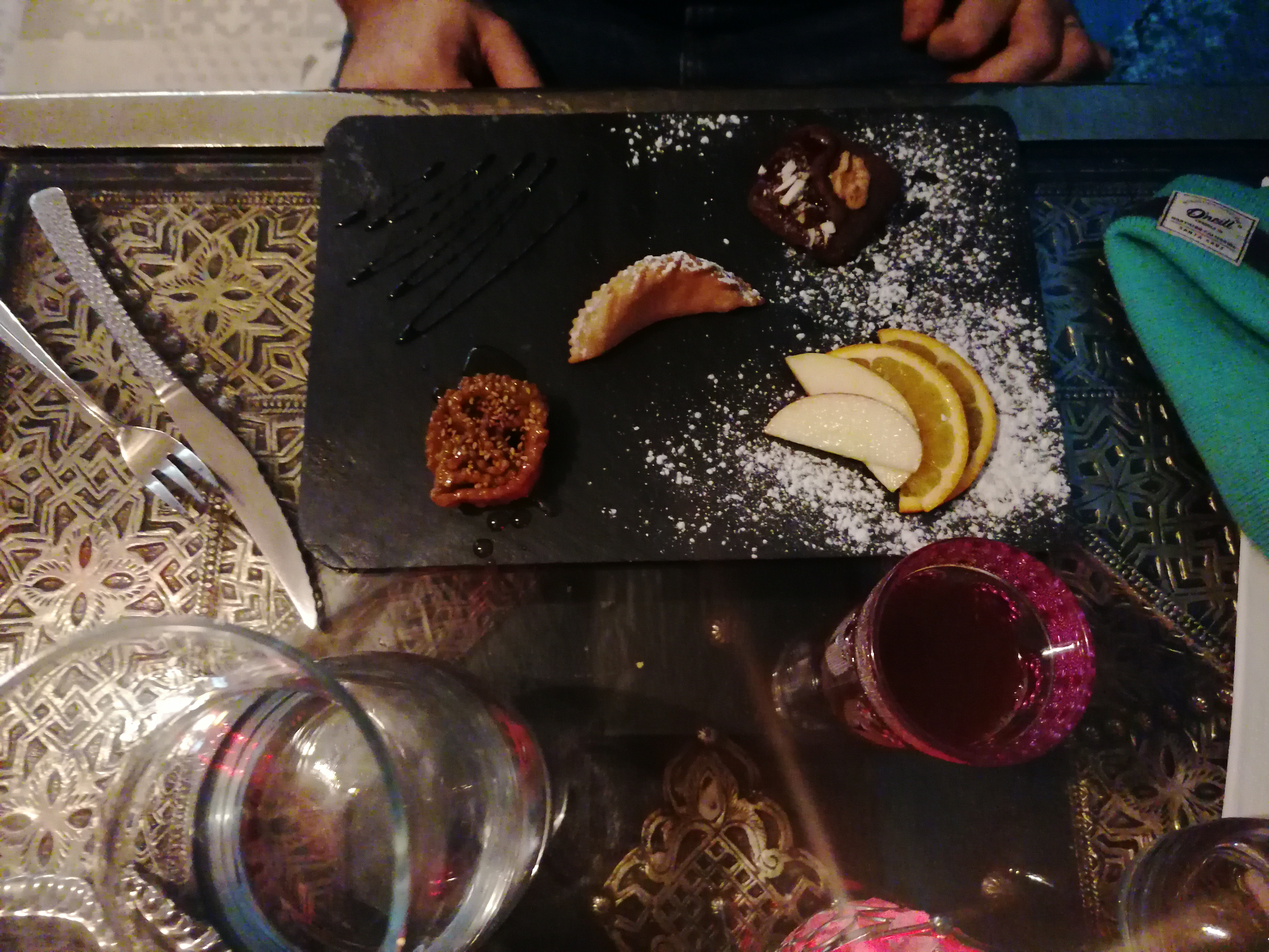 De très bonnes tajines, personnel sympathique mais service à améliorer. Thé vert à la menthe très cher, assiette dessert de gâteaux marocains qui se résume à 3 minuscules gâteaux dont le vide de l'assiette et comblé par 2 tranche d'orange, 1/4 de pomme en tranches fines et de la chantilly ??? Donc quasiment rien de marocain dans l'assiette et en plus très cher. Se limiter aux vrais plats marocains. Vin rouge pour le prix, très ordinaire.