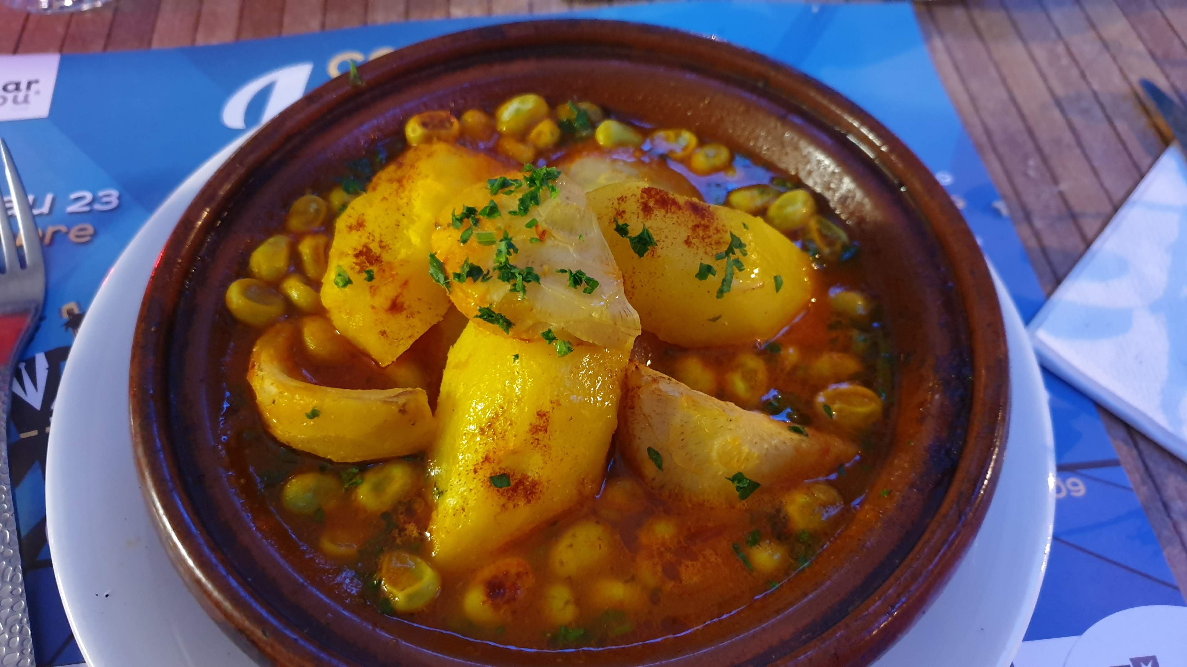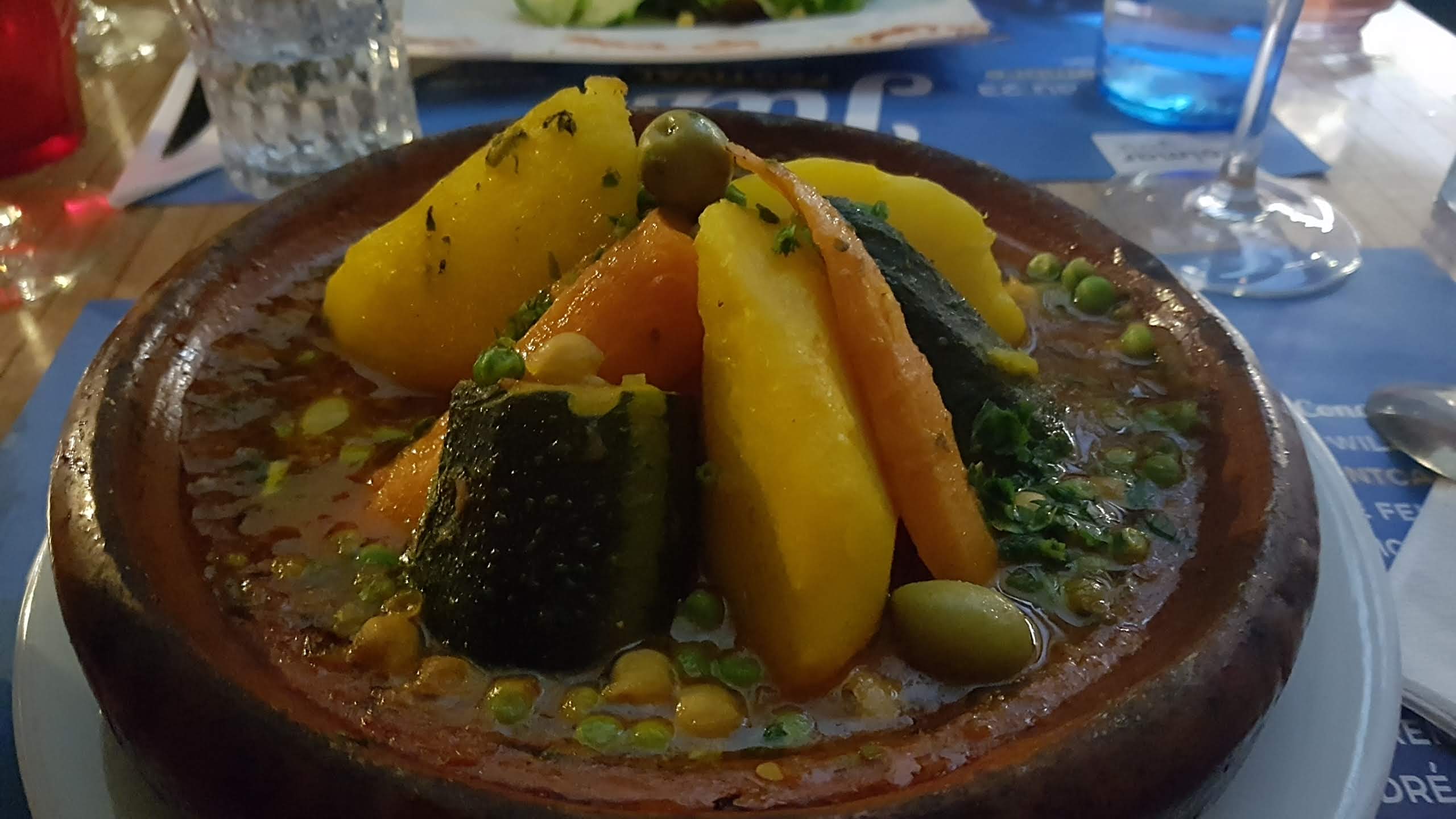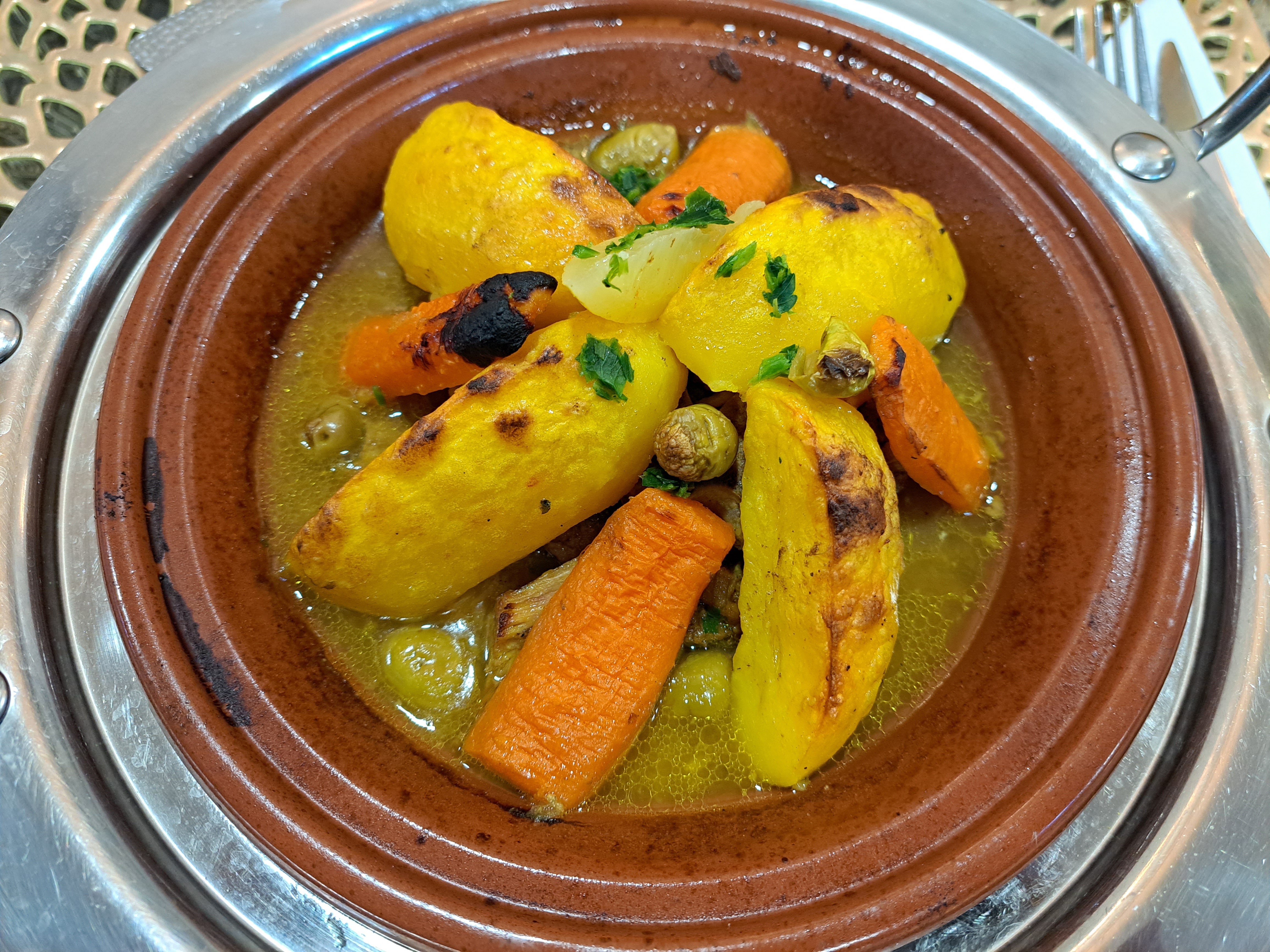 Très beau cadre! Si j’avais à donner une critique qui peut être constructive c’est sur le tajine, les légumes y sont déposés grossièrement dans le plat sans trop de finesse. Ps : On mange d’abord avec les yeux 🤩