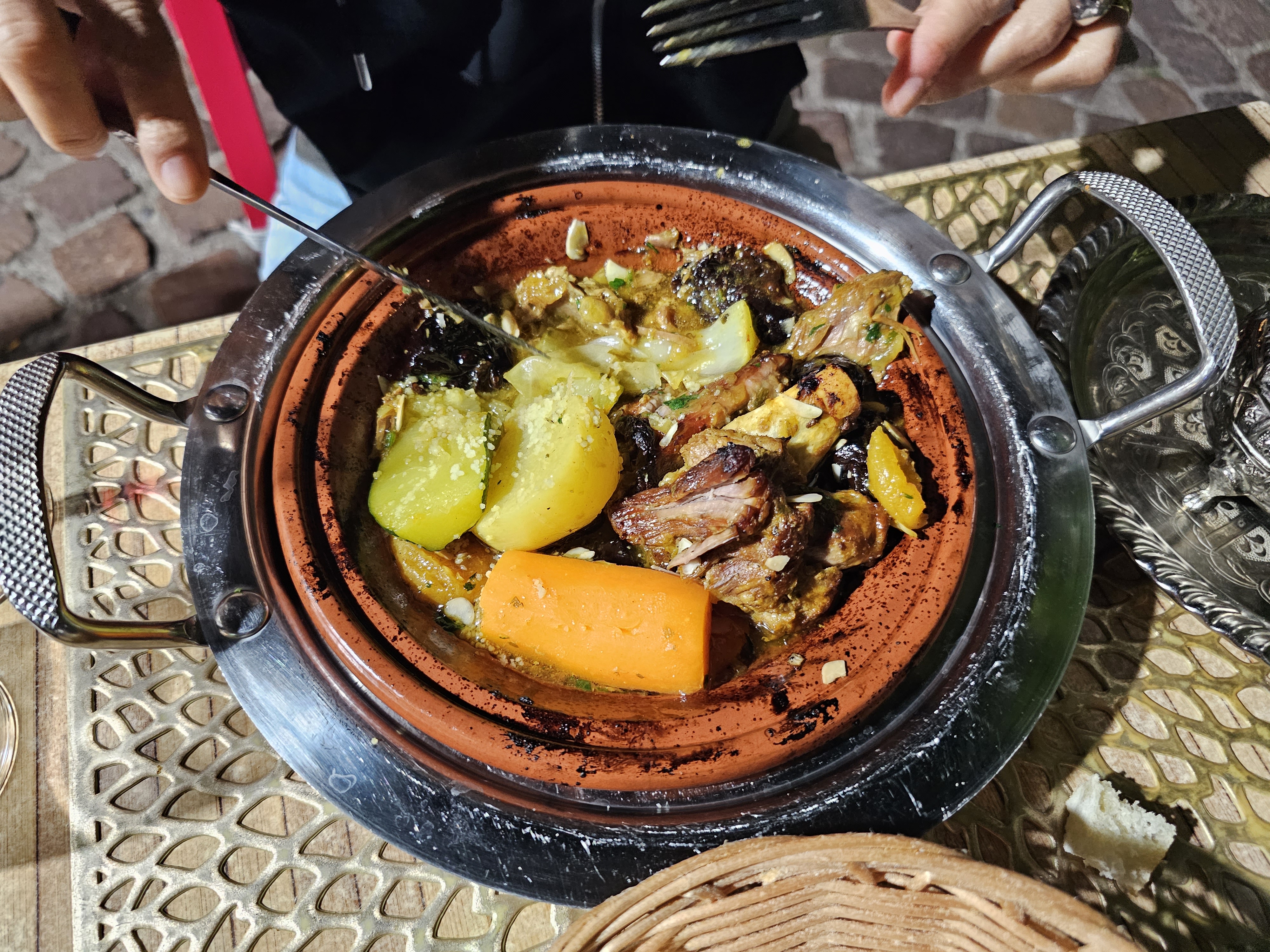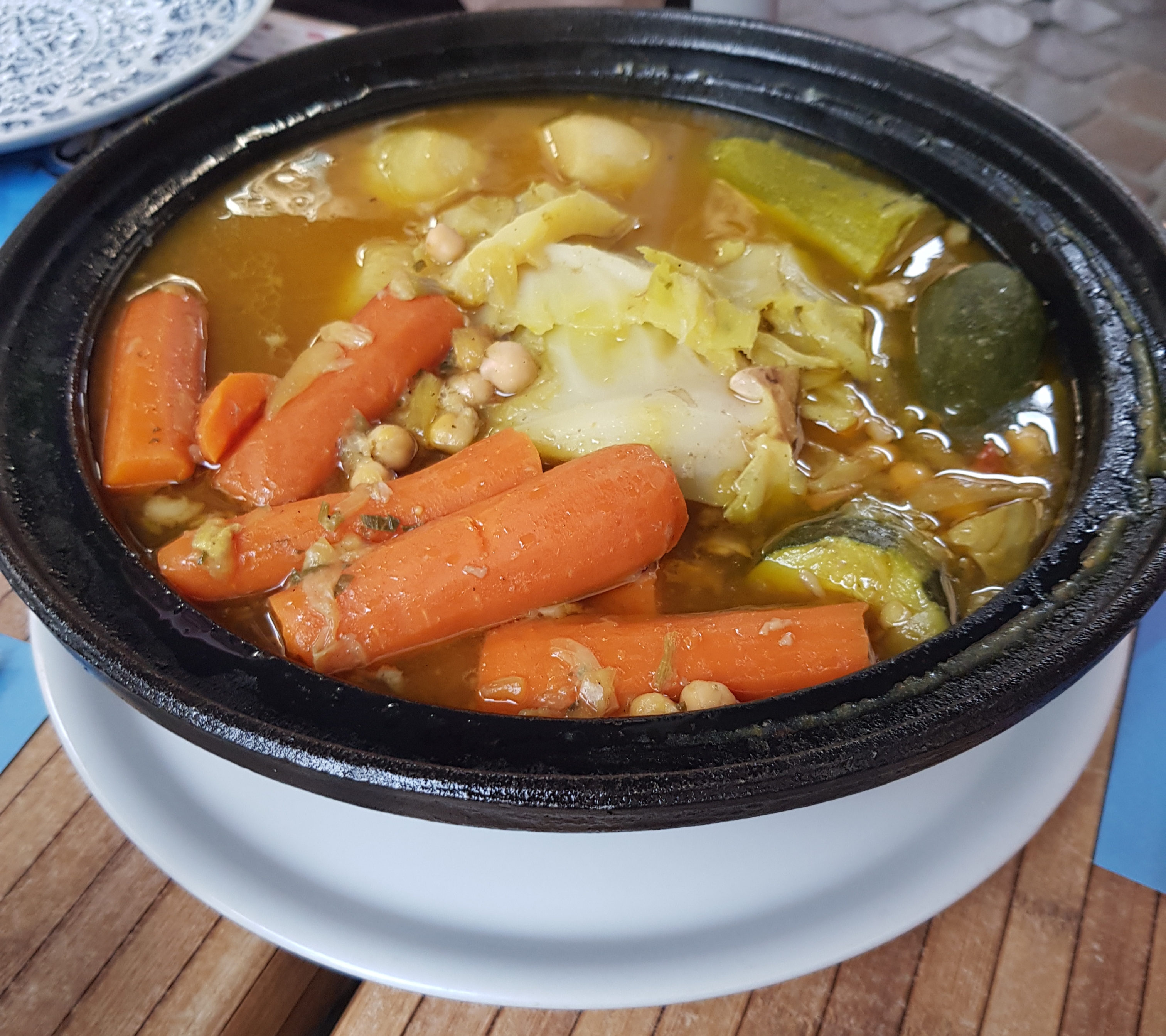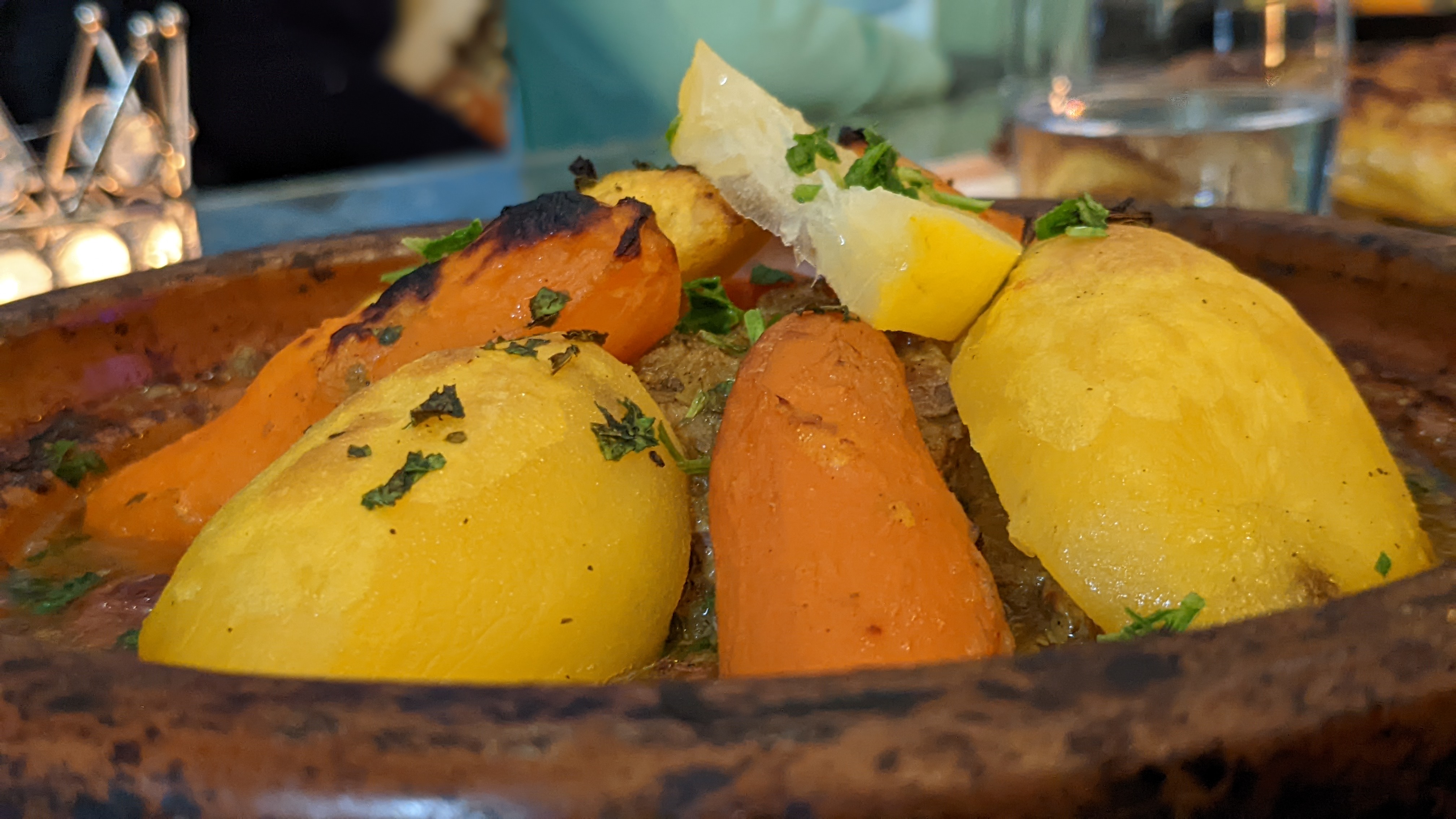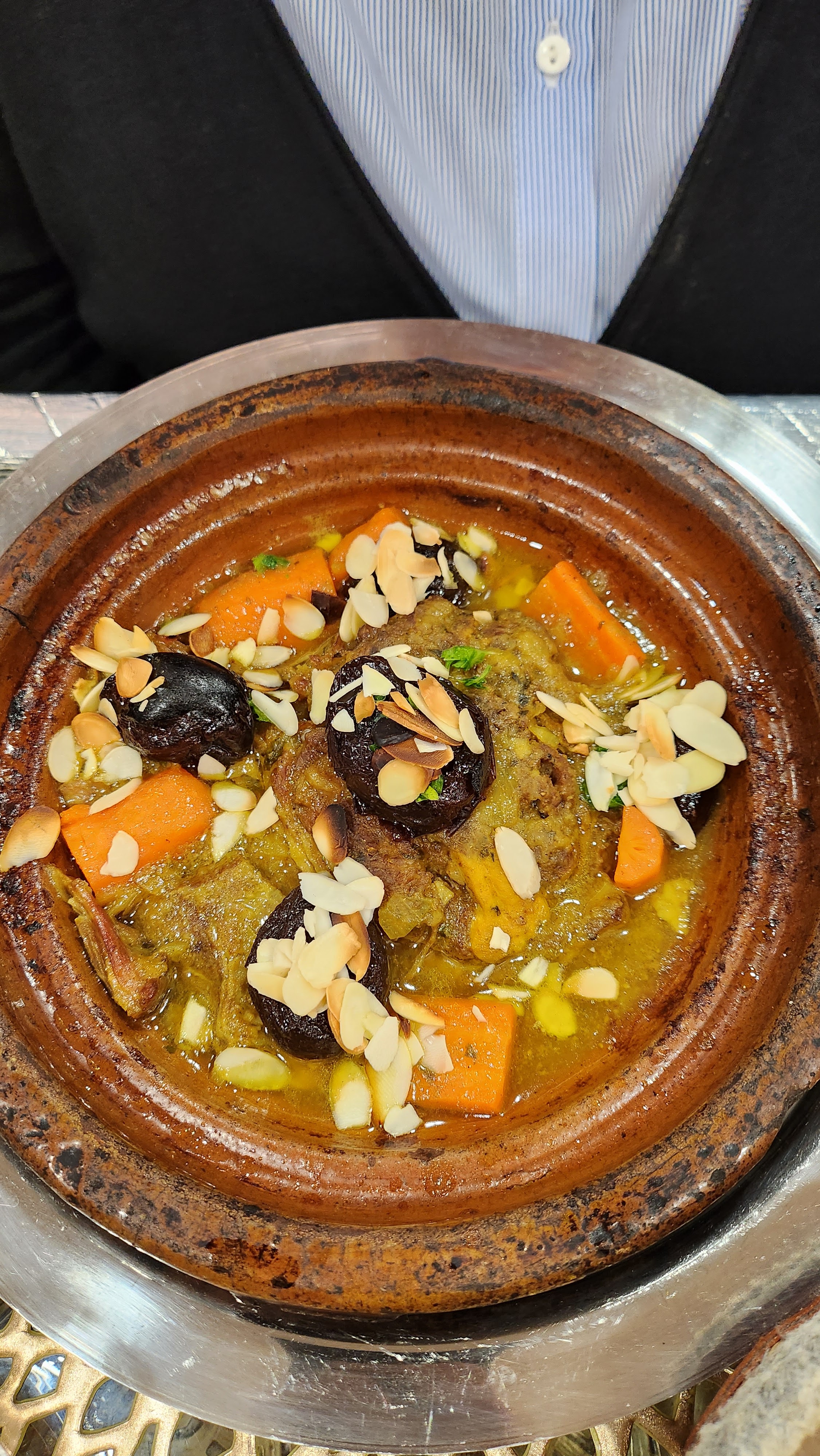 Très beau cadre! Si j’avais à donner une critique qui peut être constructive c’est sur le tajine, les légumes y sont déposés grossièrement dans le plat sans trop de finesse. Ps : On mange d’abord avec les yeux 🤩
