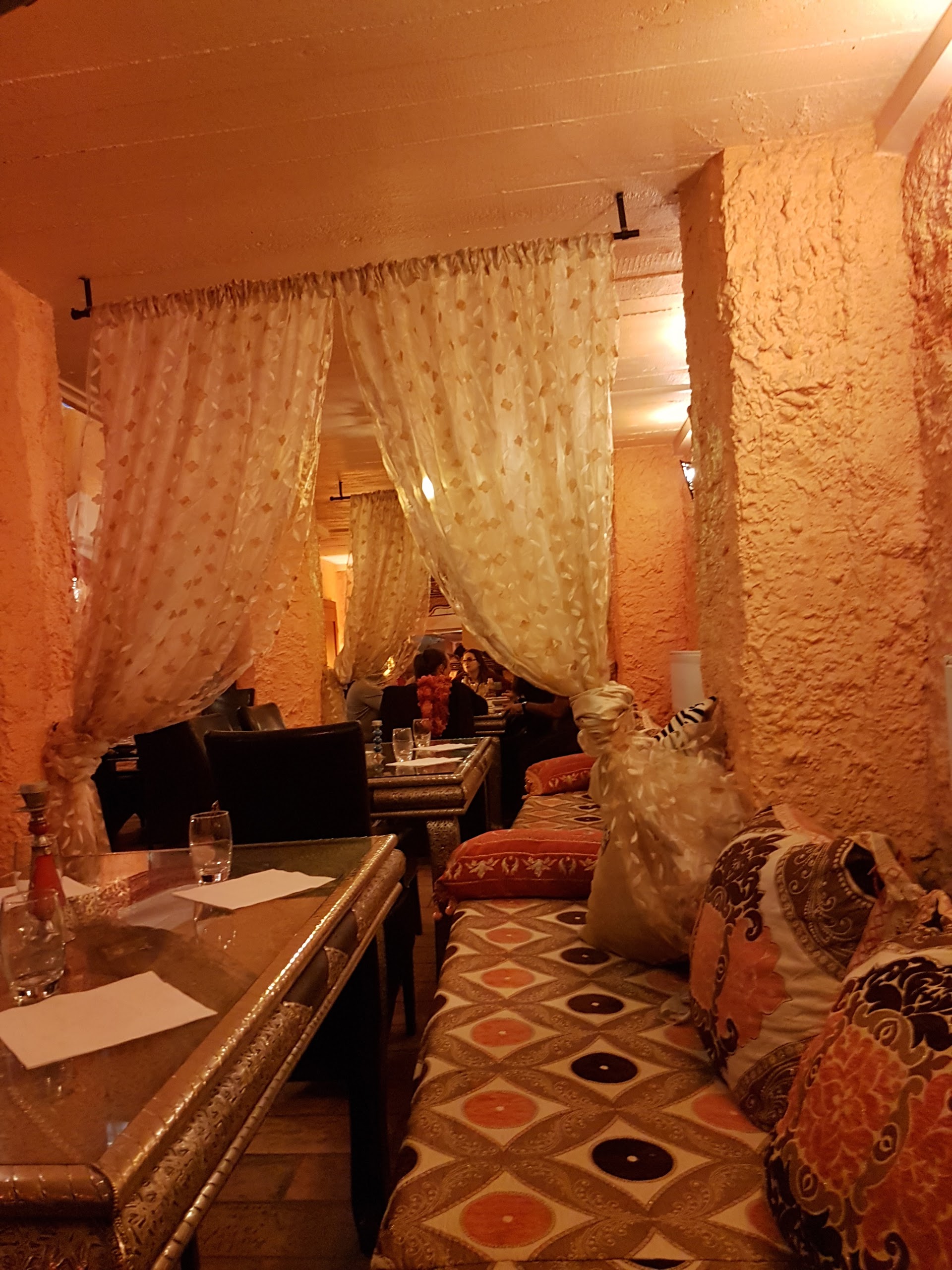 Entreprise familliale agreable et sympathique. Le service est dans le registre familiale. Nous sommes ici chez les hôtes d'un beau reastaurant dans une vielle batisse possedant un sous sol et un rez de chaussé decorés à la facon marocaine. Parking proche. Les plats sont bien élaborés et les saveurs nous transportent au maroc