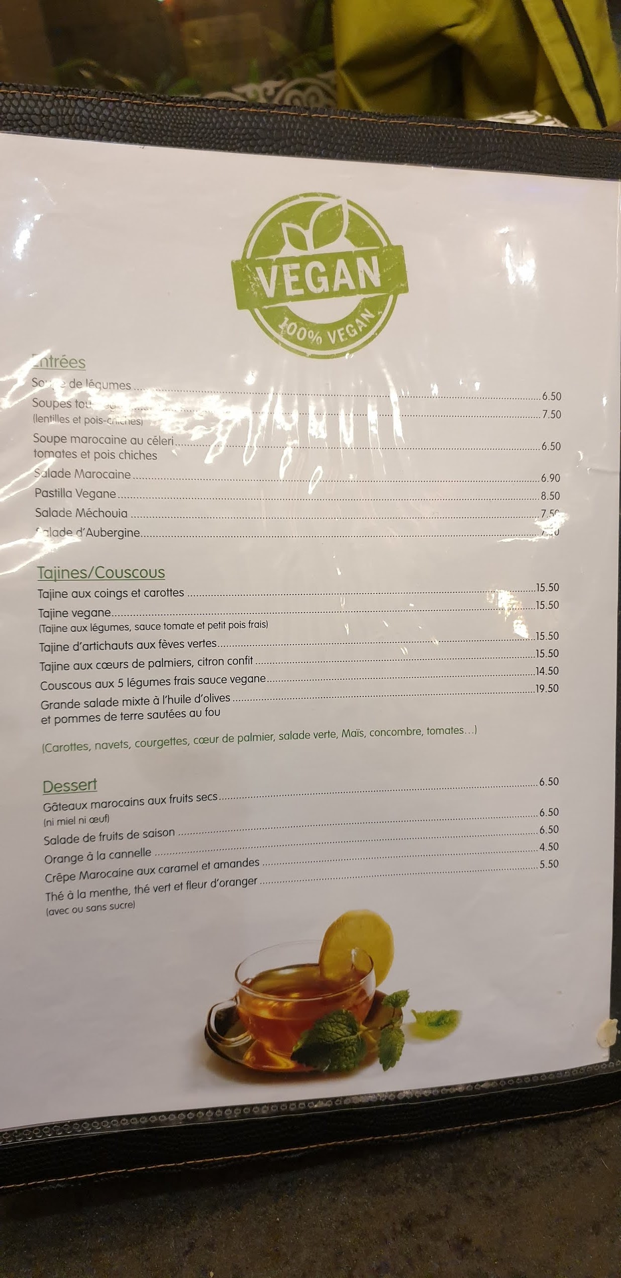 Super service. Plats délicieux. Goûtez la pastilla vegan, elle est top 👌 très bon thé aussi !