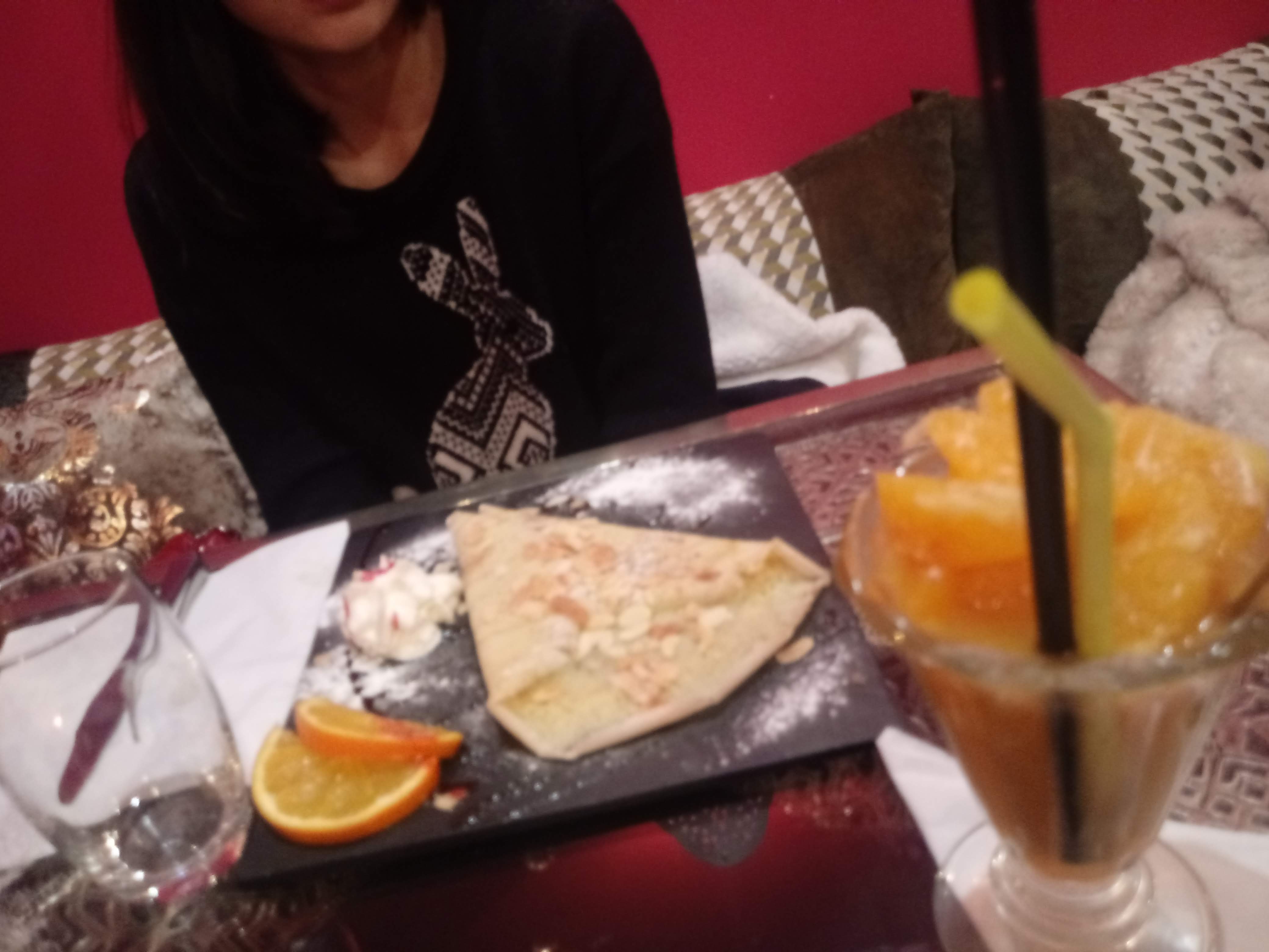 Le tajine poulet carotte coing amande est à tomber. Une farandole de saveurs. Pour le prix cela devrait être un peu plus copieux par contre. Un service de qualité, personnel très agréable. Le thé est très bon mais 11 euros pour une théière C'est un peu cher. Assez déçue de la crêpe marocaine qui ne reste pas moins qu' une crêpe froide normale.