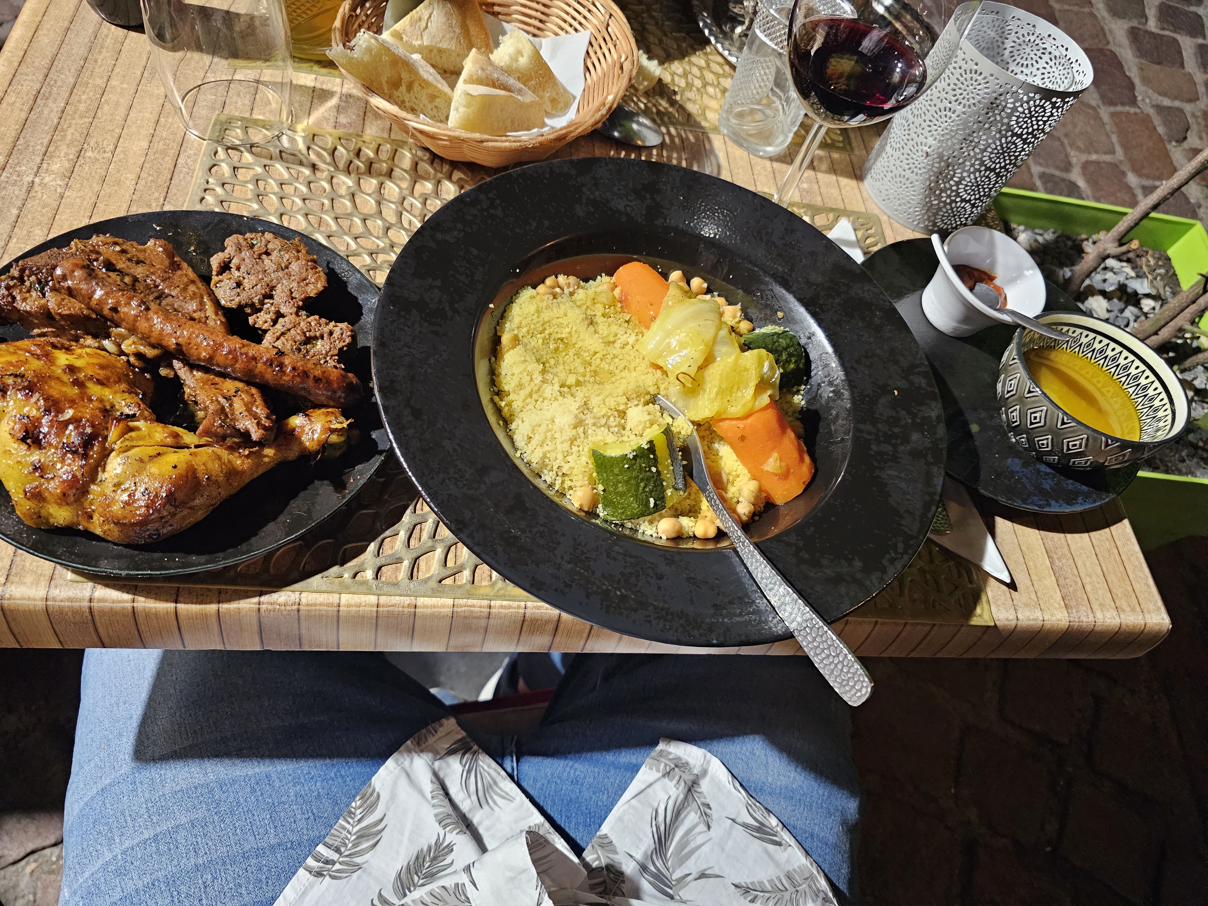 Nous avons pris un tajine agneau et un couscous touareg , c'était bien servi et c'était bon. On y retournera sûrement