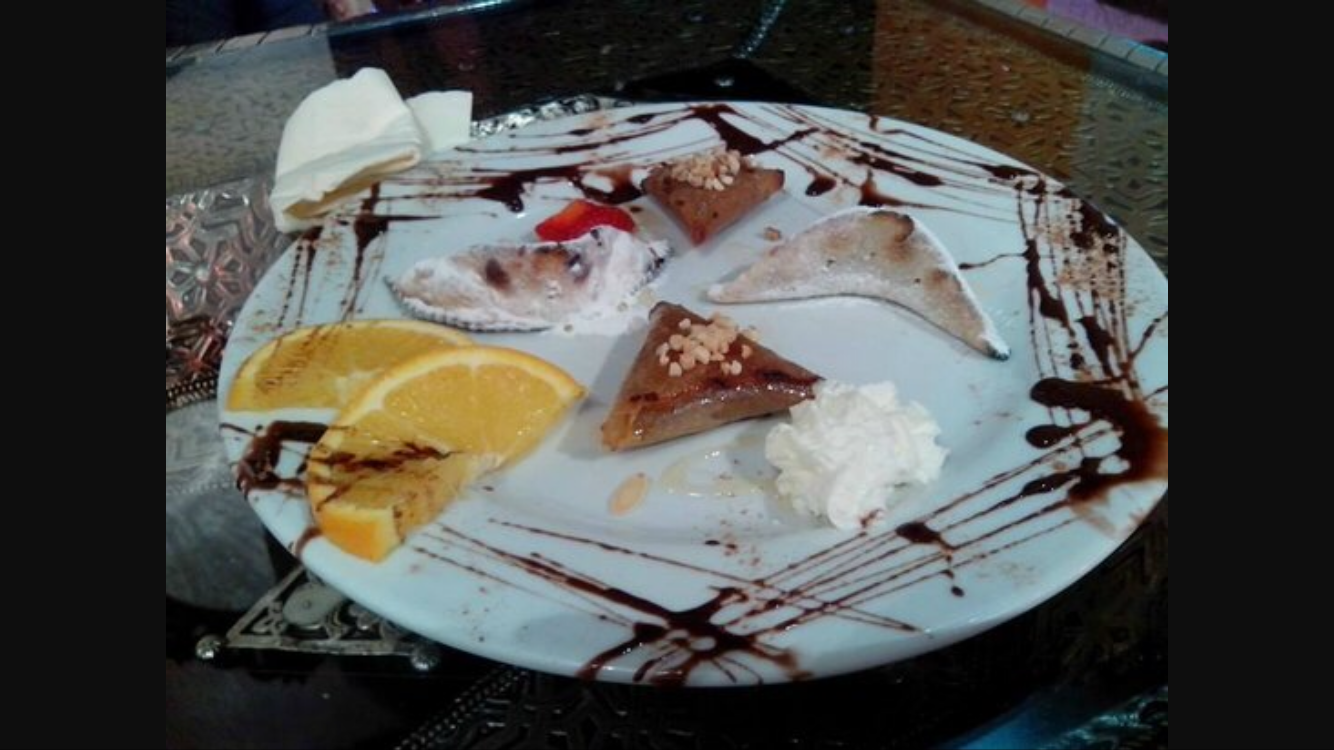 Une très bonne adresse dans un beau décors le charme du Maroc et tout ce qui va avec le repas était copieux ( couscous royal et le touareg )la viande très bonne le poulet très bien cuit boulette cote d'agneau impeccable. Le dessert petite assiette de mignardises marocaine avec son thé à la menthe délicieux. La serveuse très avenante et sympathique . Avons passé un agréable moment je recommande cette adresse les yeux fermés.